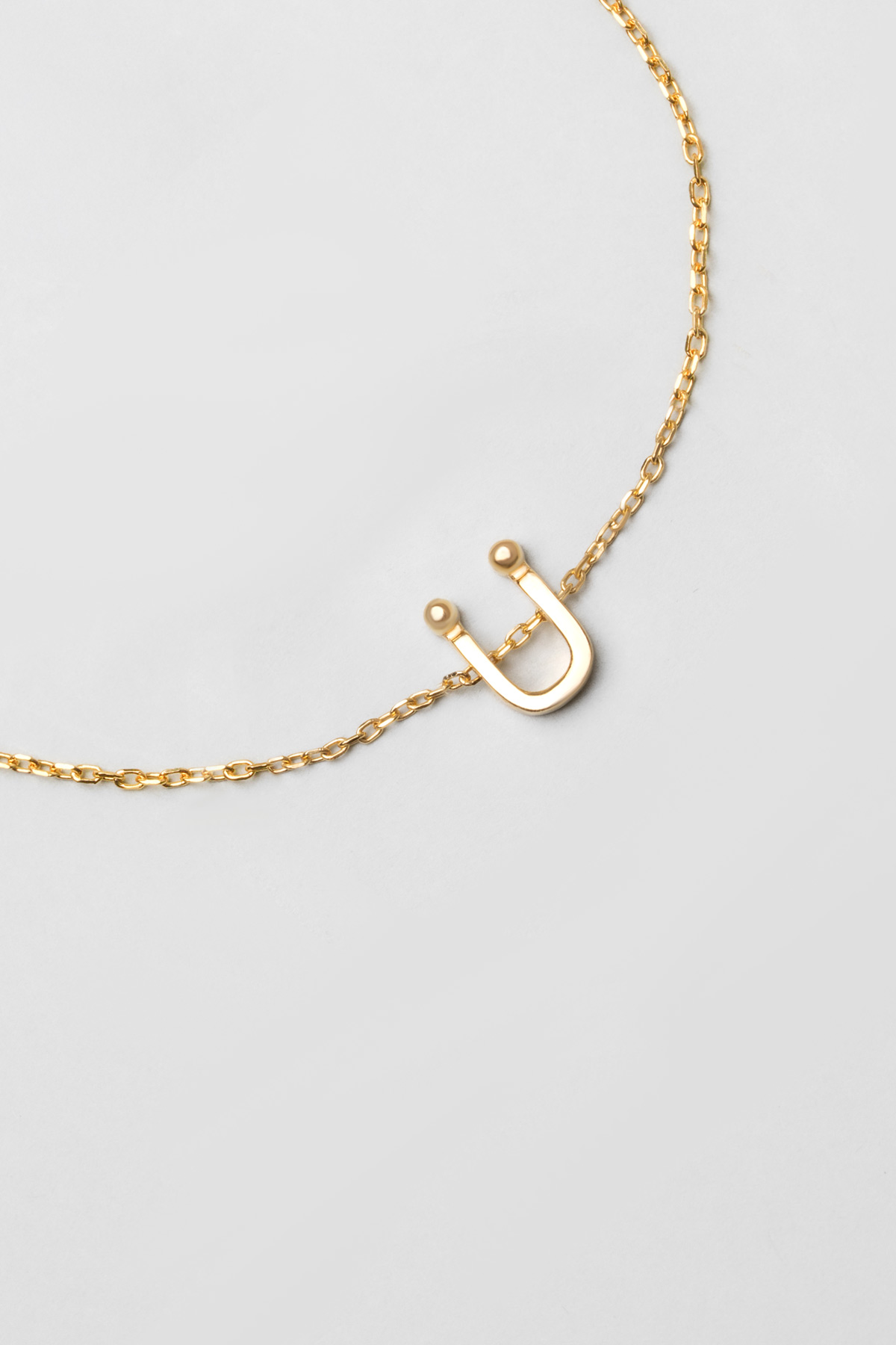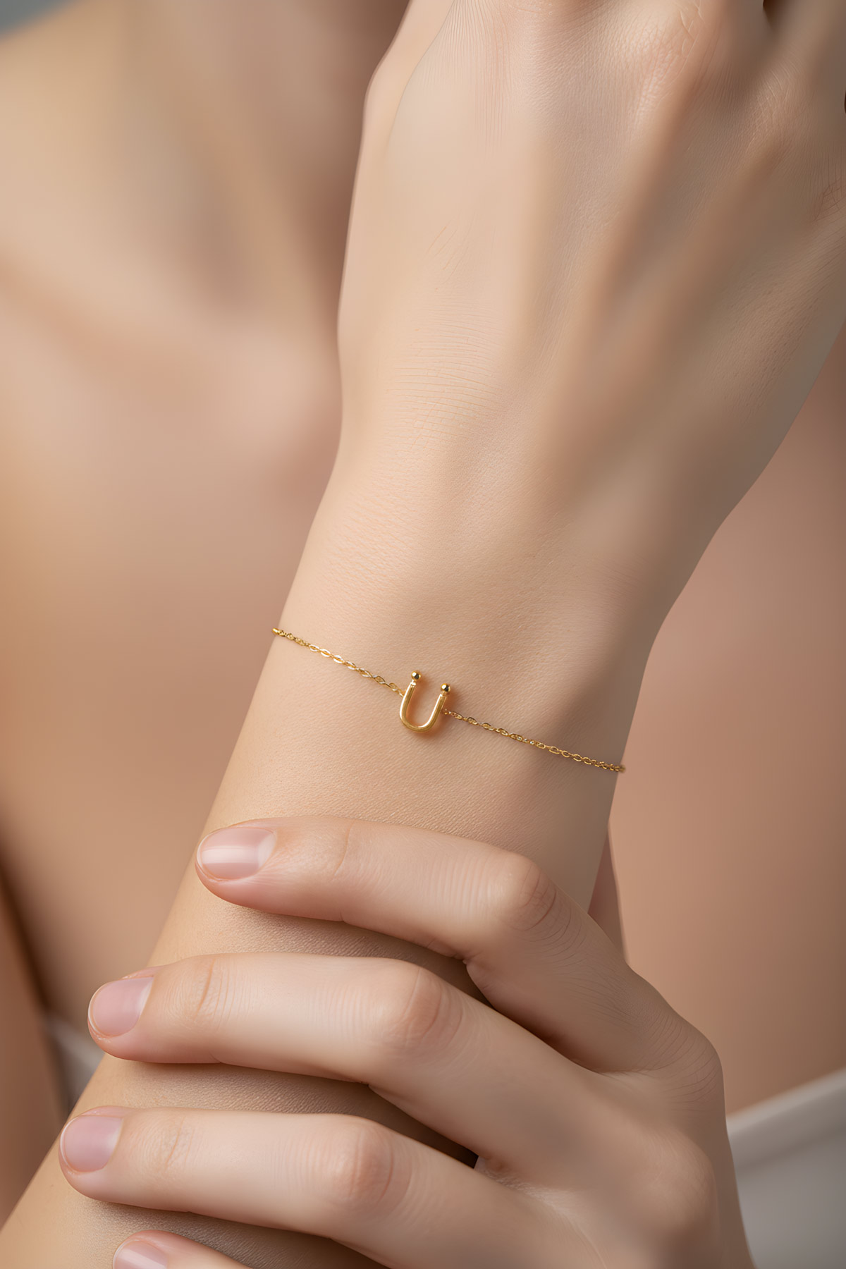 My Story Ü Harfi 18 Ayar Sarı Altın Kaplama 18 Cm Gümüş Bileklik
