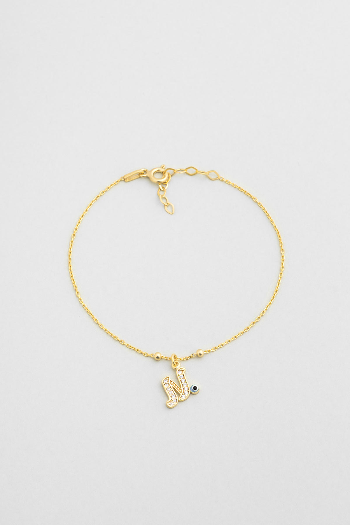 N Harfi 18 Ayar Sarı Altın Kaplama 19 Cm Gümüş Nazar Bileklik