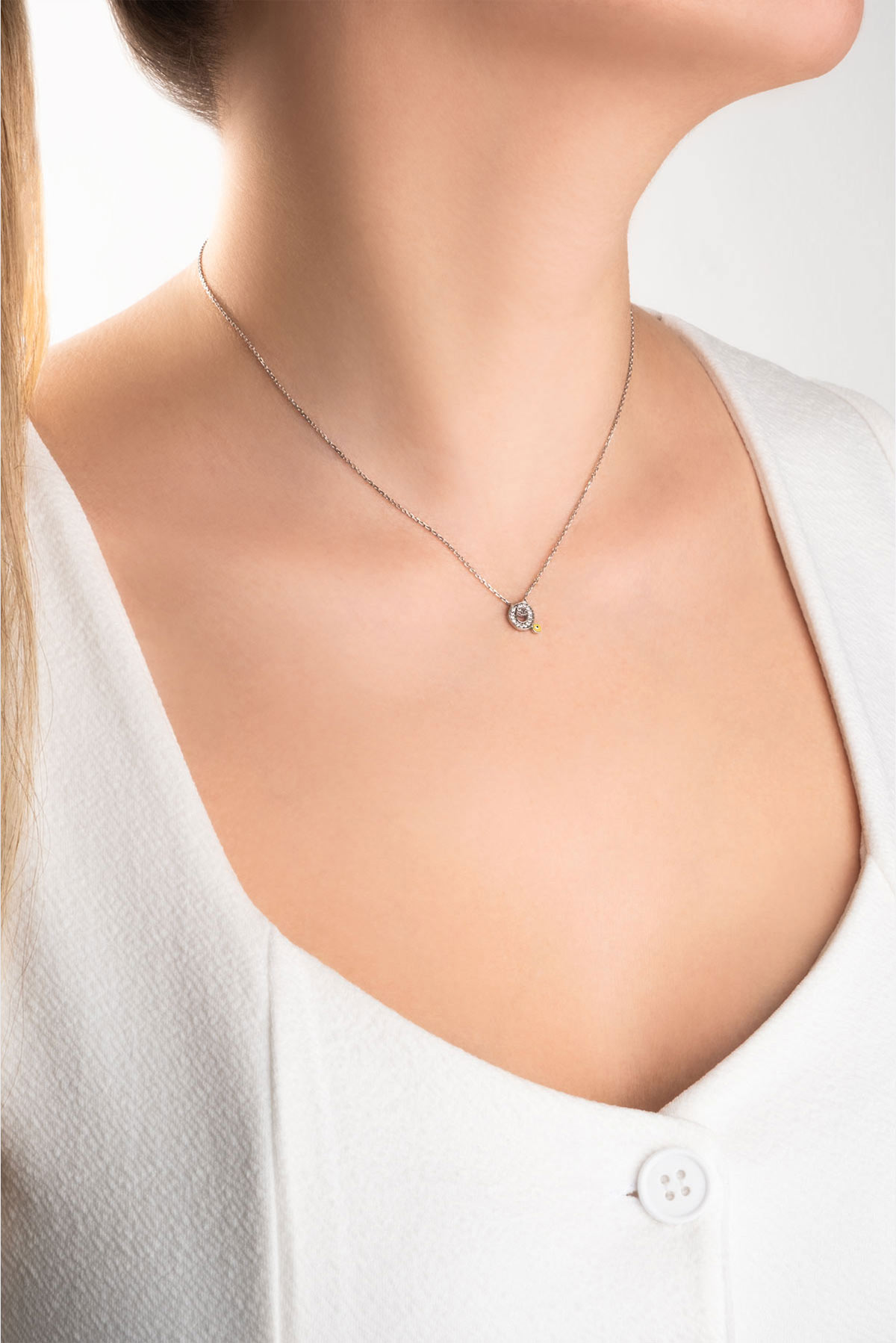 Sarı Mineli Beyaz Altın Kaplama