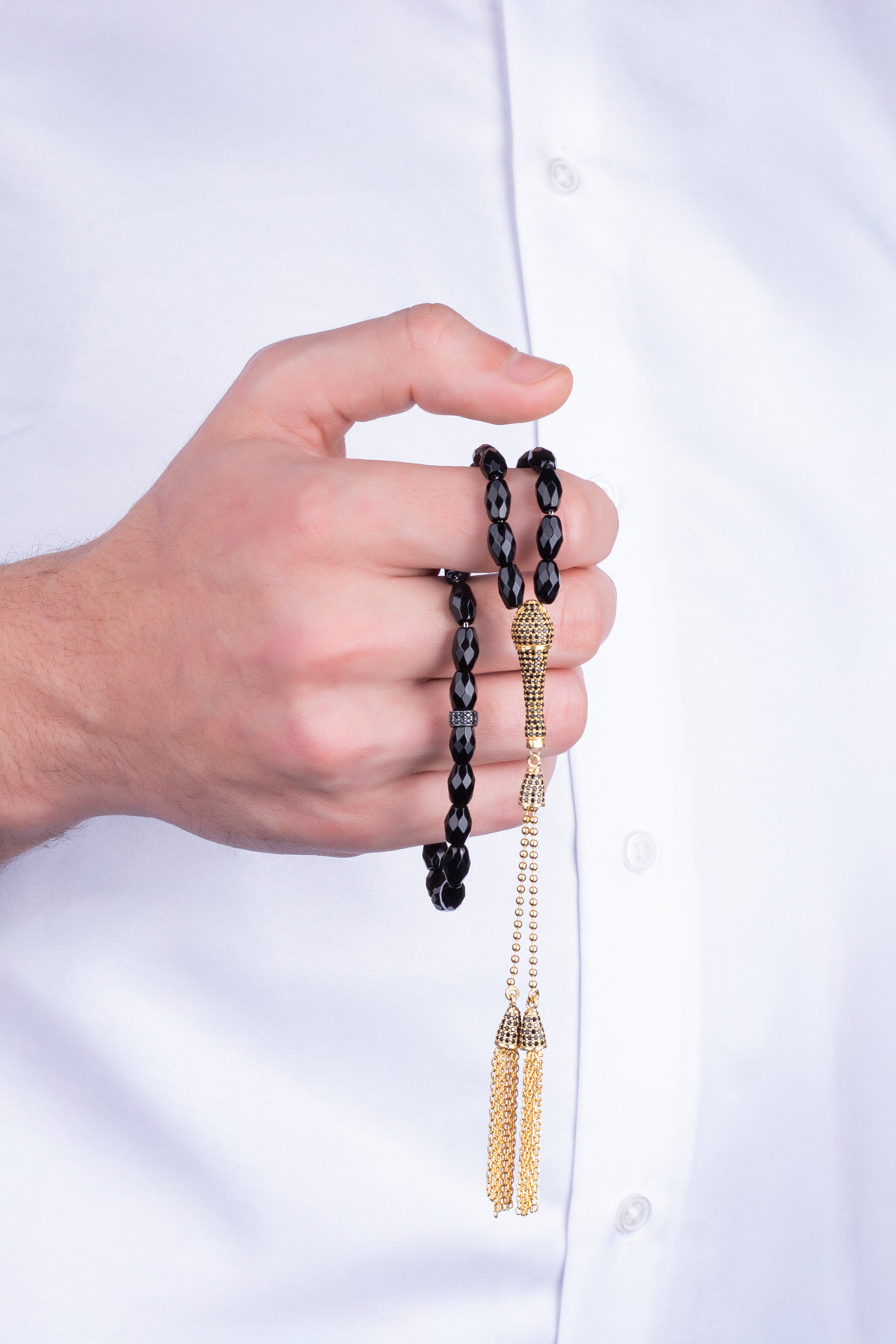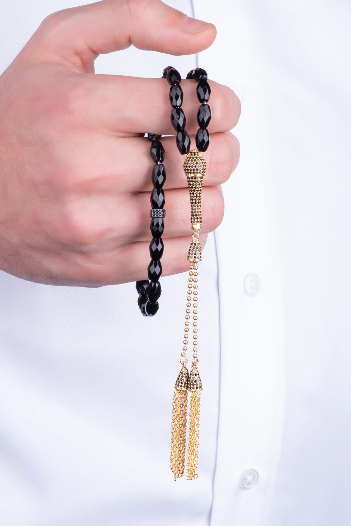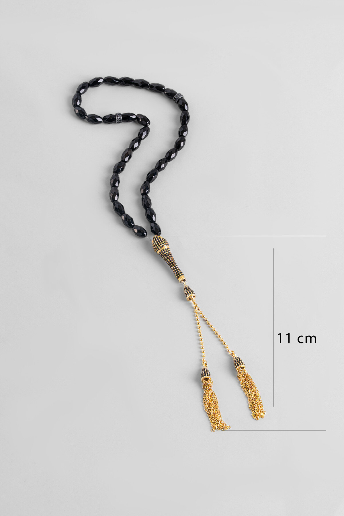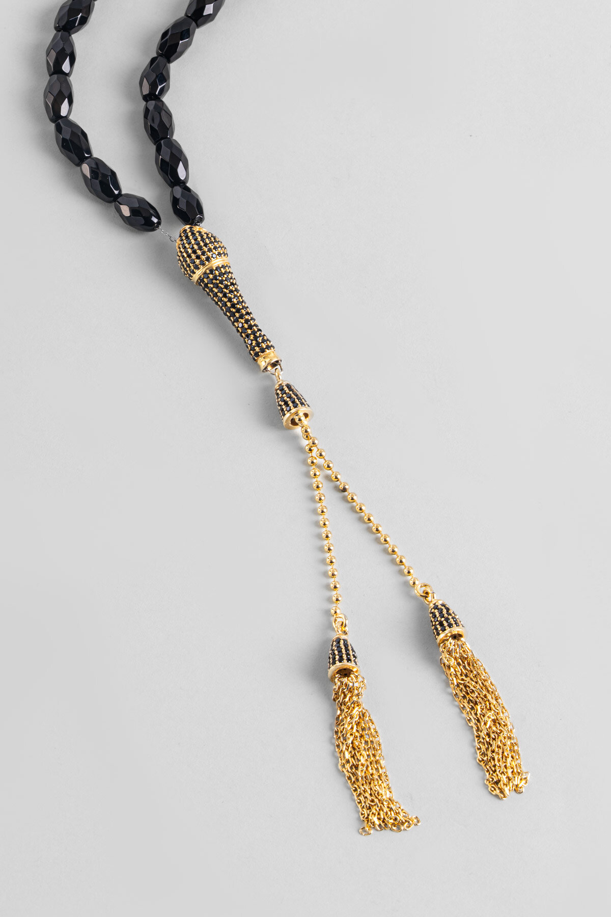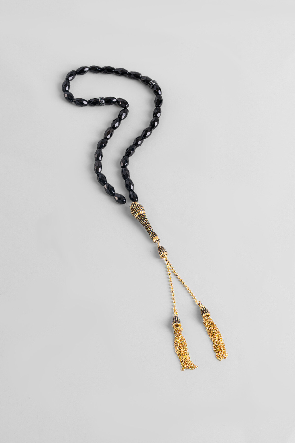 Oniks Taşlı 18 Ayar Sarı Altın Kaplama Gümüş Tesbih
