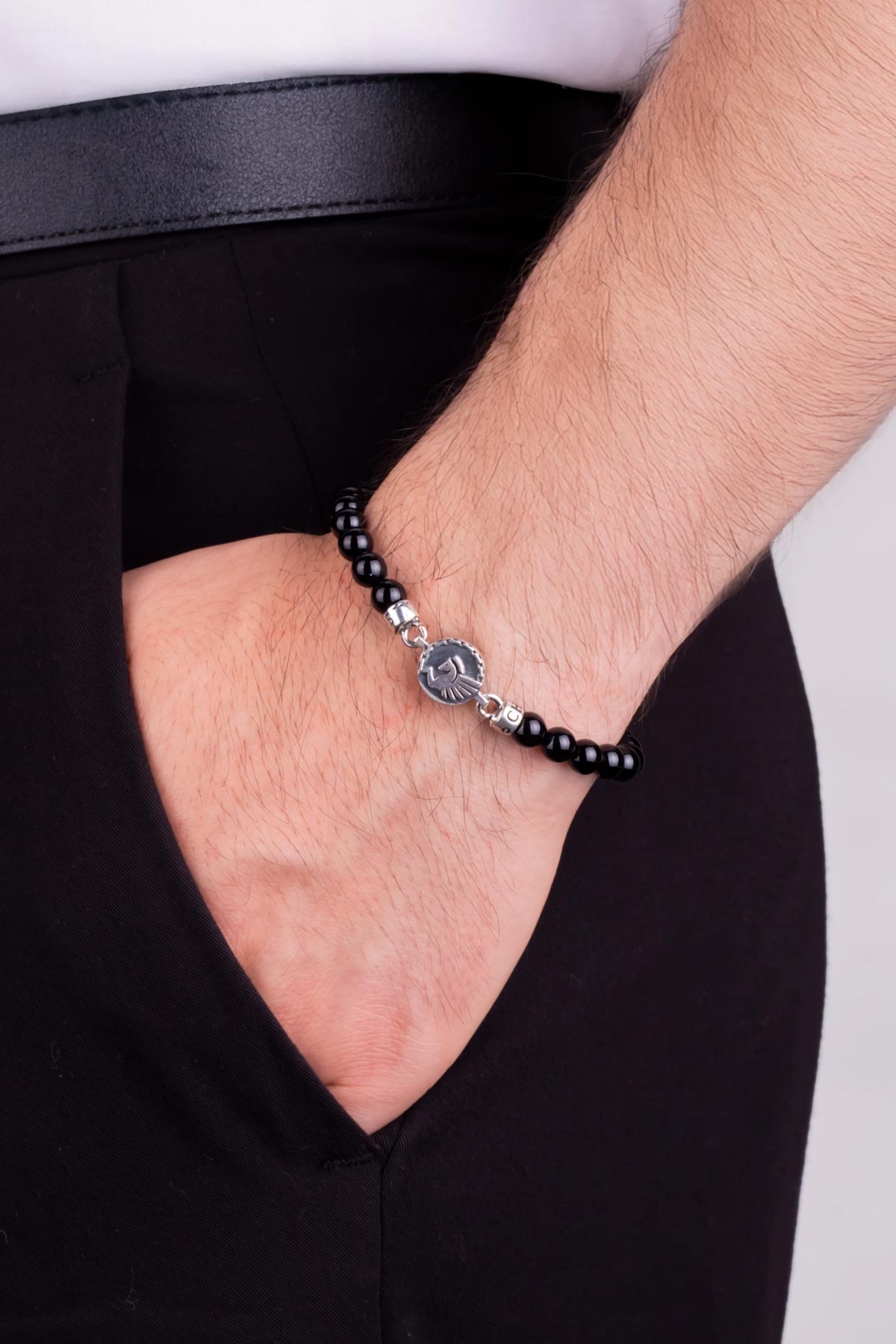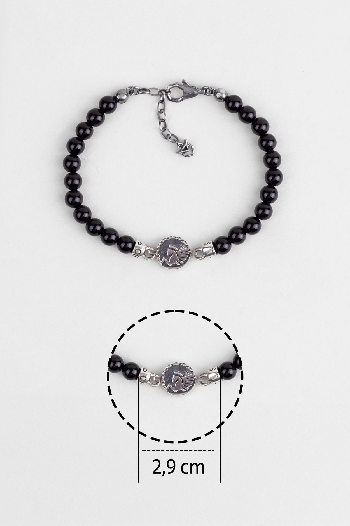 Pegasus Figürlü Oniks Taşlı 22 Cm Gümüş Erkek Bileklik