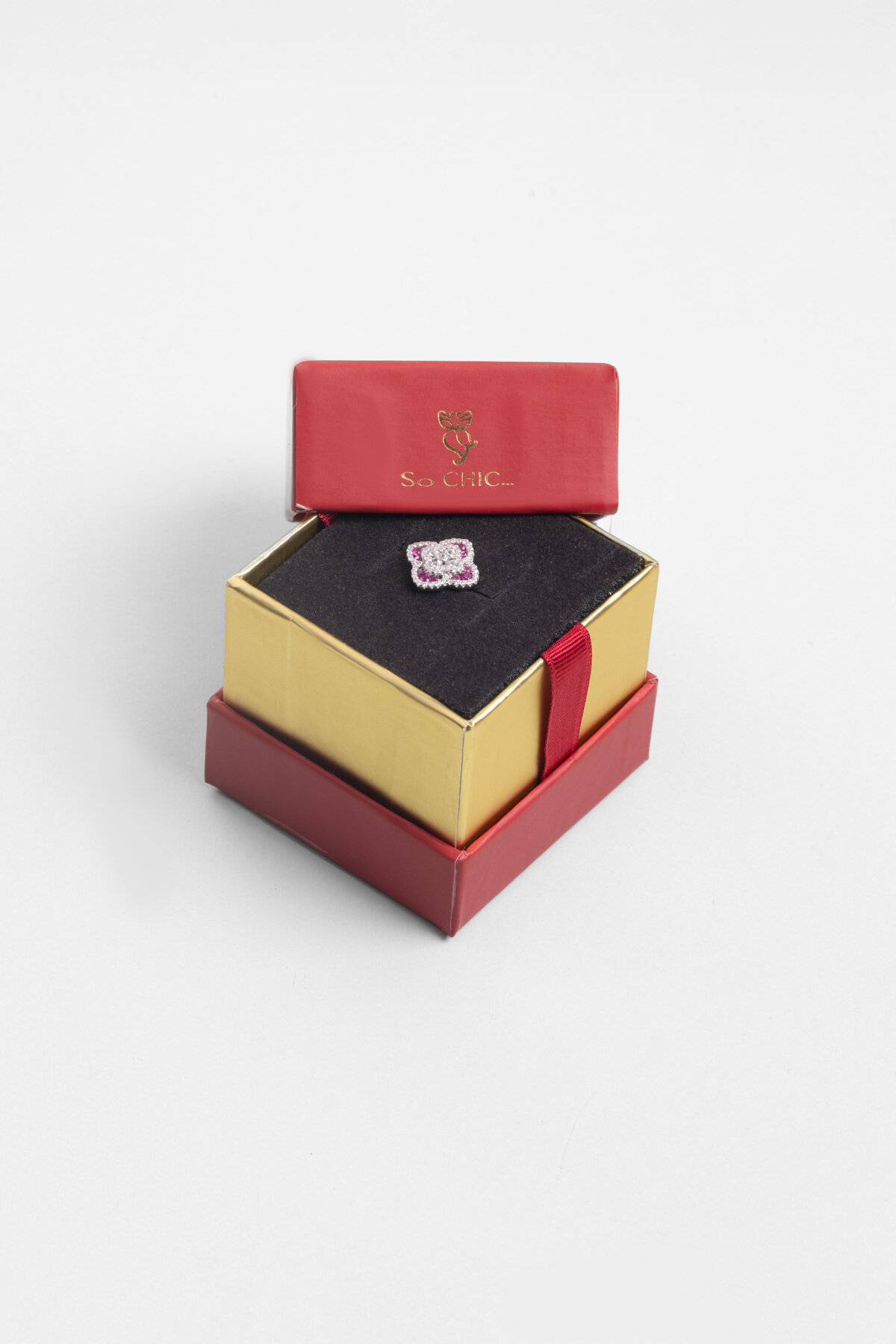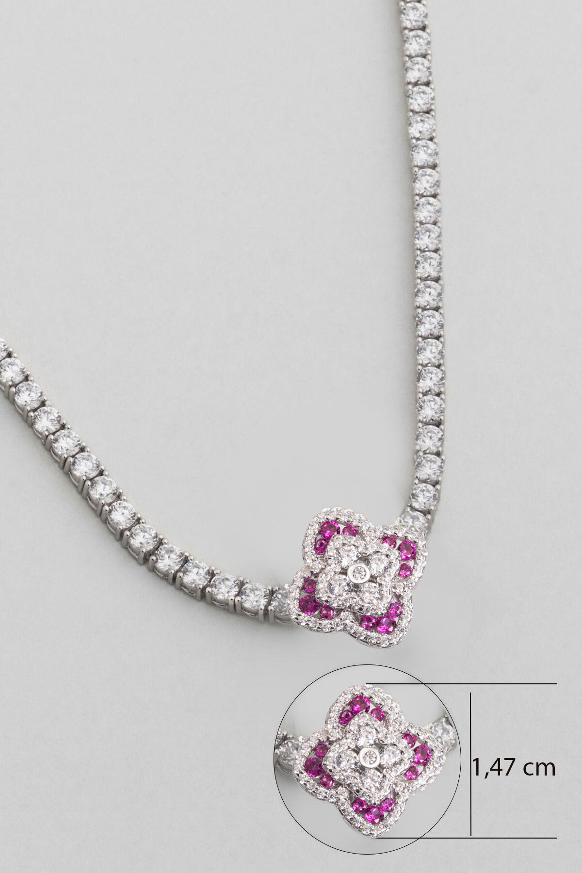 Fuşya Taşlı Beyaz Altın Kaplama
