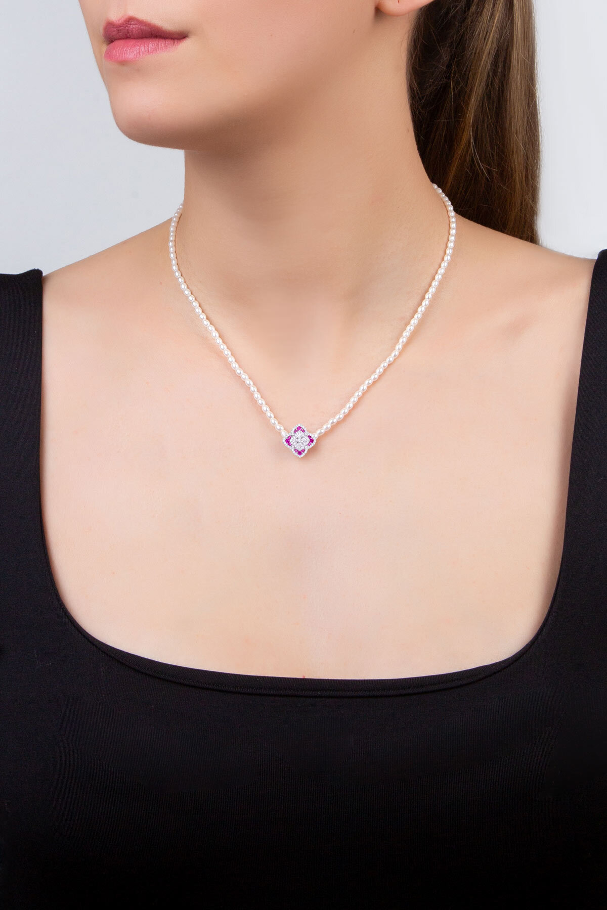 Pembe Yonca Charm, şansı ve zarafeti simgeleyen yonca formunu pembe taş detaylarıyla buluşturur. 925 ayar gümüş üzerine beyaz altın kaplama ile ışıltılı bir görünüm sunar; bileklik ve kolyeler için anlamlı ve şık bir tamamlayıcıdır.