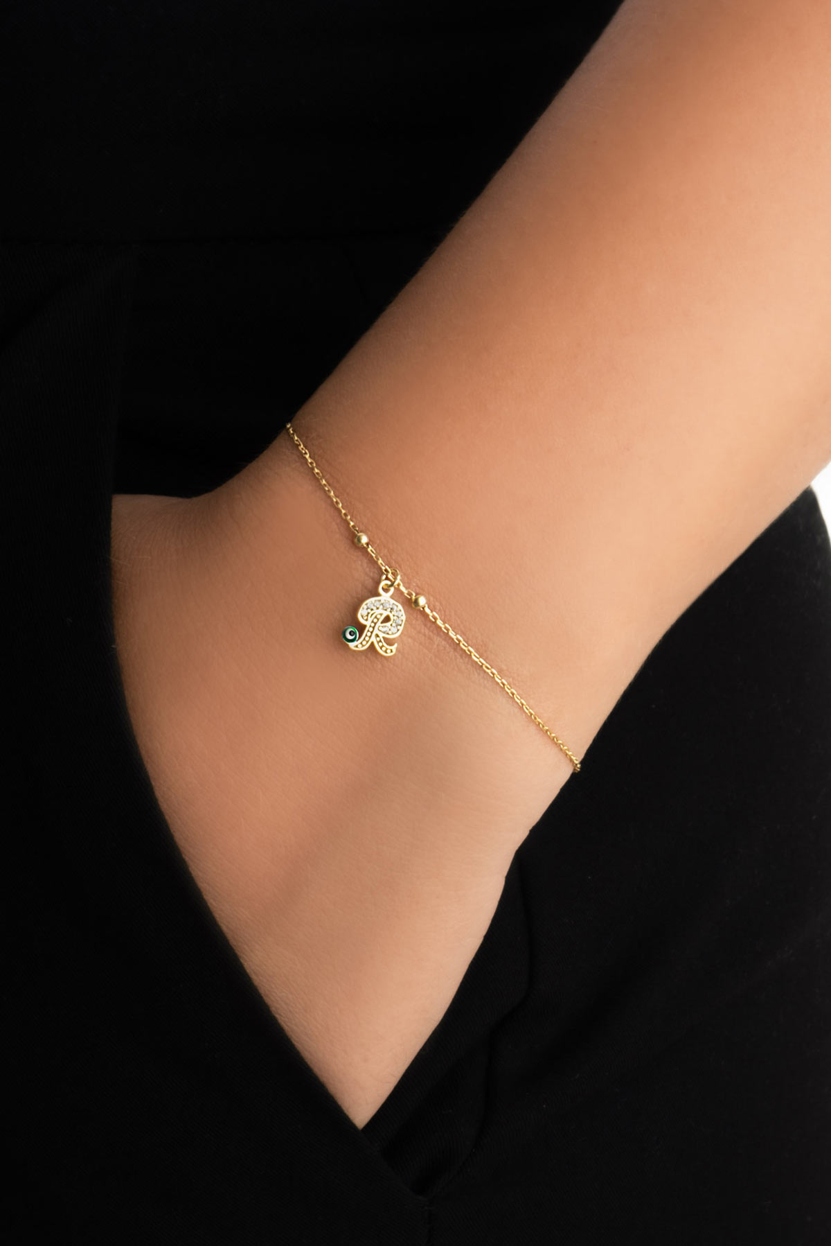 R Harfi 18 Ayar Sarı Altın Kaplama 19 Cm Gümüş Nazar Bileklik