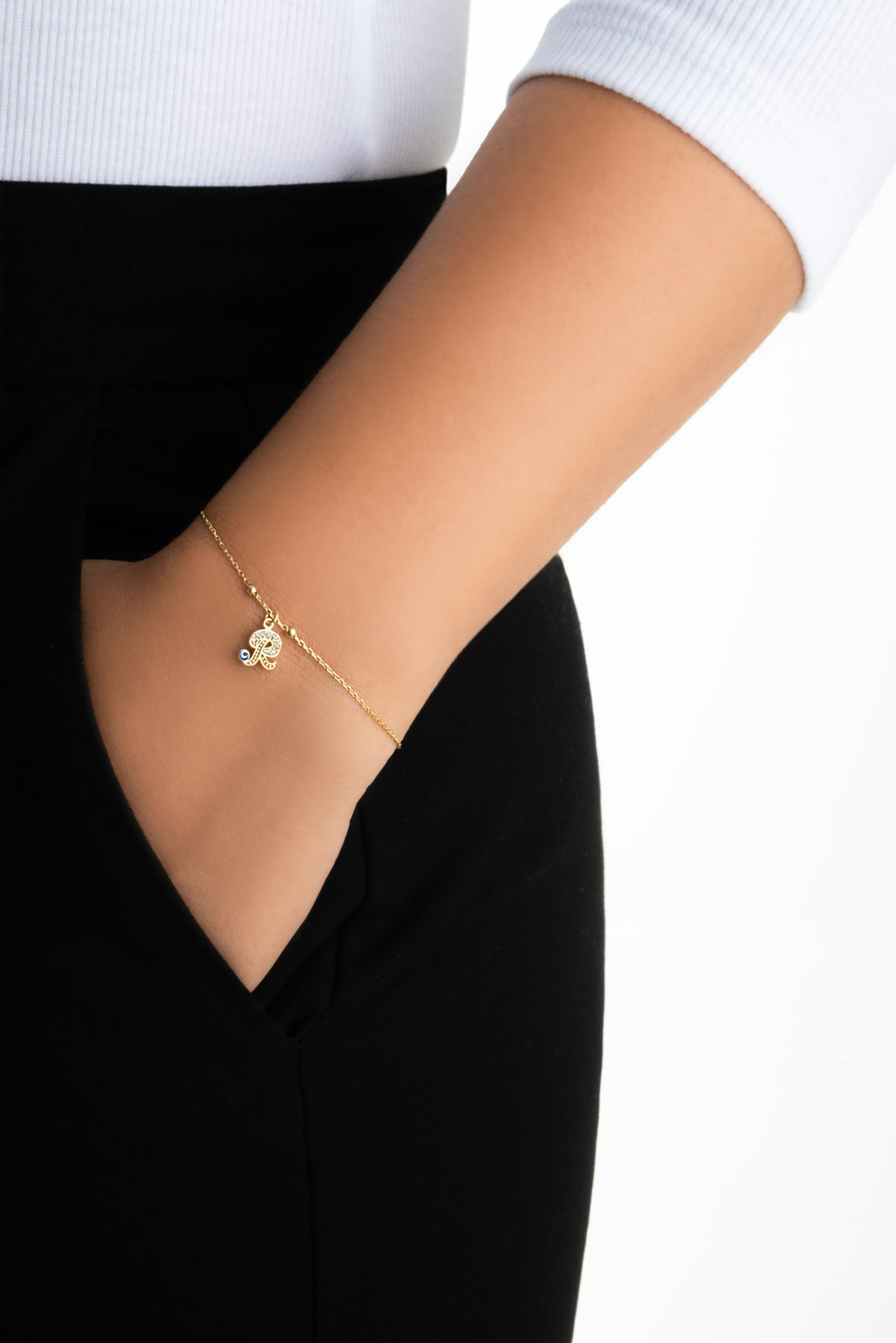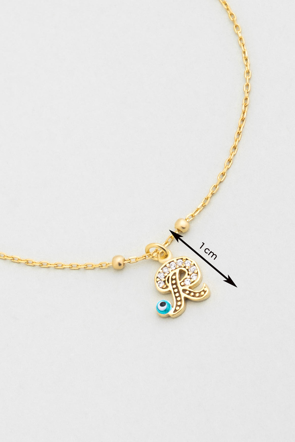 R Harfi 18 Ayar Sarı Altın Kaplama 19 Cm Gümüş Nazar Bileklik