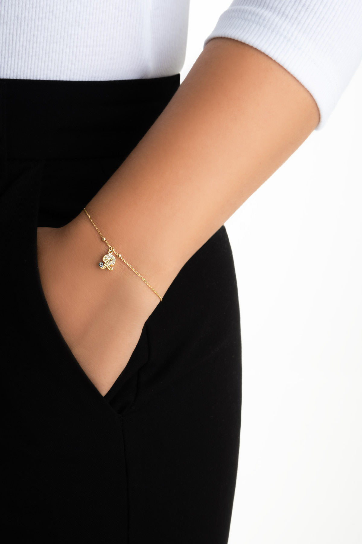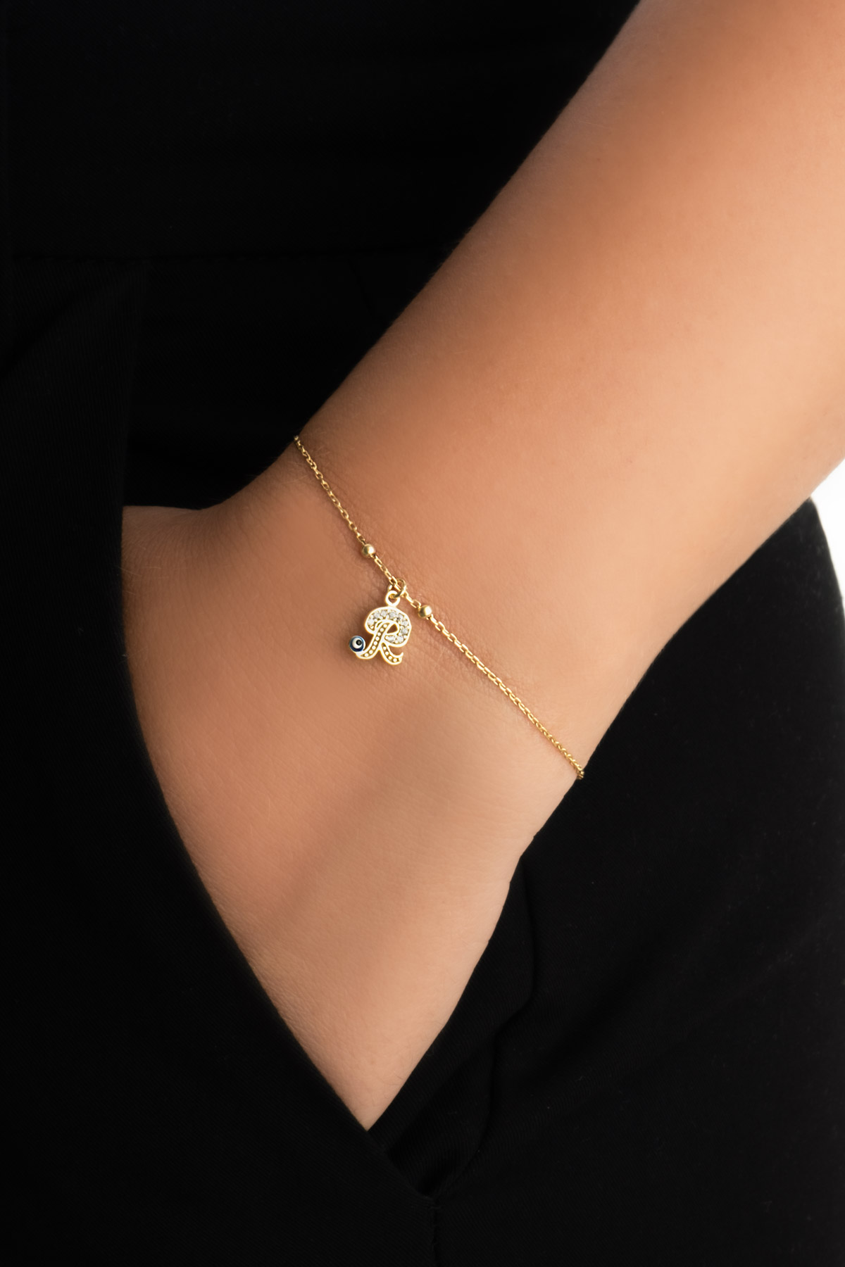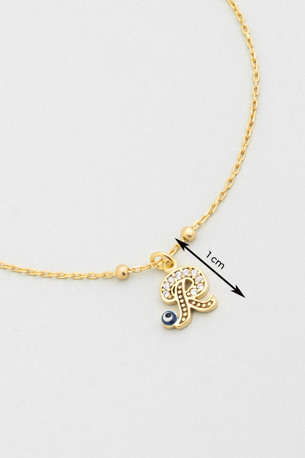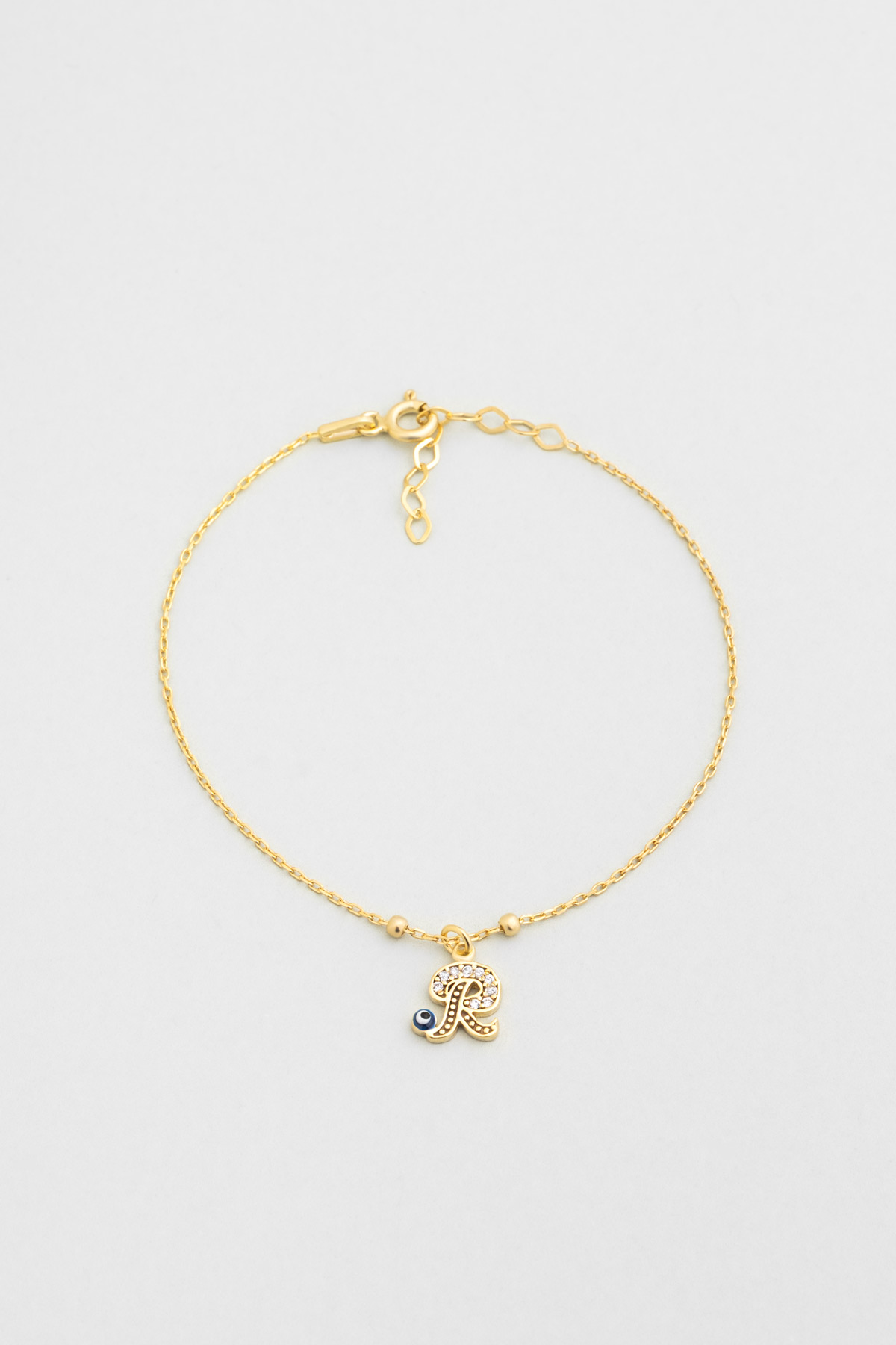 R Harfi 18 Ayar Sarı Altın Kaplama 19 Cm Gümüş Nazar Bileklik