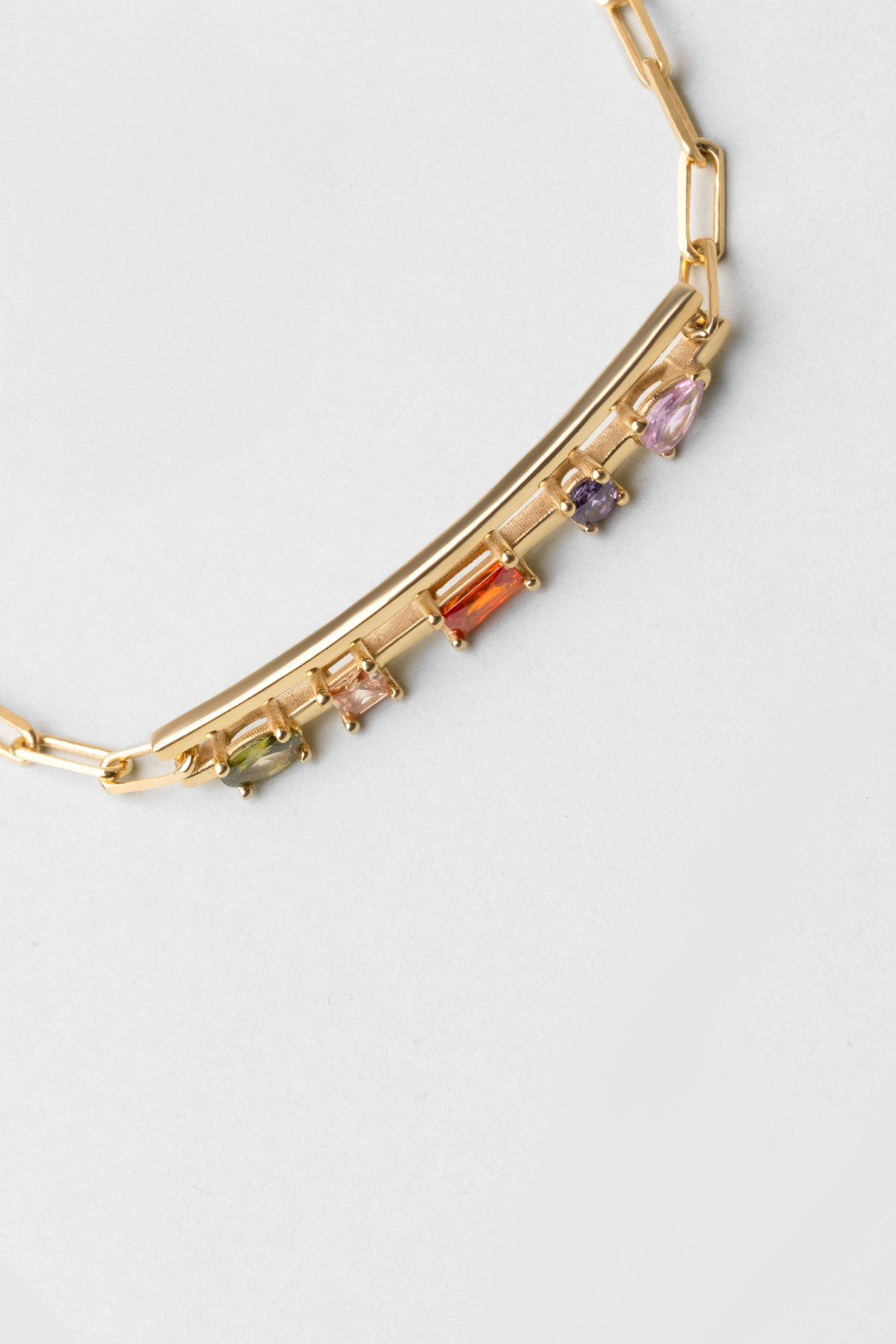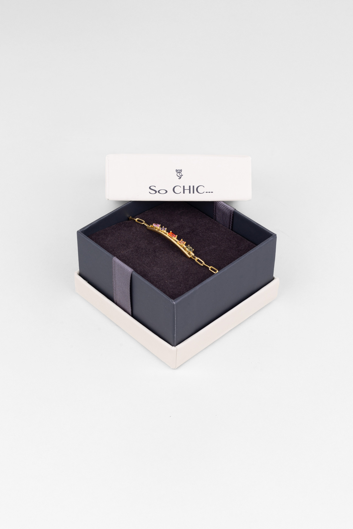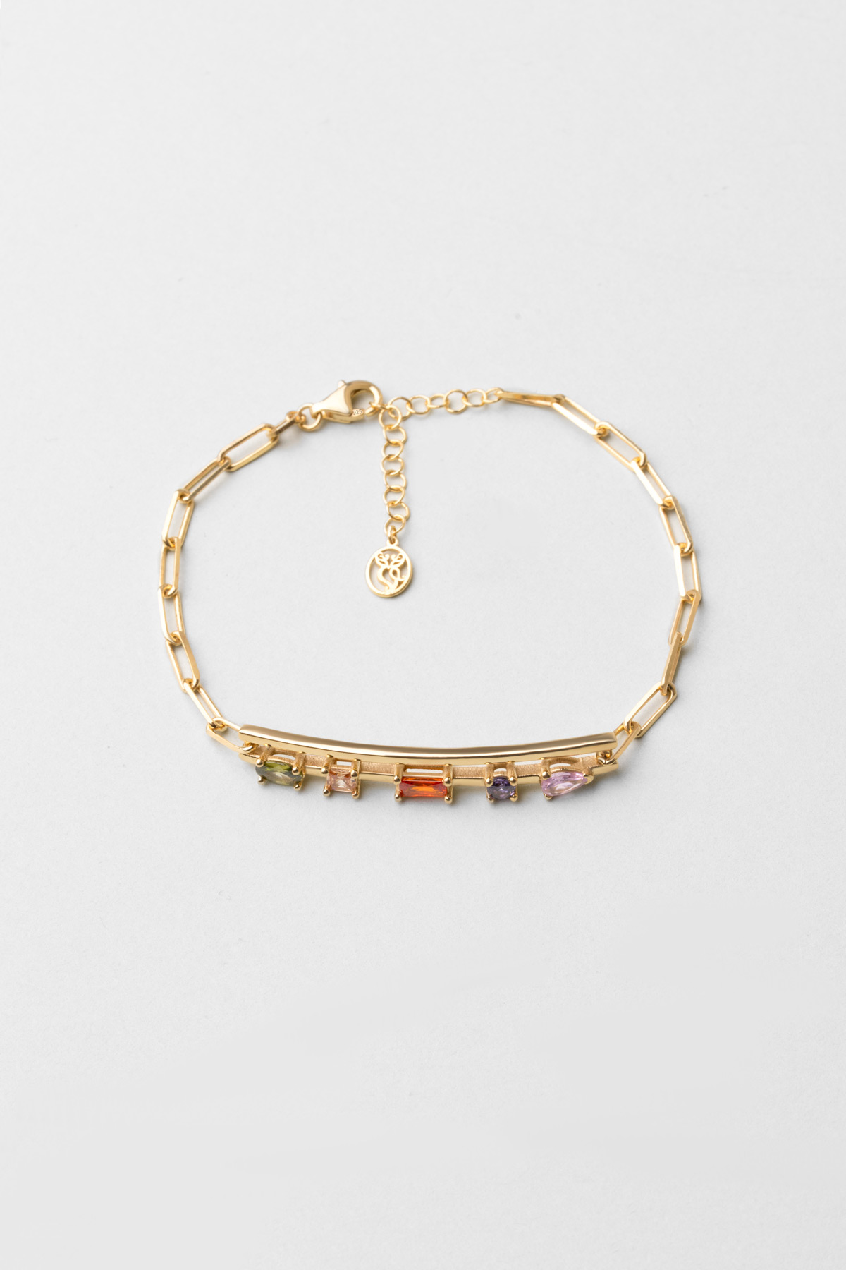 Renkli Taşlı 18 Ayar Sarı Altın Kaplama 19 Cm Gümüş Kelepçe Bileklik