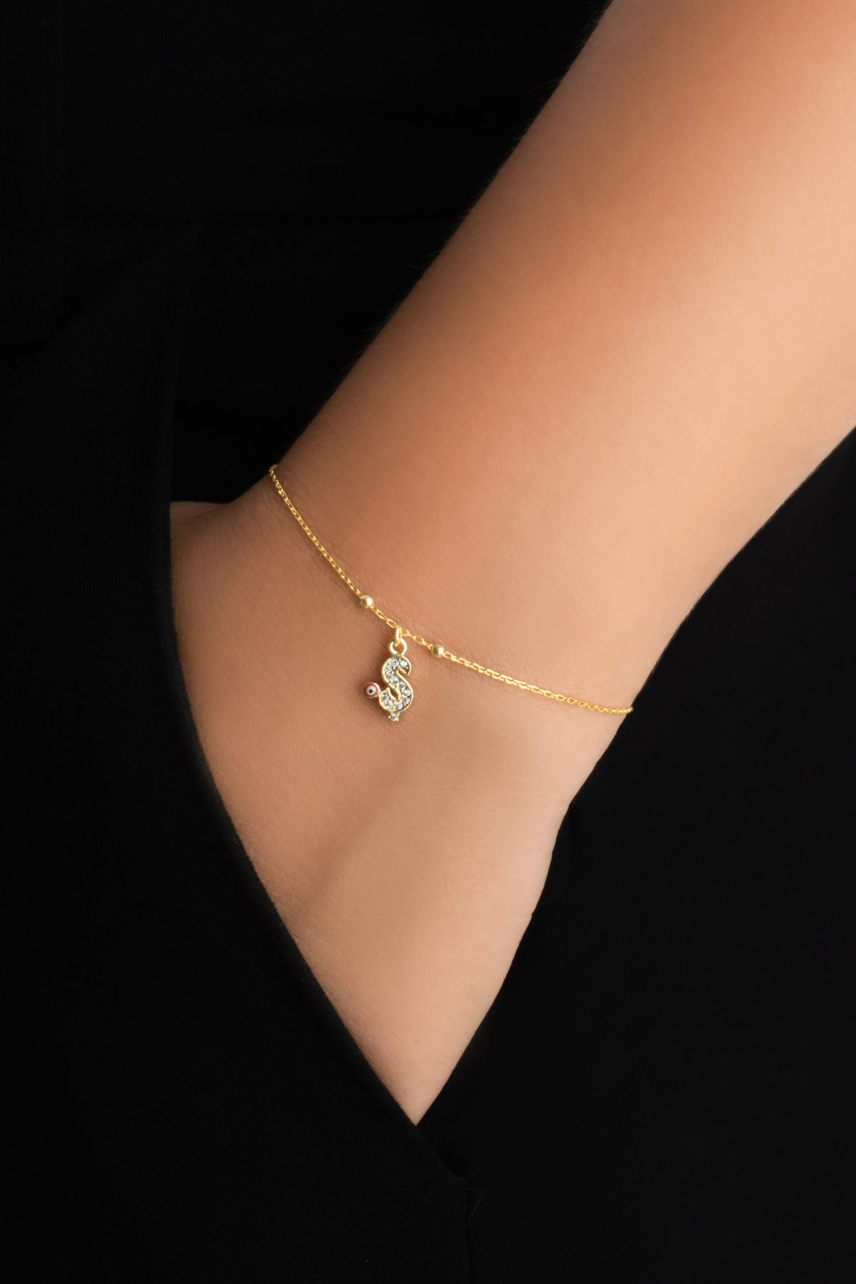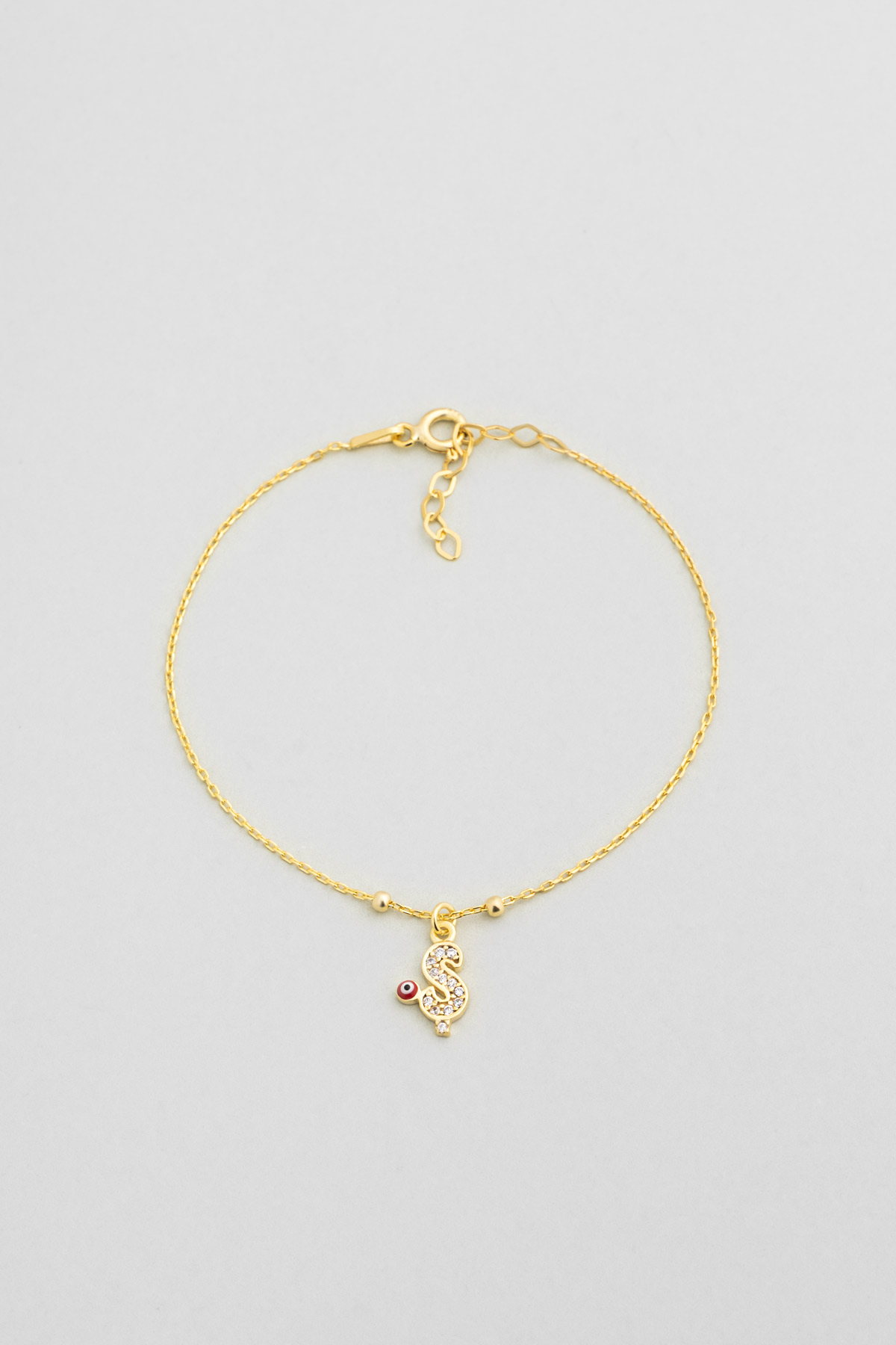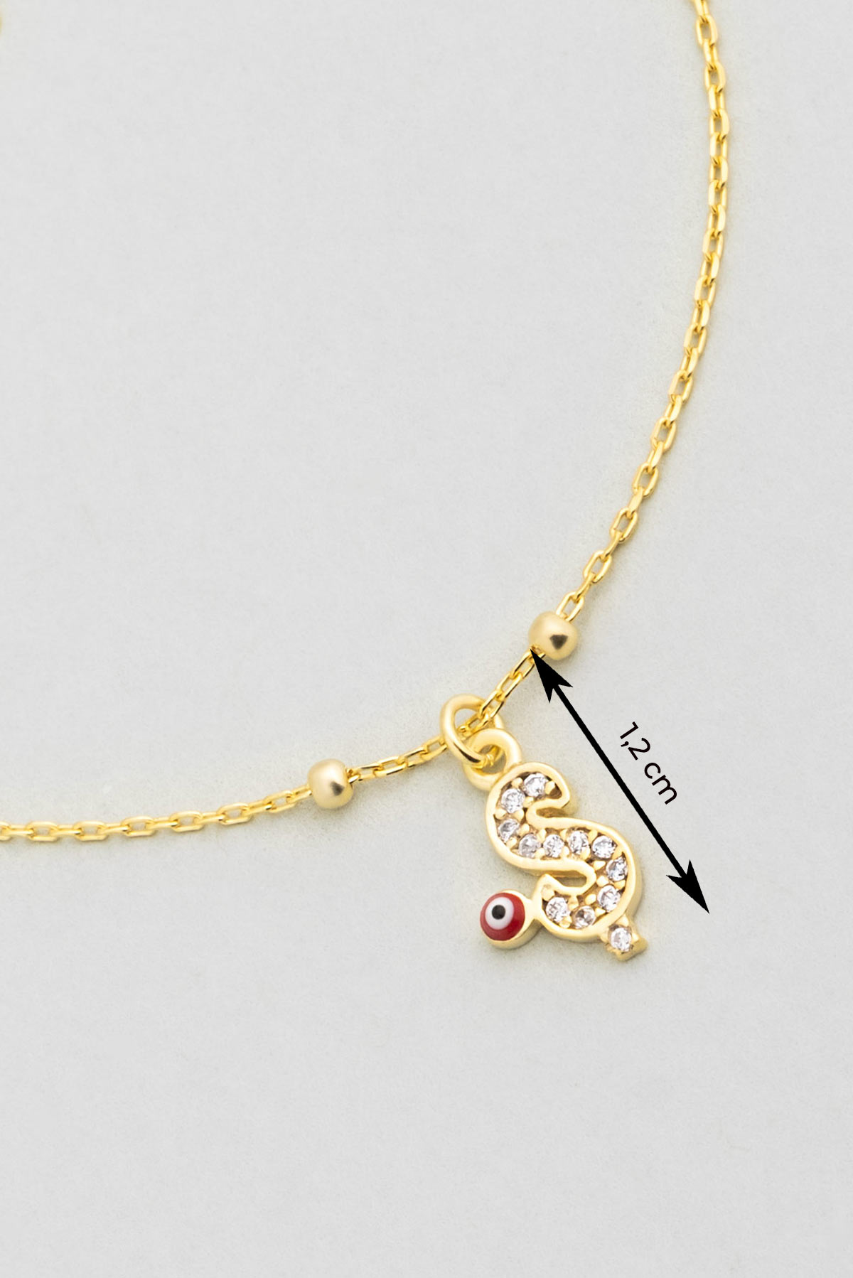 Ş Harfi 18 Ayar Sarı Altın Kaplama 19 Cm Gümüş Nazar Bileklik
