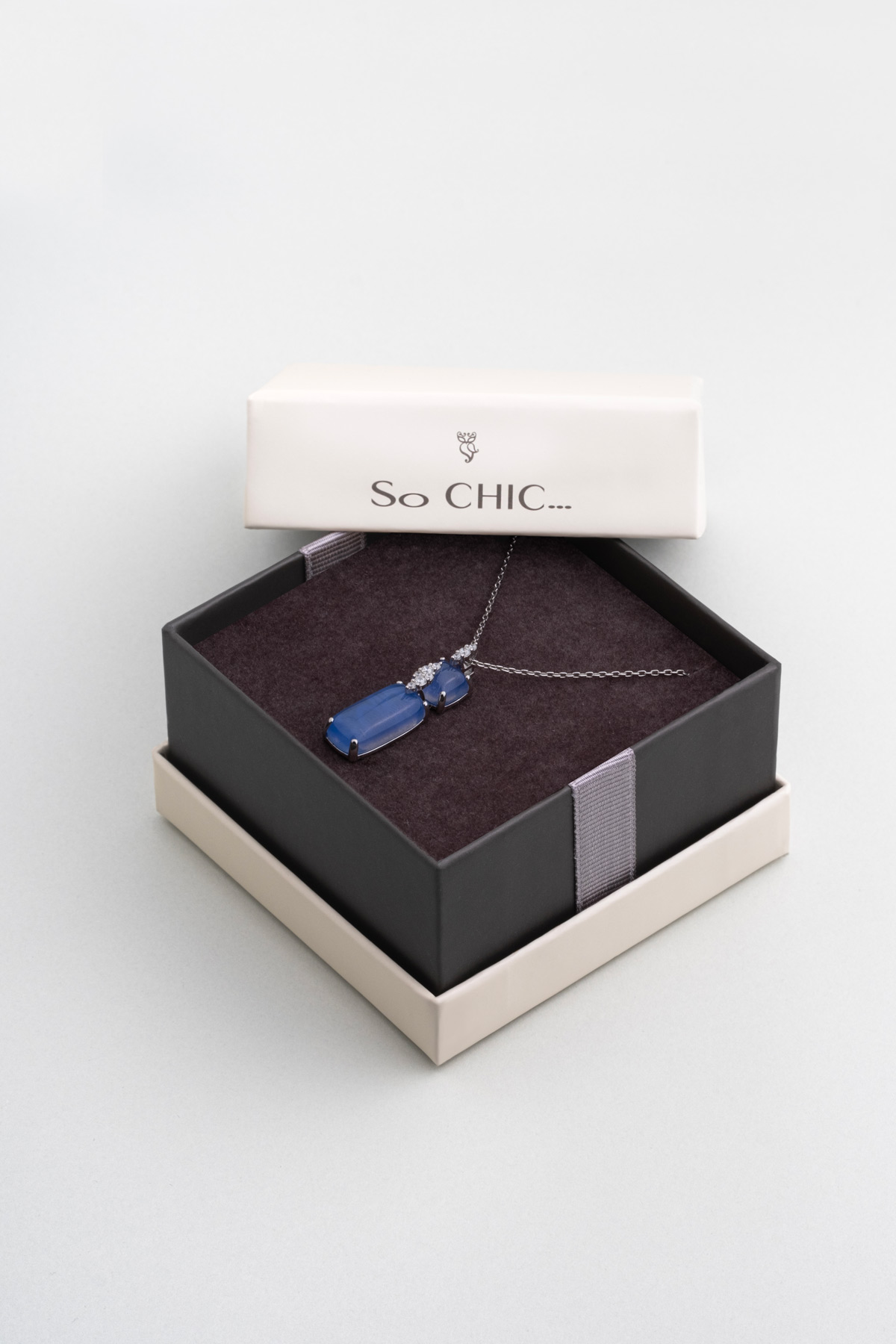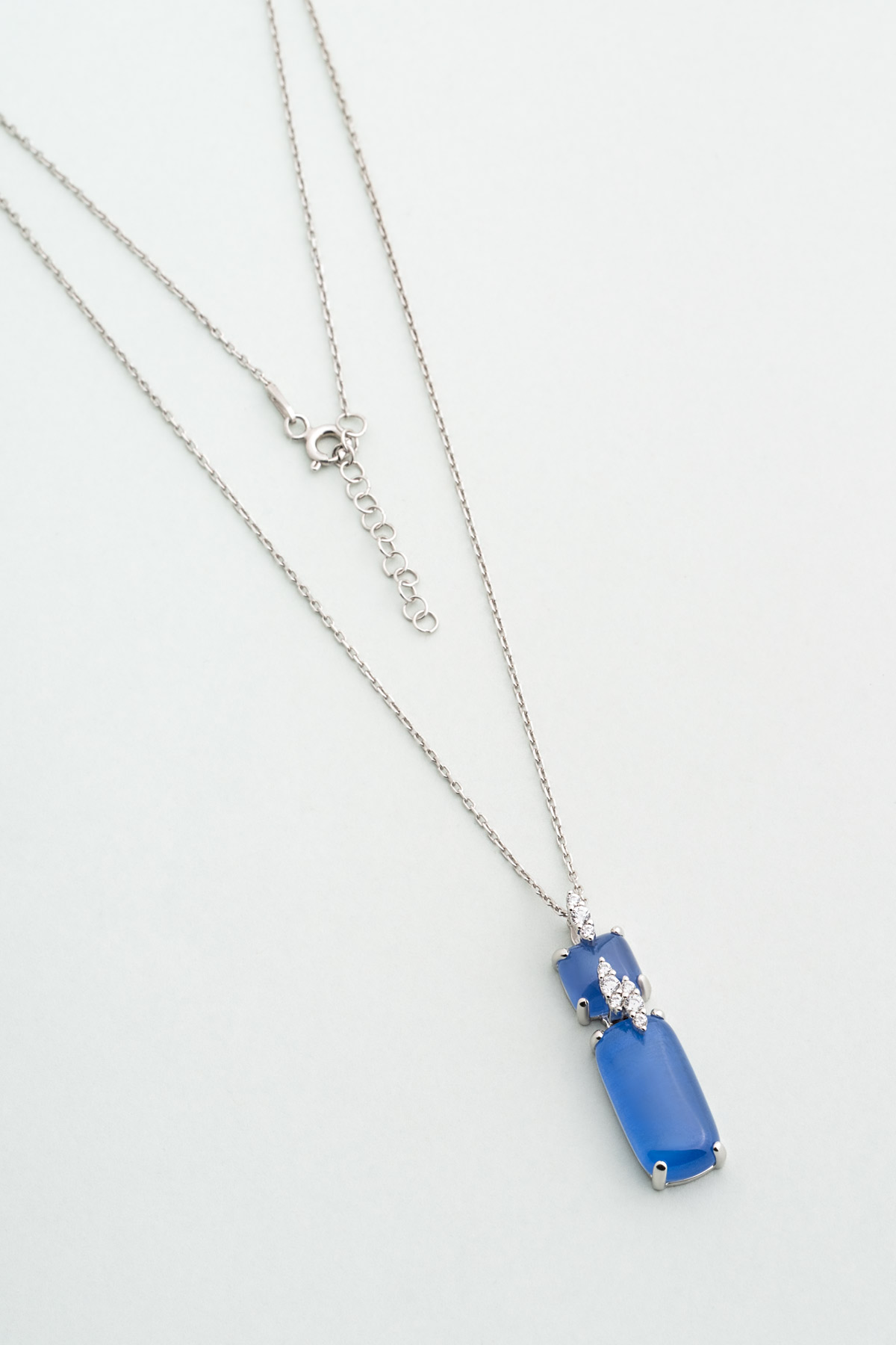 Safir Işıltısı 18 Ayar Beyaz Altın Kaplama 44 Cm Gümüş Tasarım Kolye