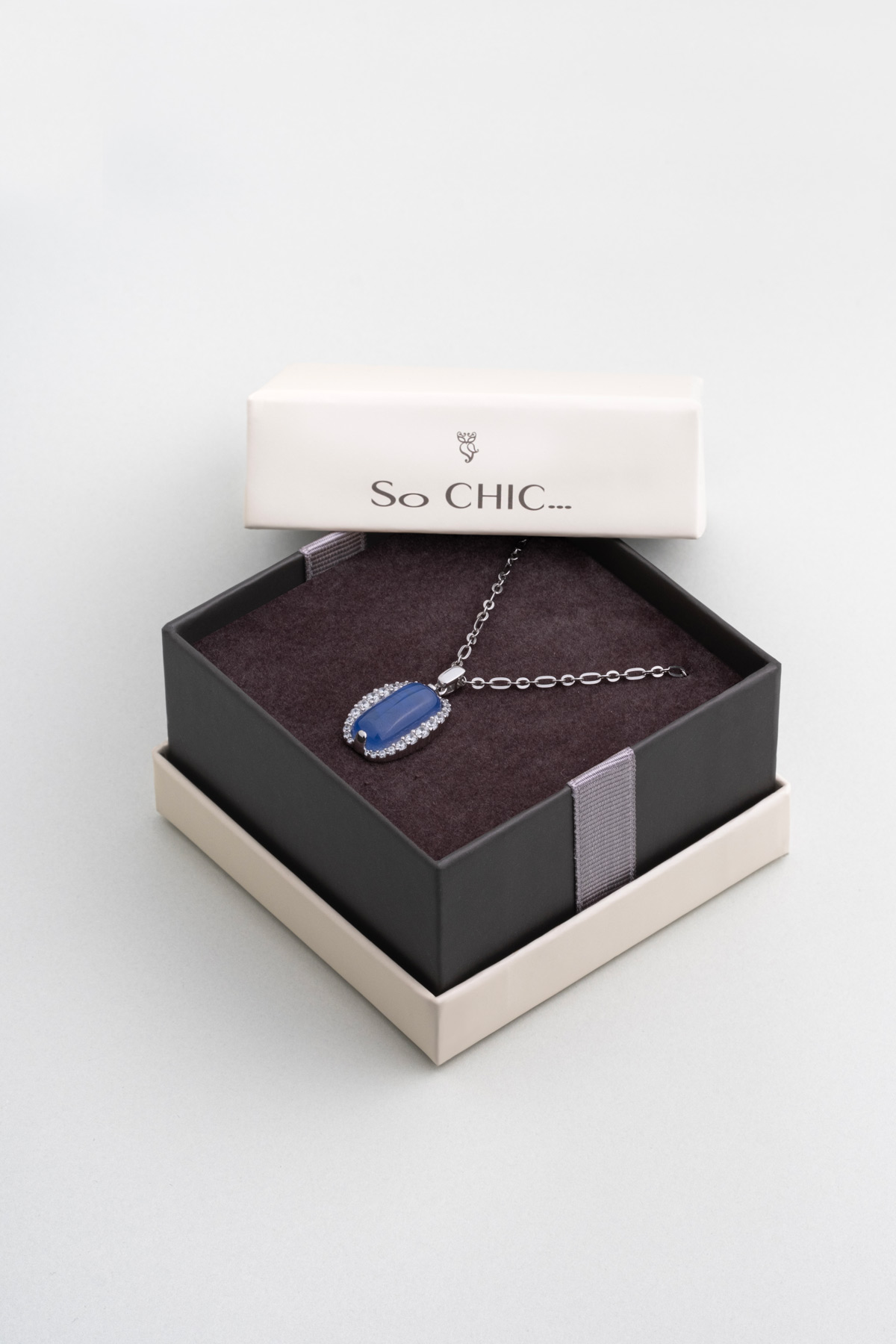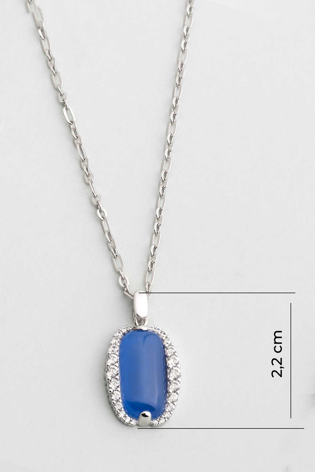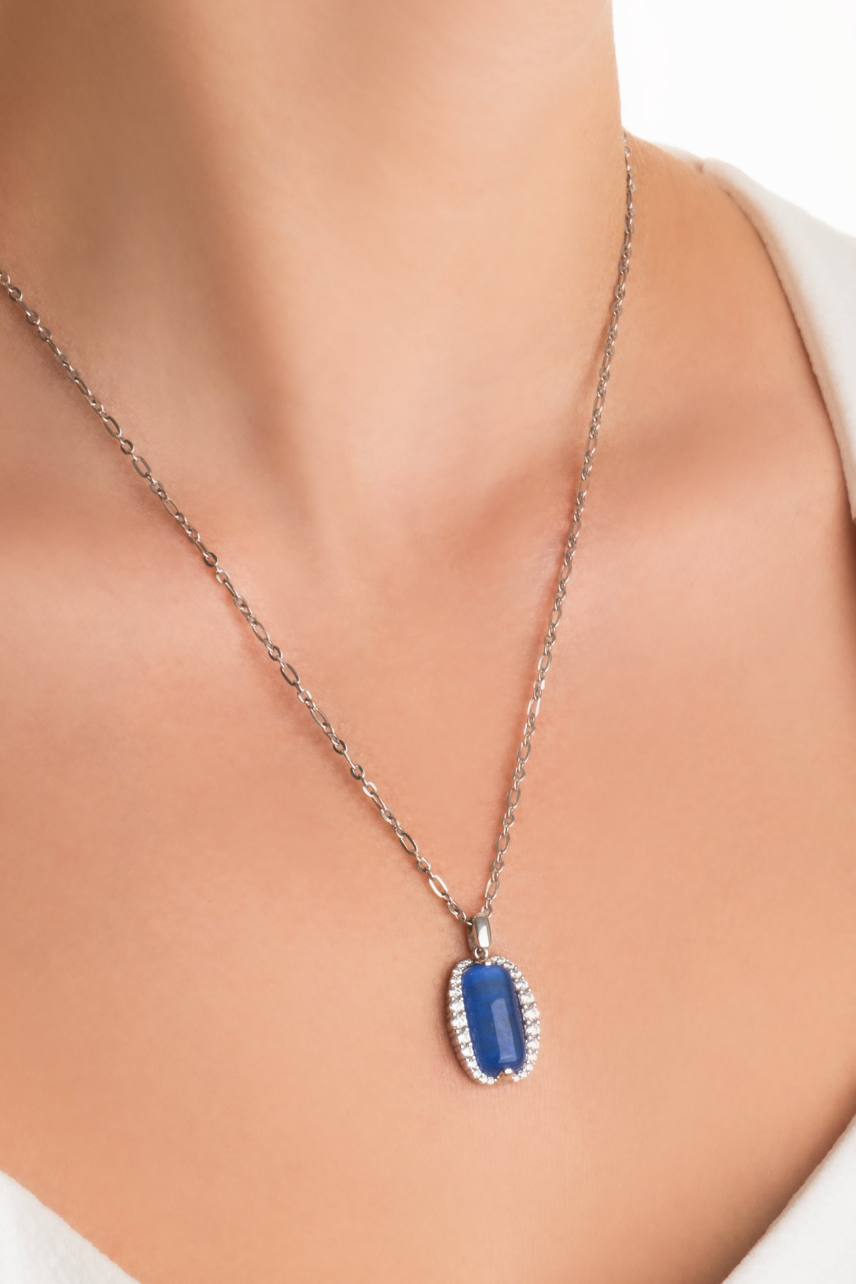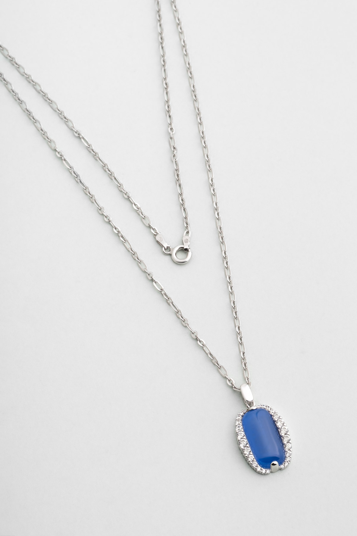 Safir Parlaklığı 18 Ayar Beyaz Altın Kaplama 50 Cm Gümüş Tasarım Kolye