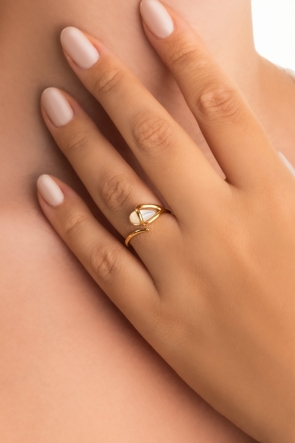 Pembe Kalsedon Taşlı Beyaz Altın Kaplama