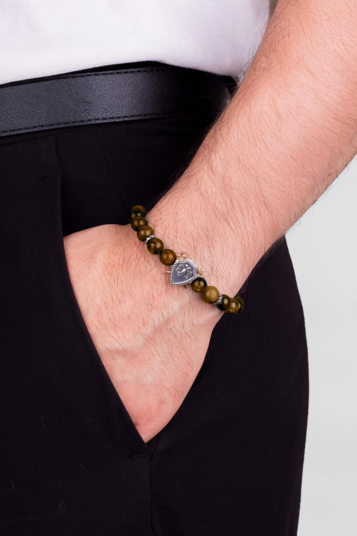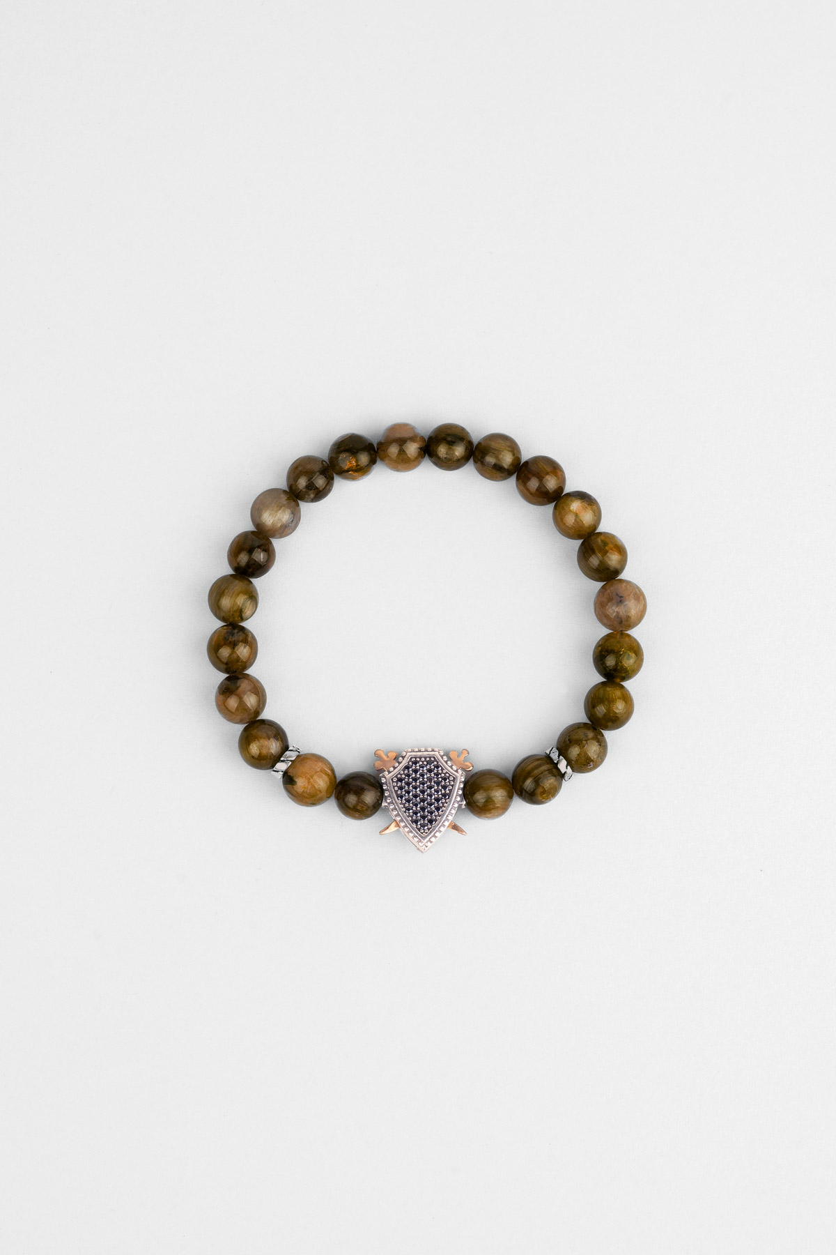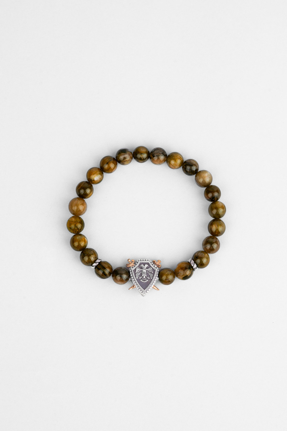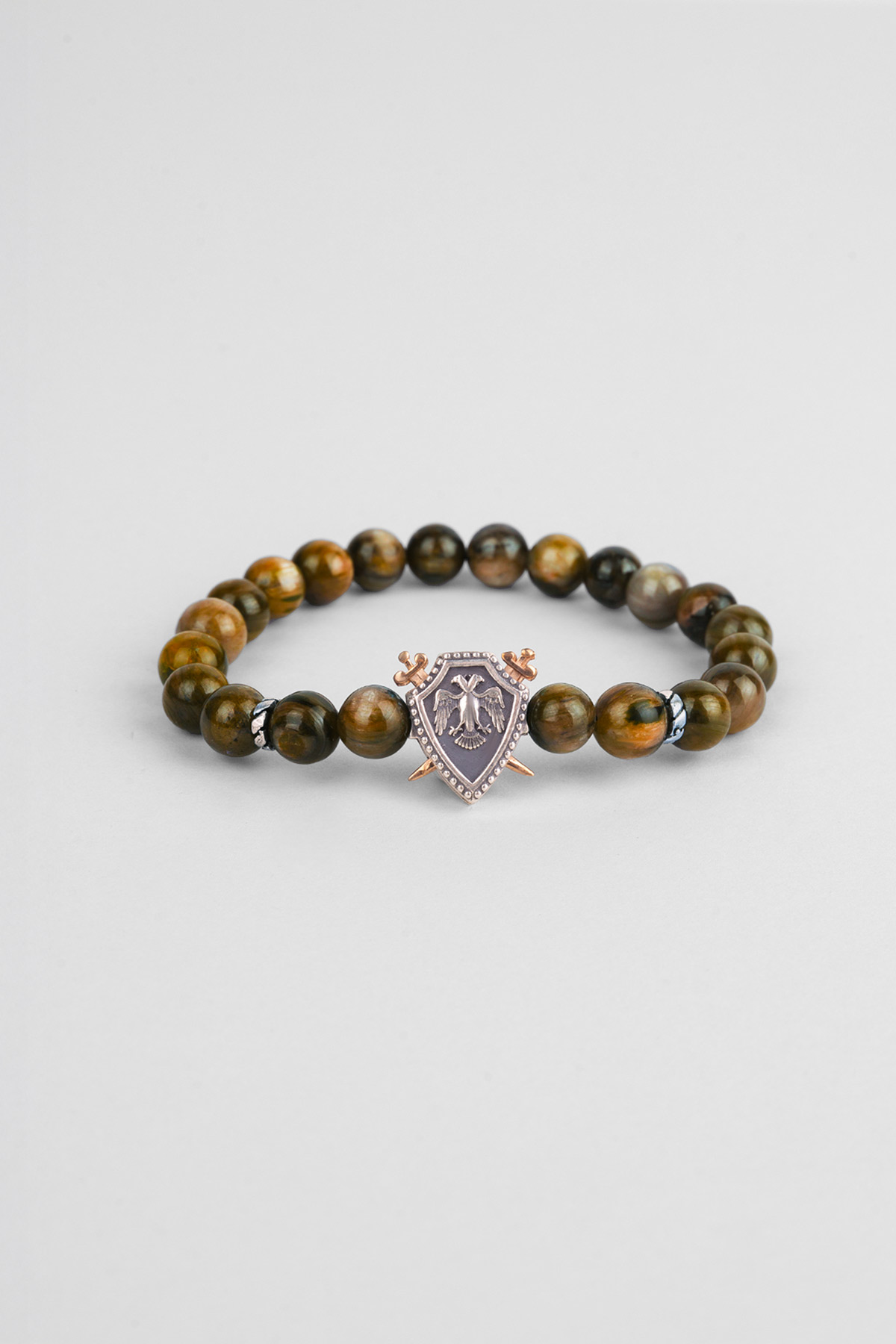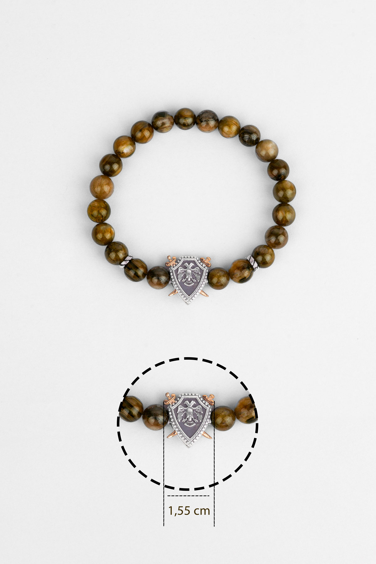 Selçuklu Kartalı Kaplan Gözü Taşlı Cilalı Gümüş Erkek Bileklik