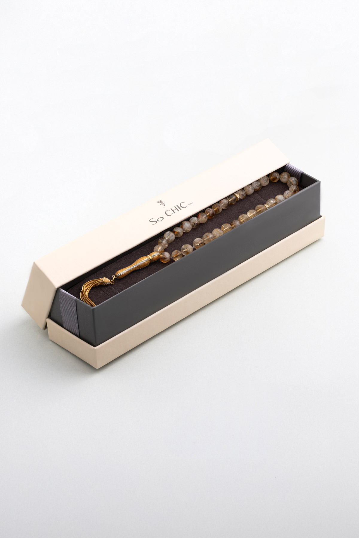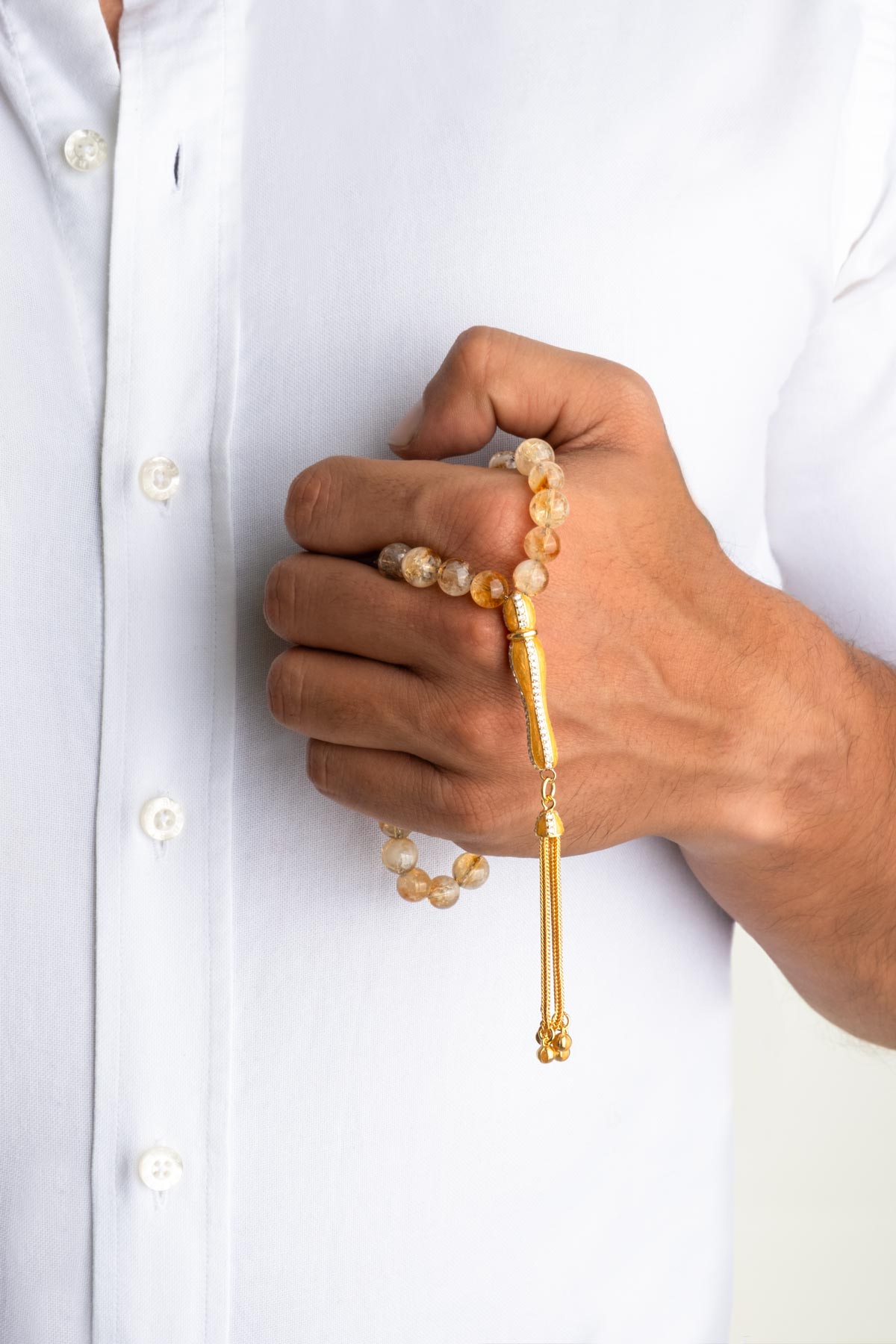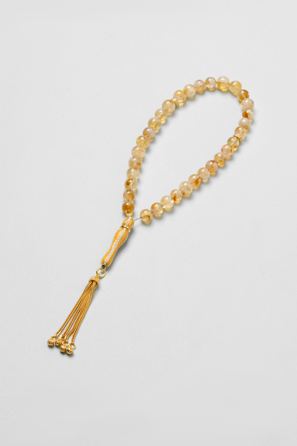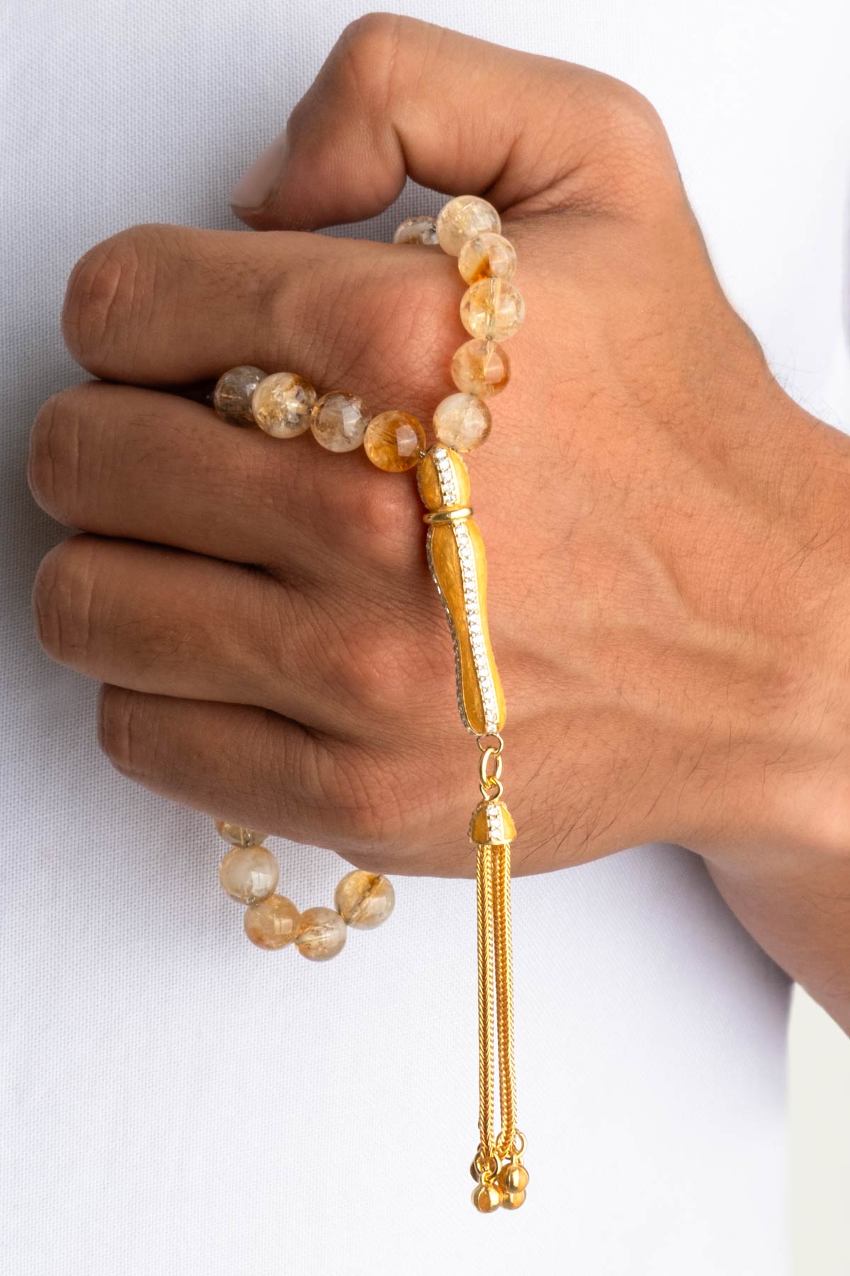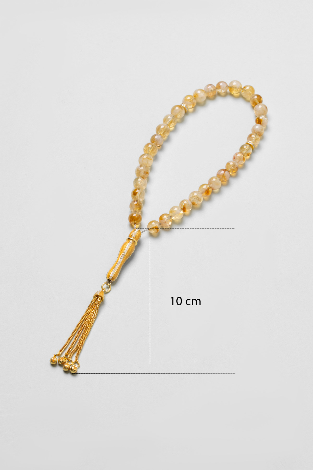 Sitrin Taşlı 18 Ayar Sarı Altın Kaplama 25 Cm Gümüş Tesbih