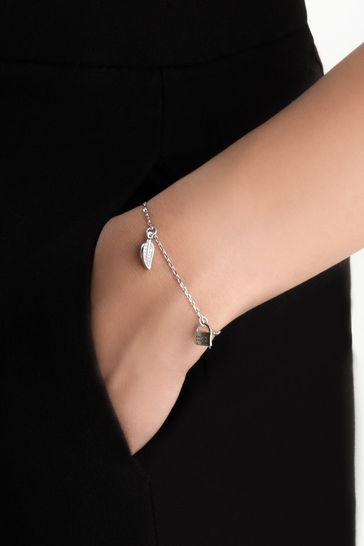 Sonbahar Rüzgarı 18 Ayar Beyaz Altın Kaplama 20 Cm Gümüş Minimal Bileklik