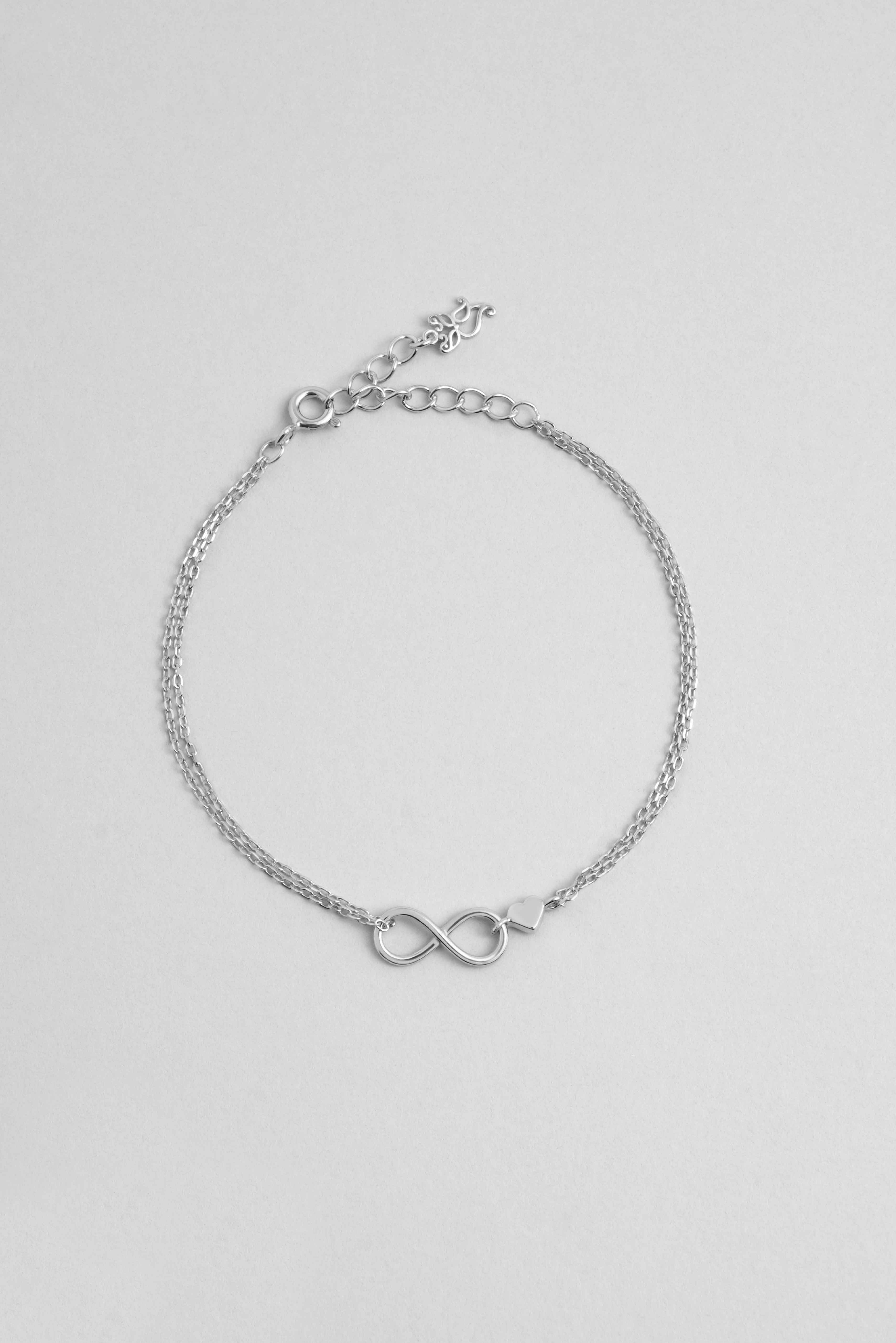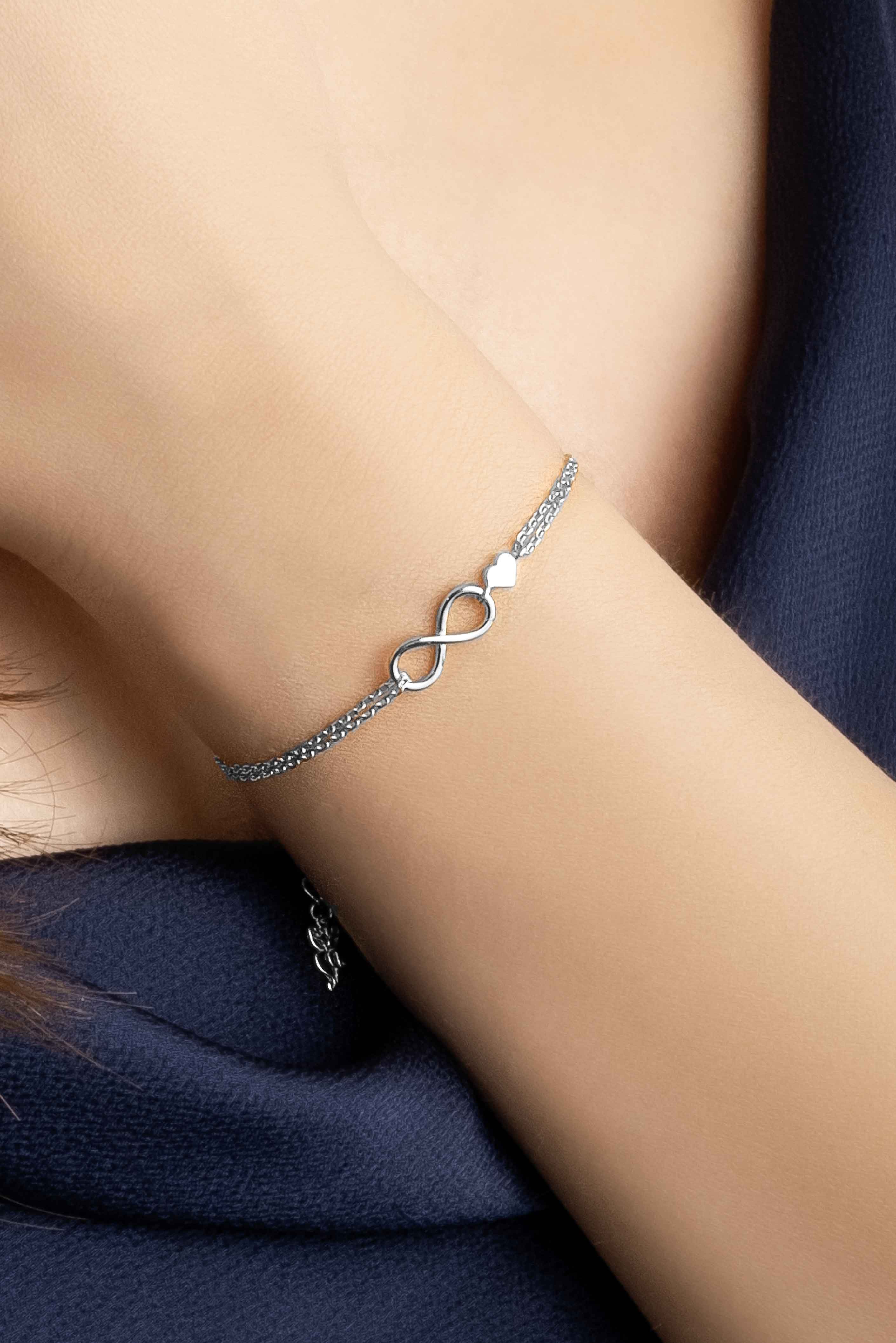 Sonsuz Aşk 18 Ayar Beyaz Altın Kaplama 20 Cm Gümüş Minimal Bileklik