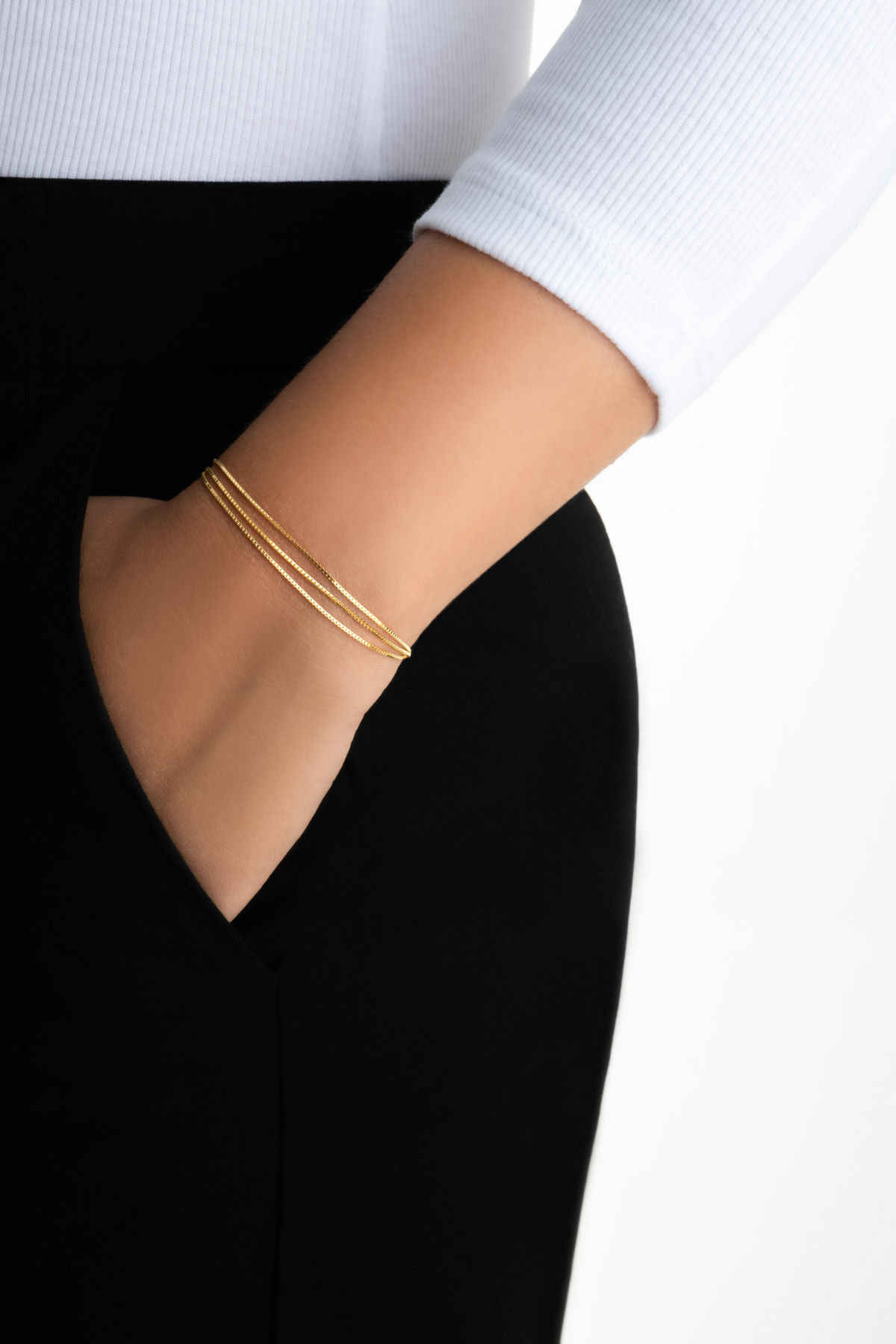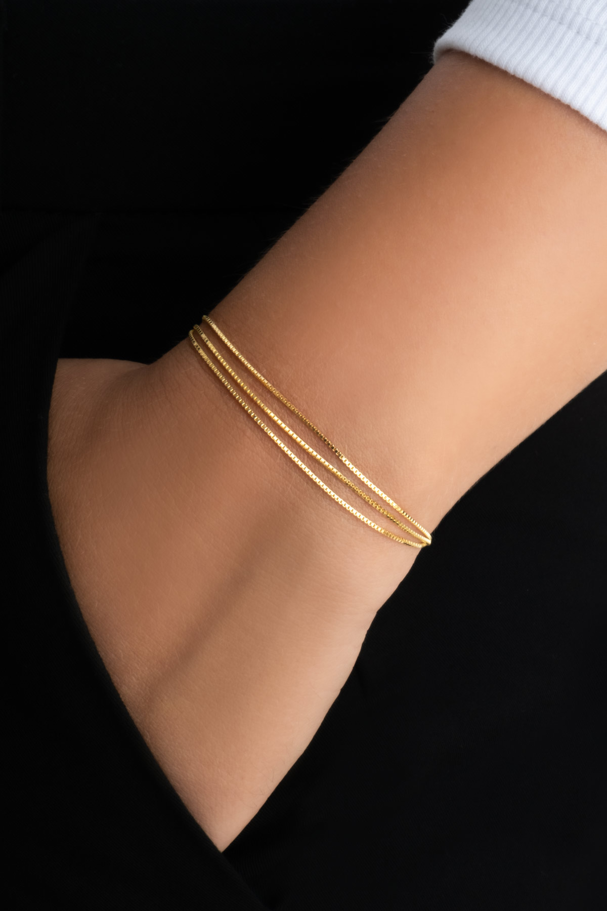 Sonsuz Bağ 18 Ayar Sarı Altın Kaplama 19 Cm Gümüş Üçlü Zincir Bileklik