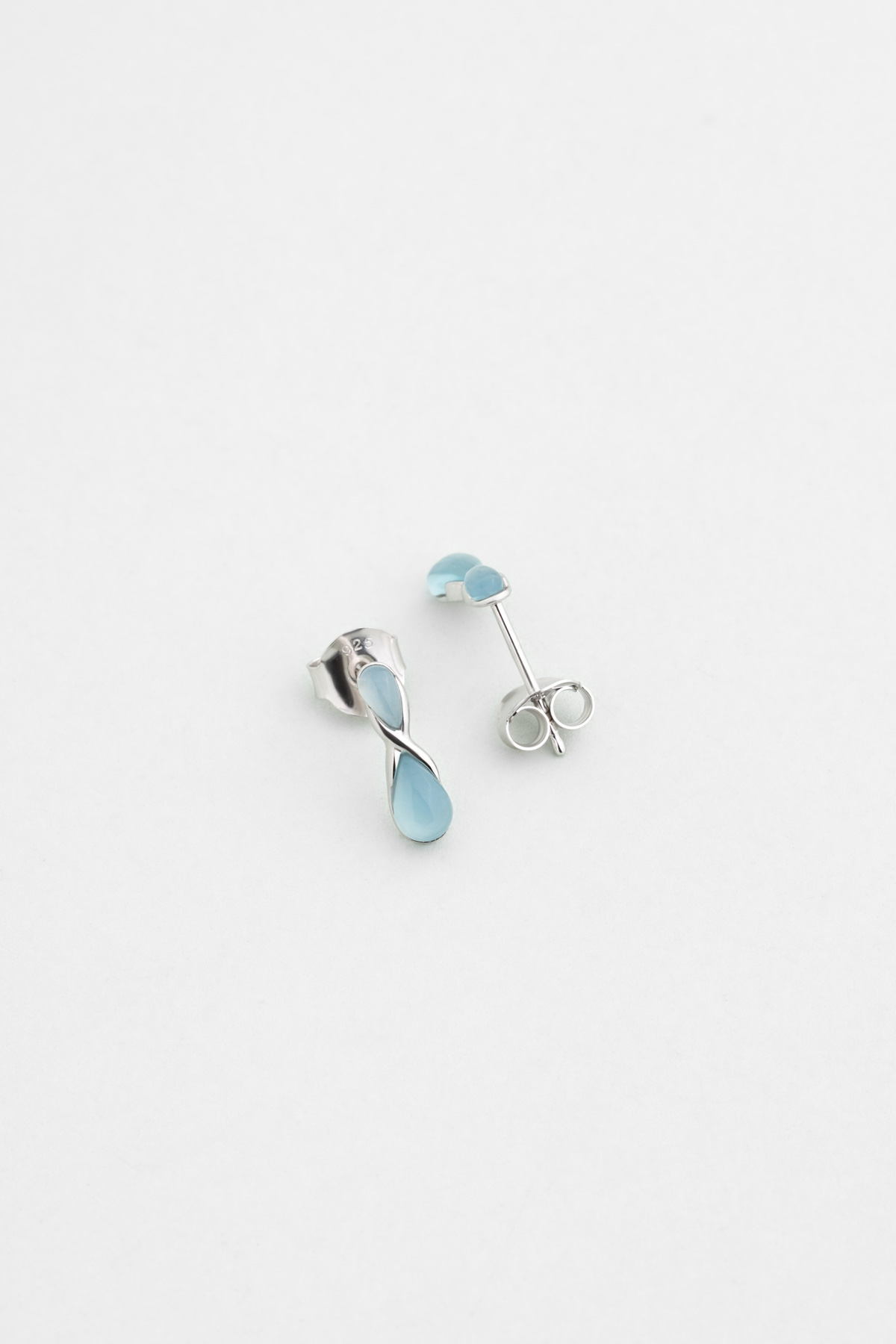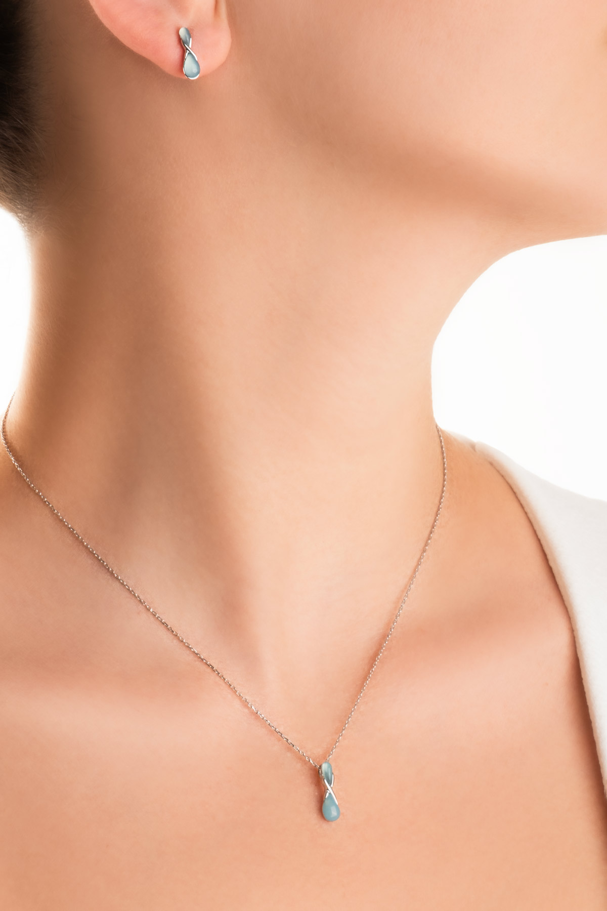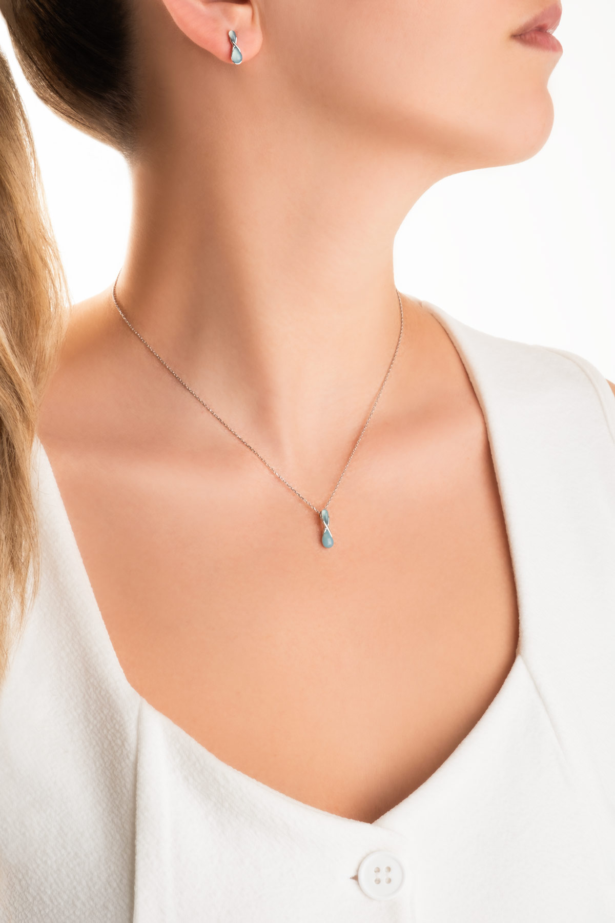 Mavi Kalsedon Taşlı Beyaz Altın Kaplama