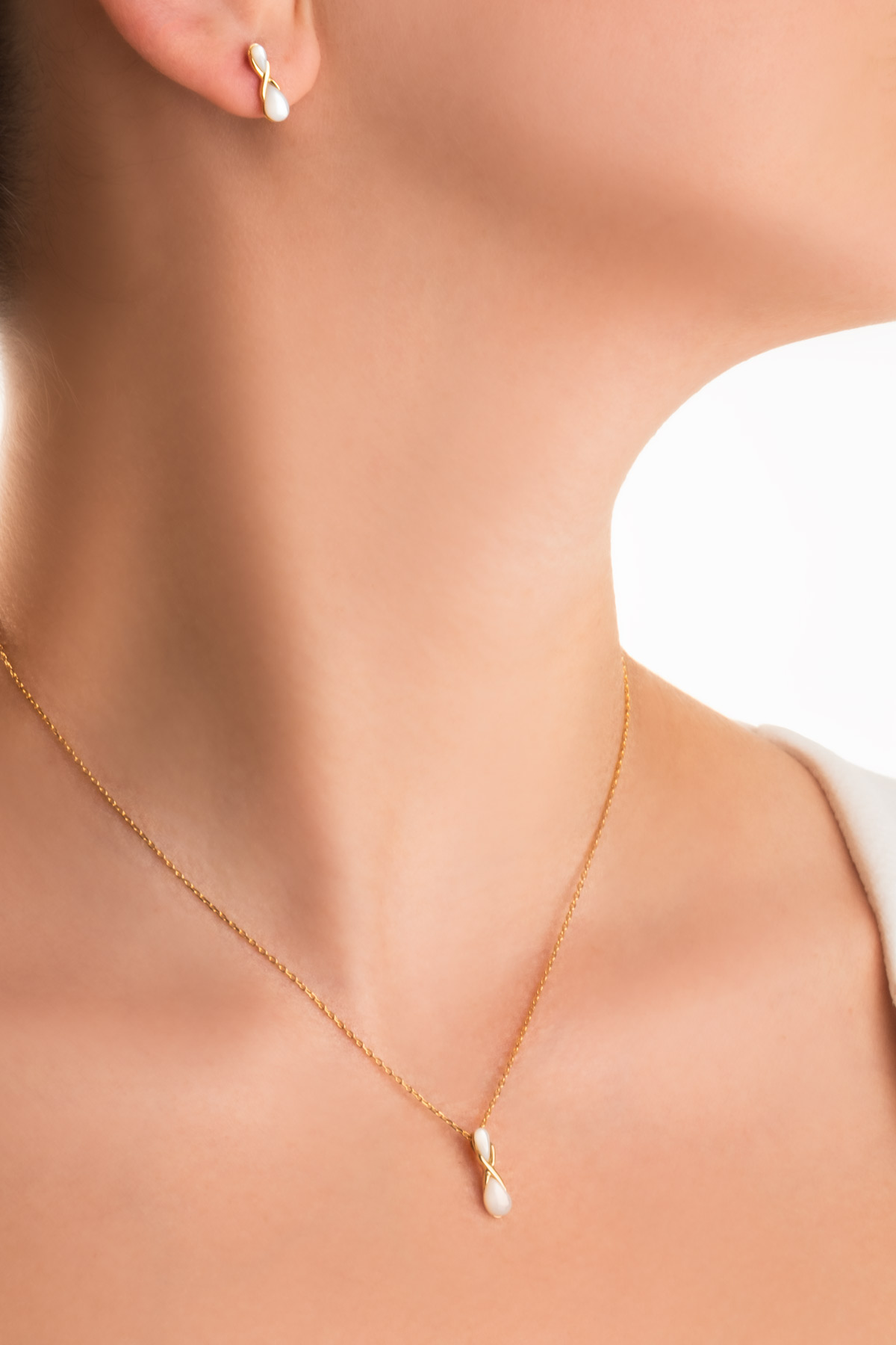 Sedef Taşlı Sarı Altın Kaplama