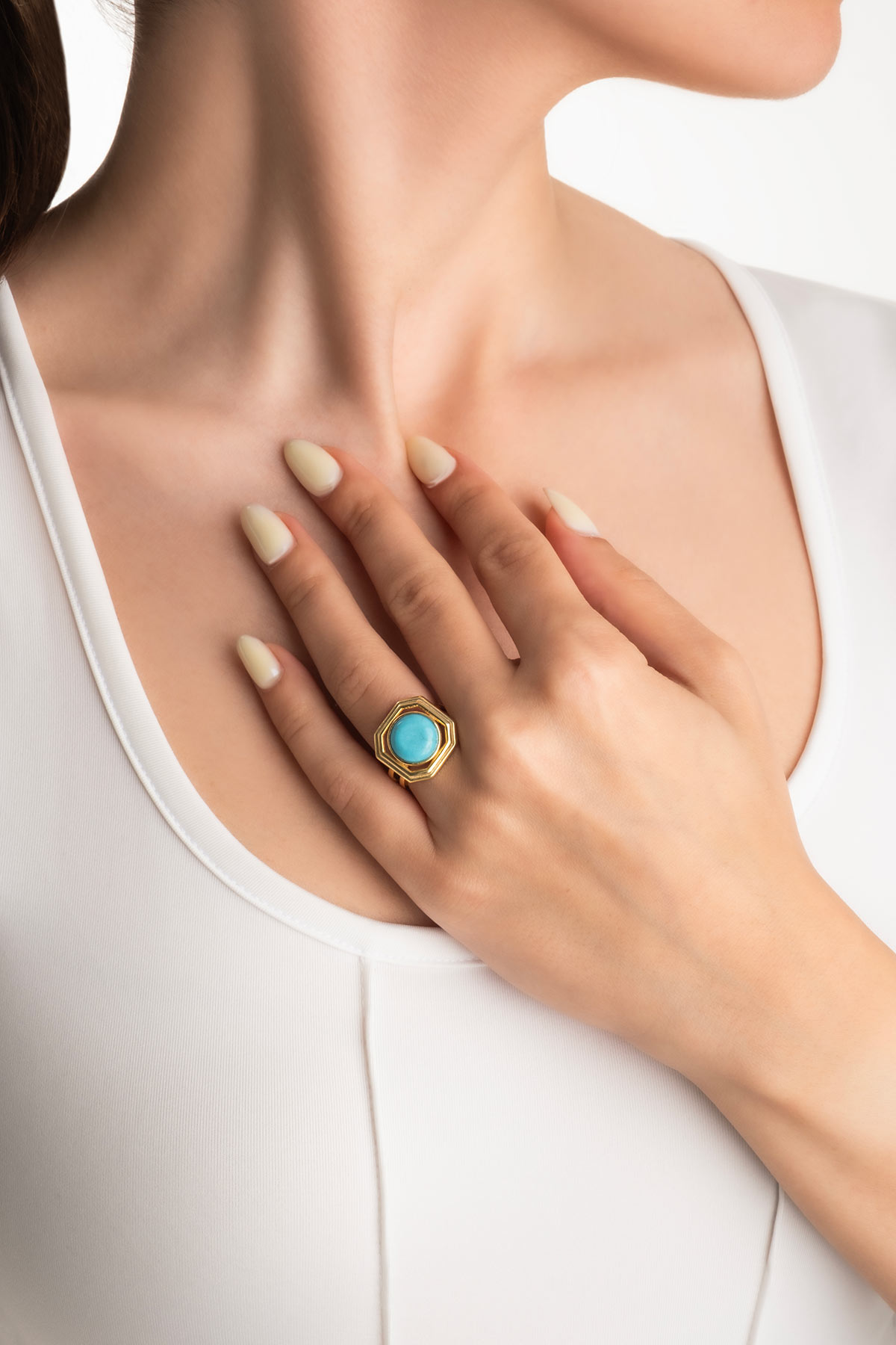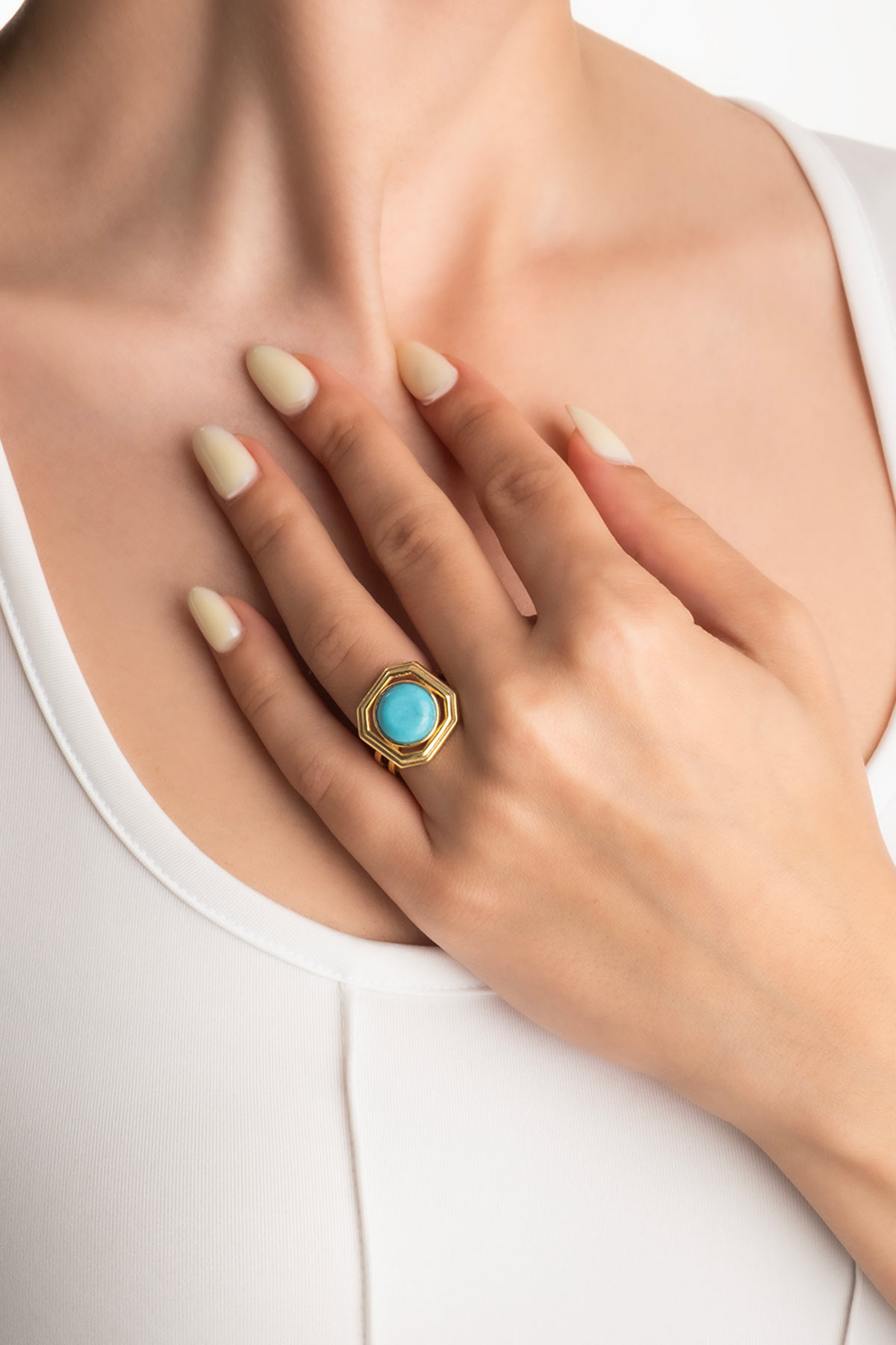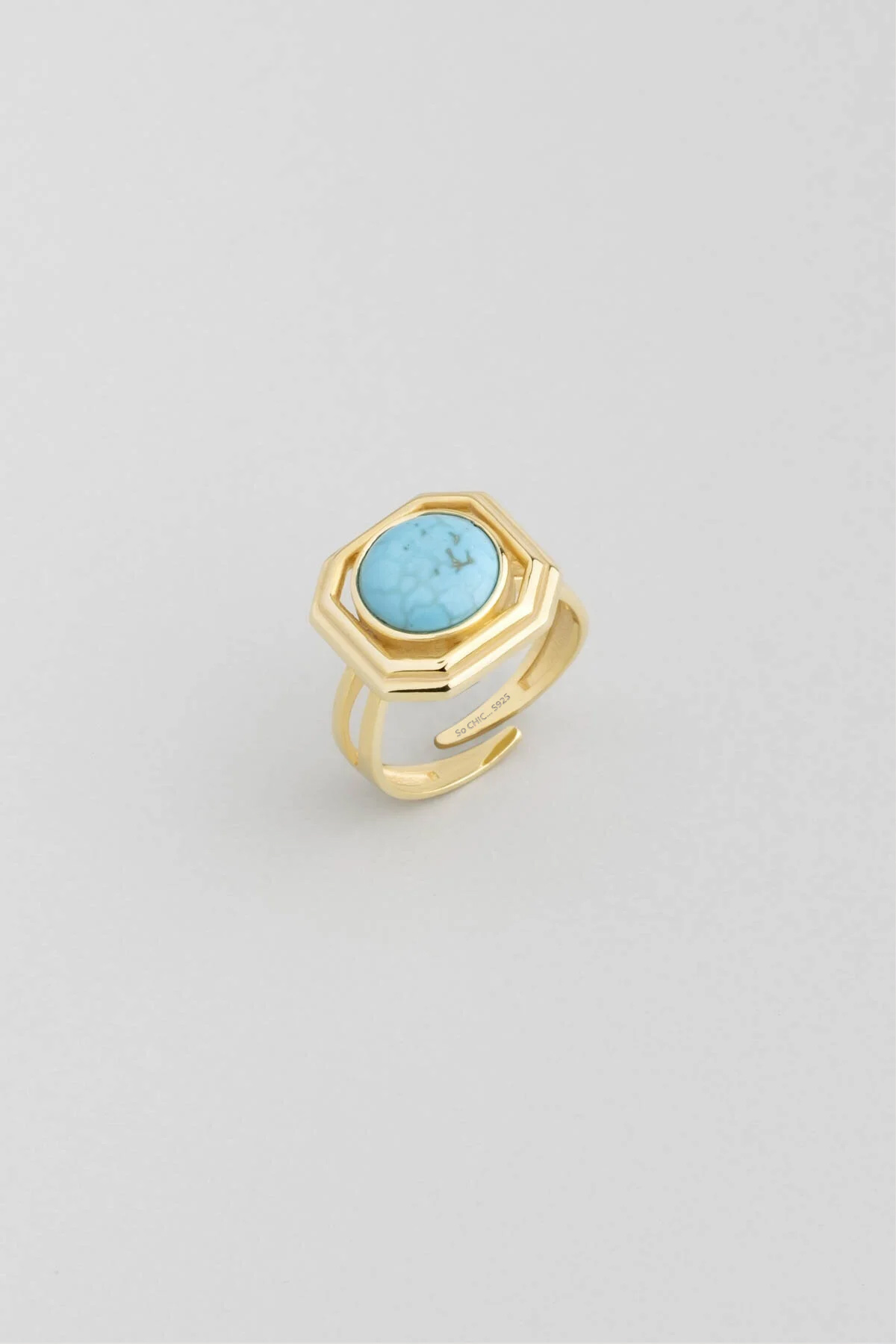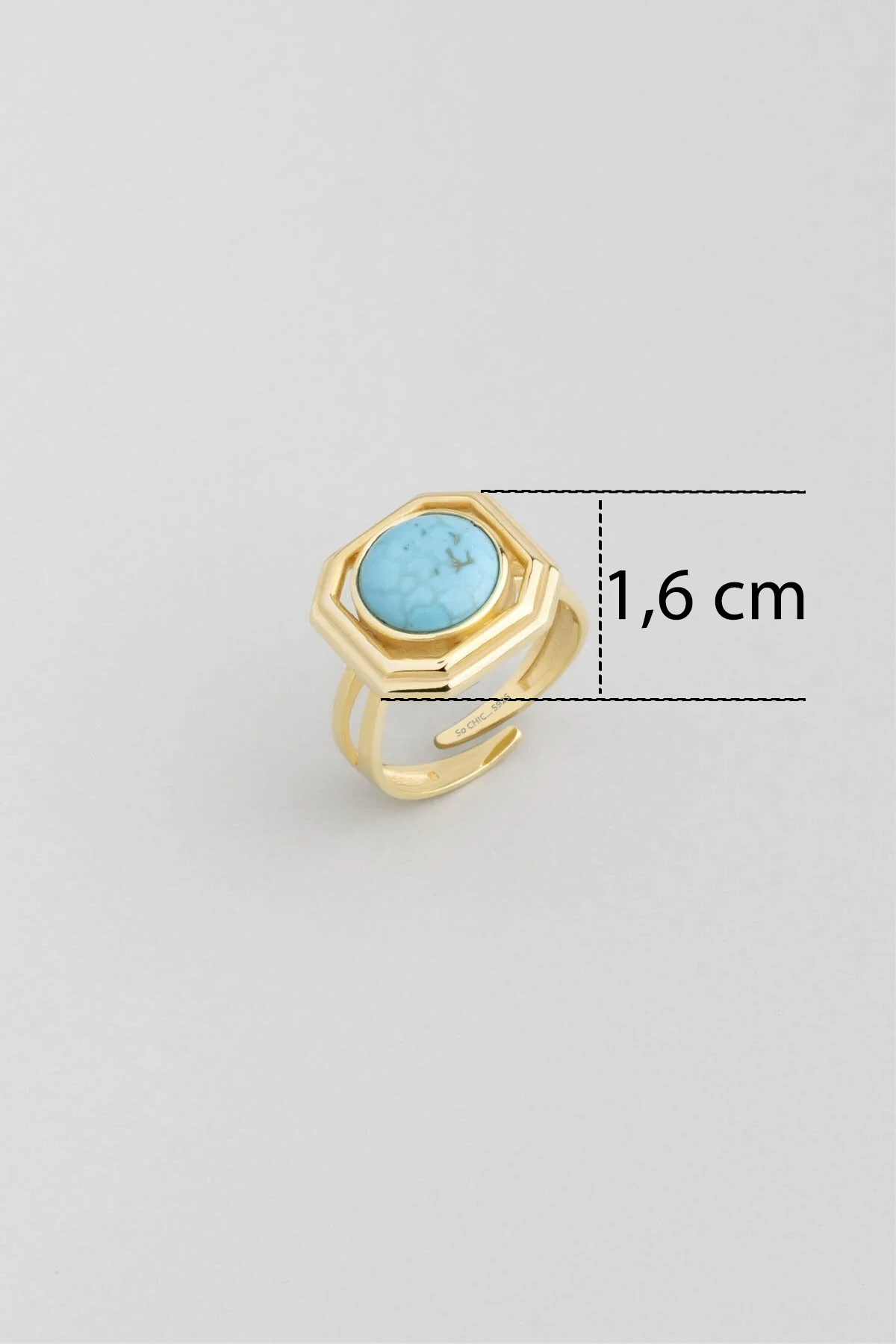 Turkuaz Rüyası 18 Ayar Sarı Altın Kaplama Doğal Taşlı Ayarlanabilir Gümüş Yüzük