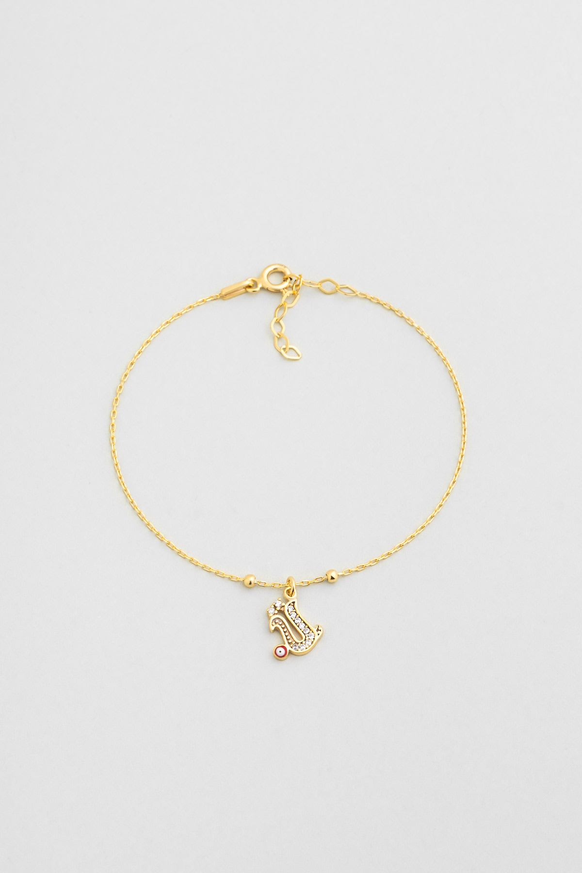 Ü Harfi 18 Ayar Sarı Altın Kaplama 19 Cm Gümüş Nazar Bileklik