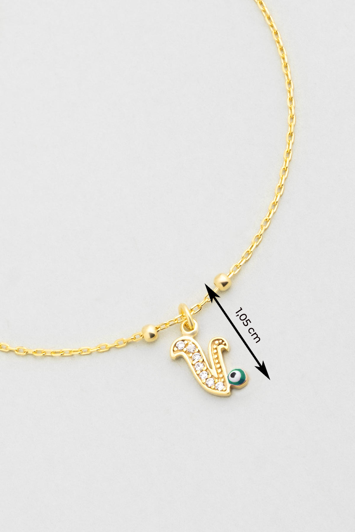 V Harfi 18 Ayar Sarı Altın Kaplama 19 Cm Gümüş Nazar Bileklik