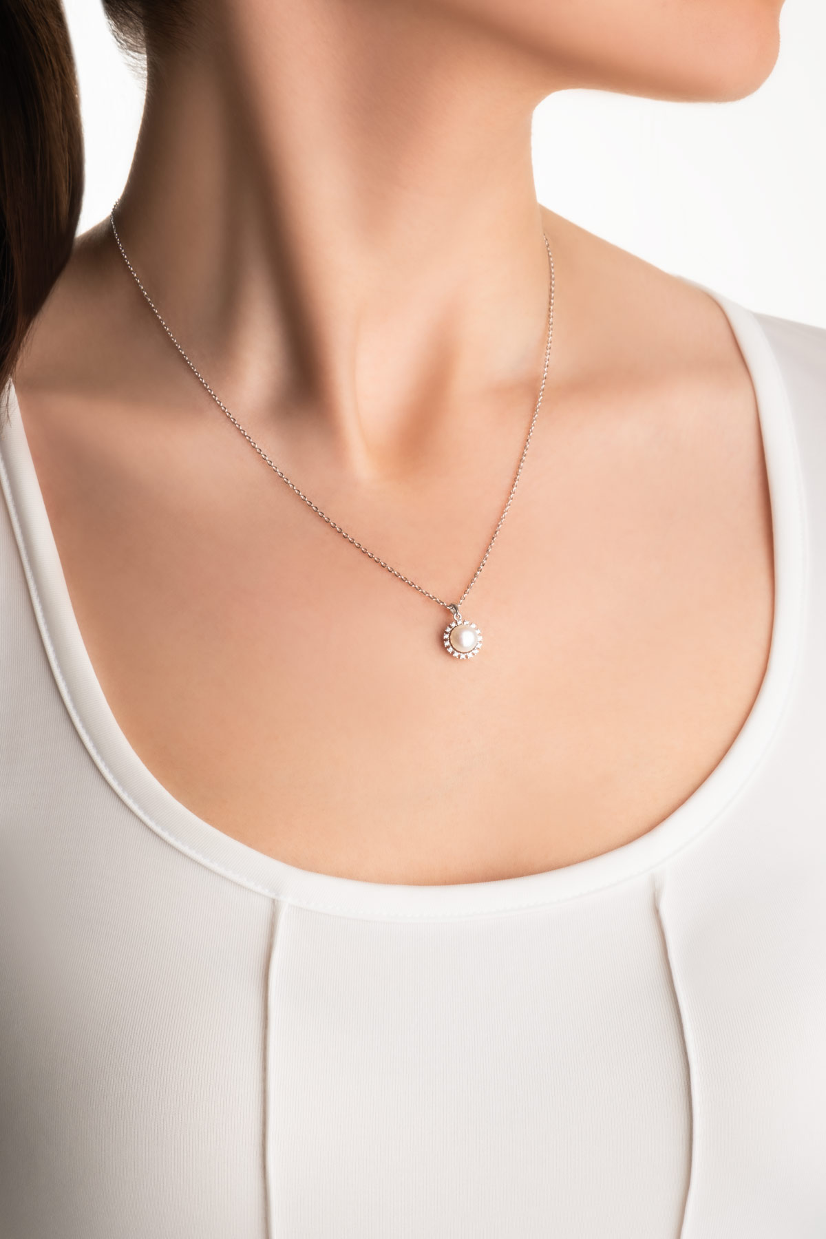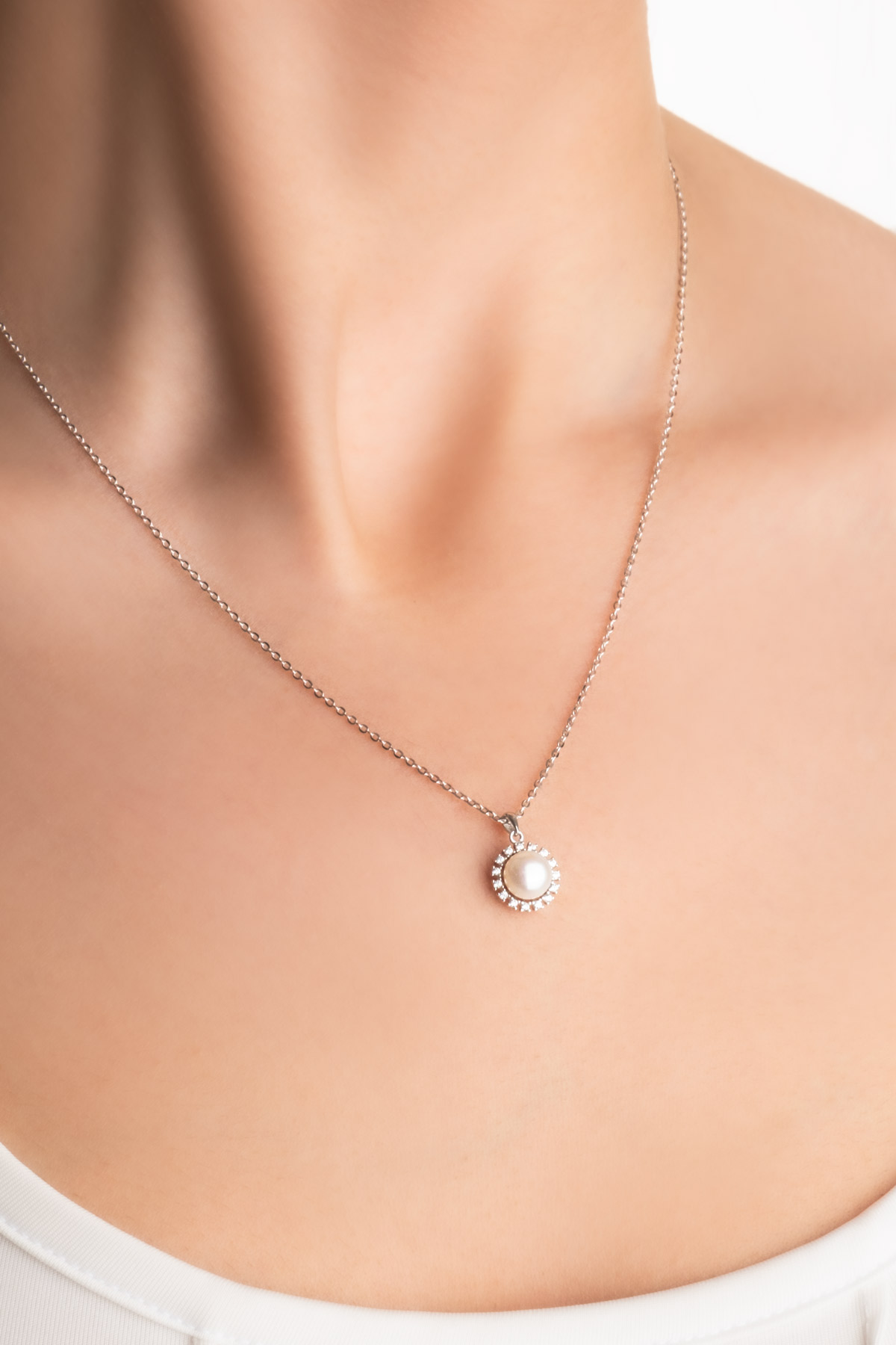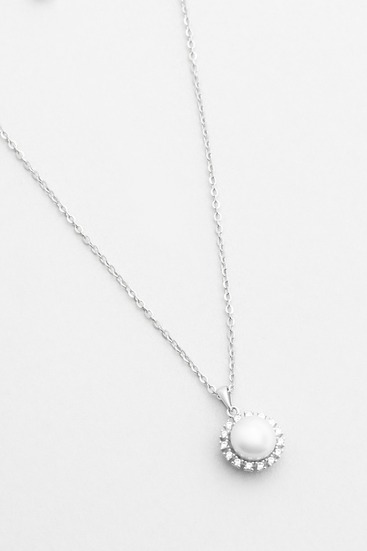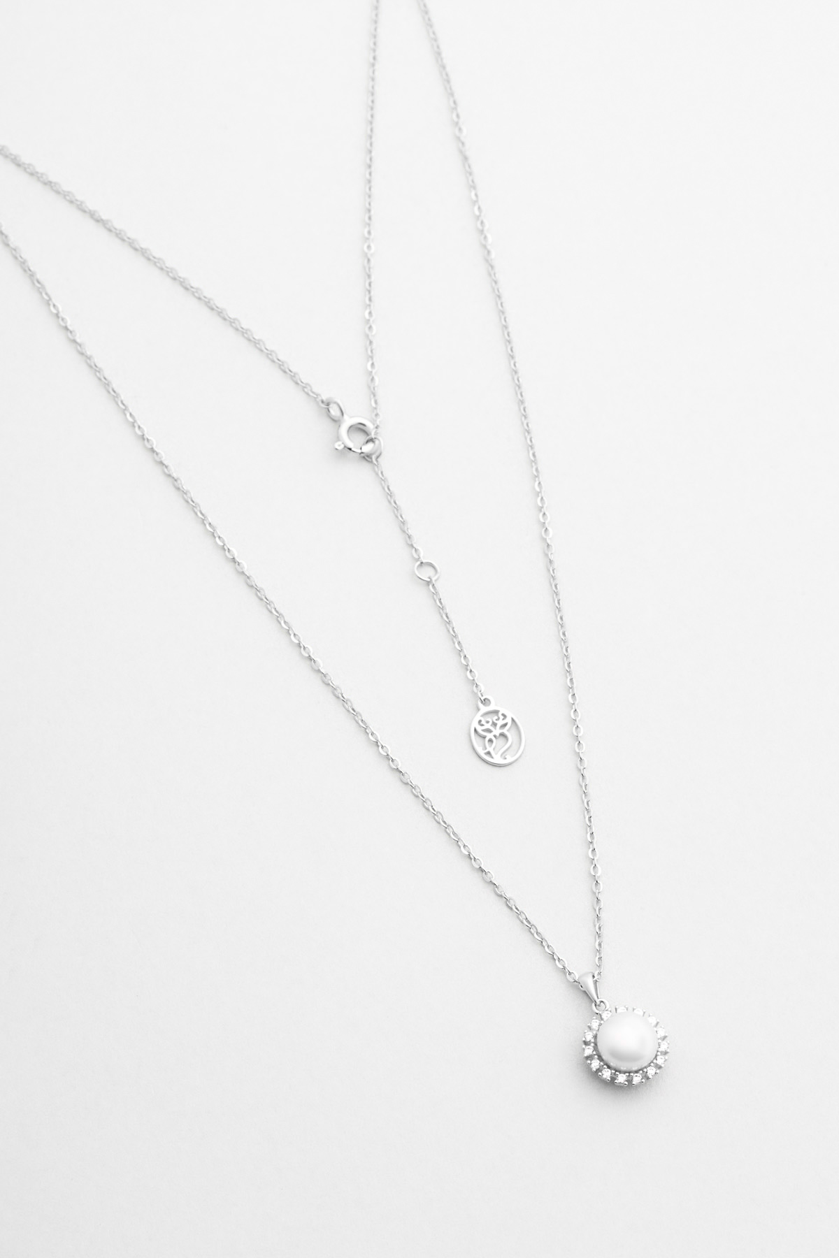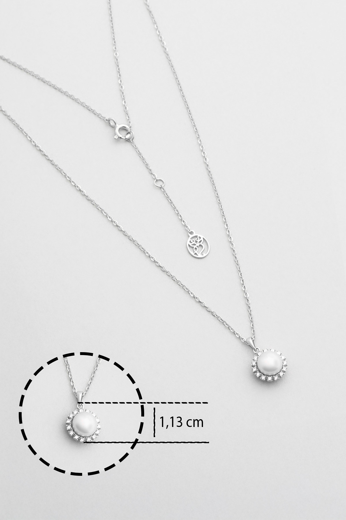 Vintage İnci 18 Ayar Beyaz Altın Kaplama 45 Cm Gümüş Minimal Kolye