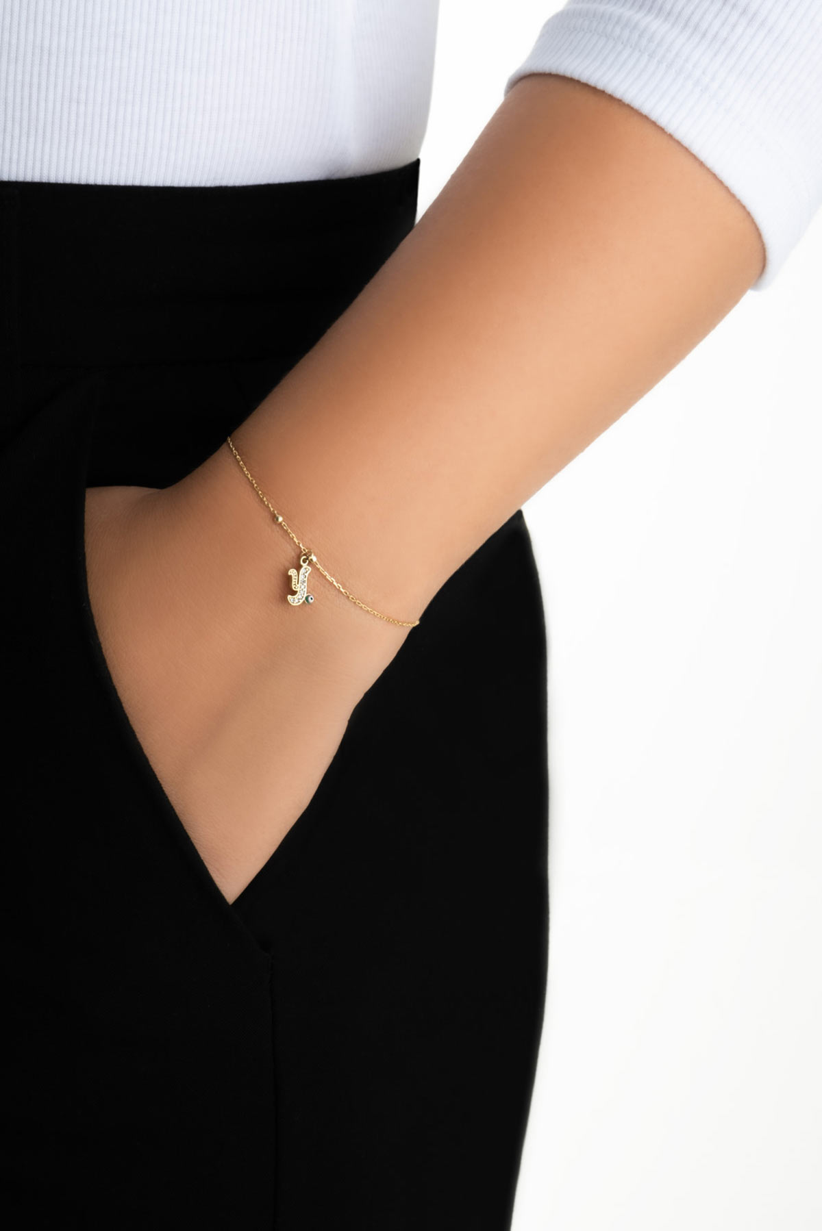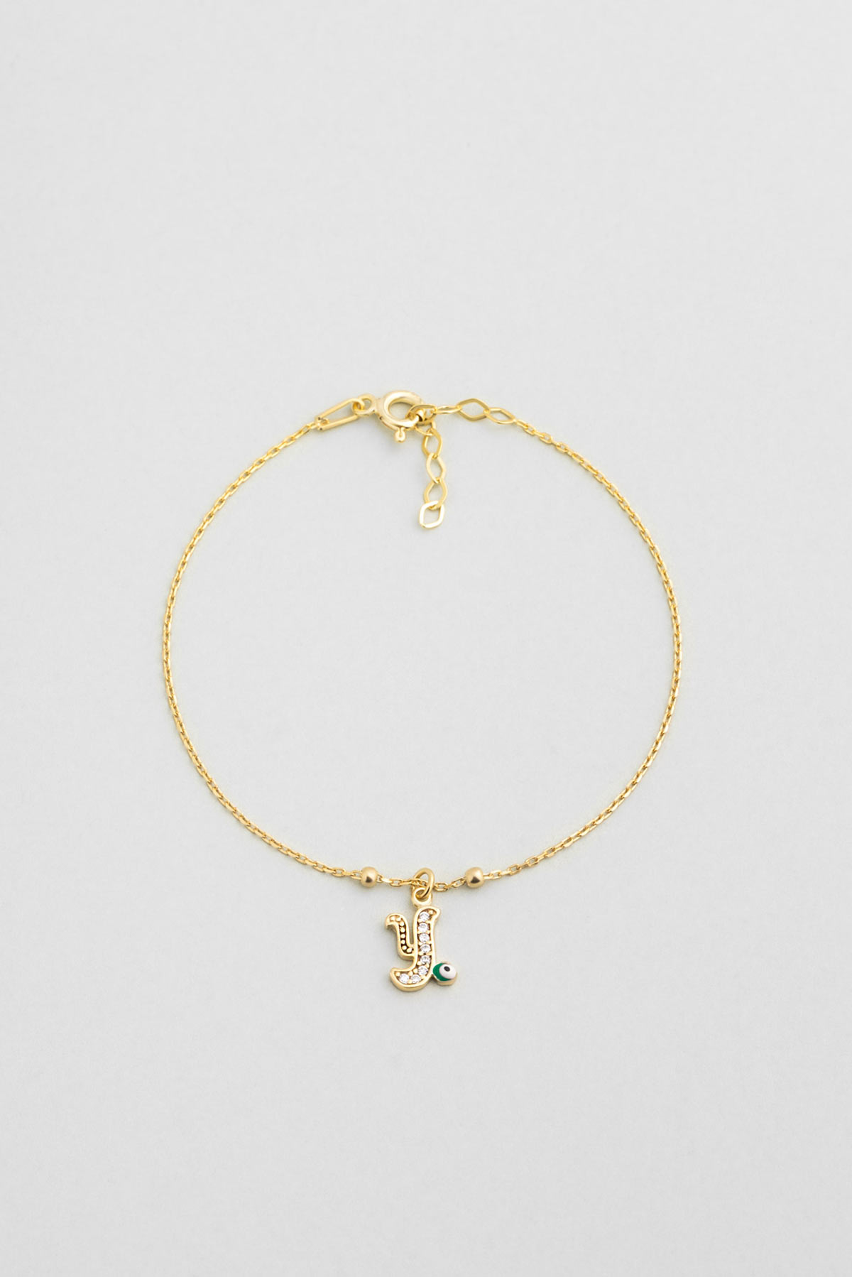 Y Harfi 18 Ayar Sarı Altın Kaplama 19 Cm Gümüş Nazar Bileklik