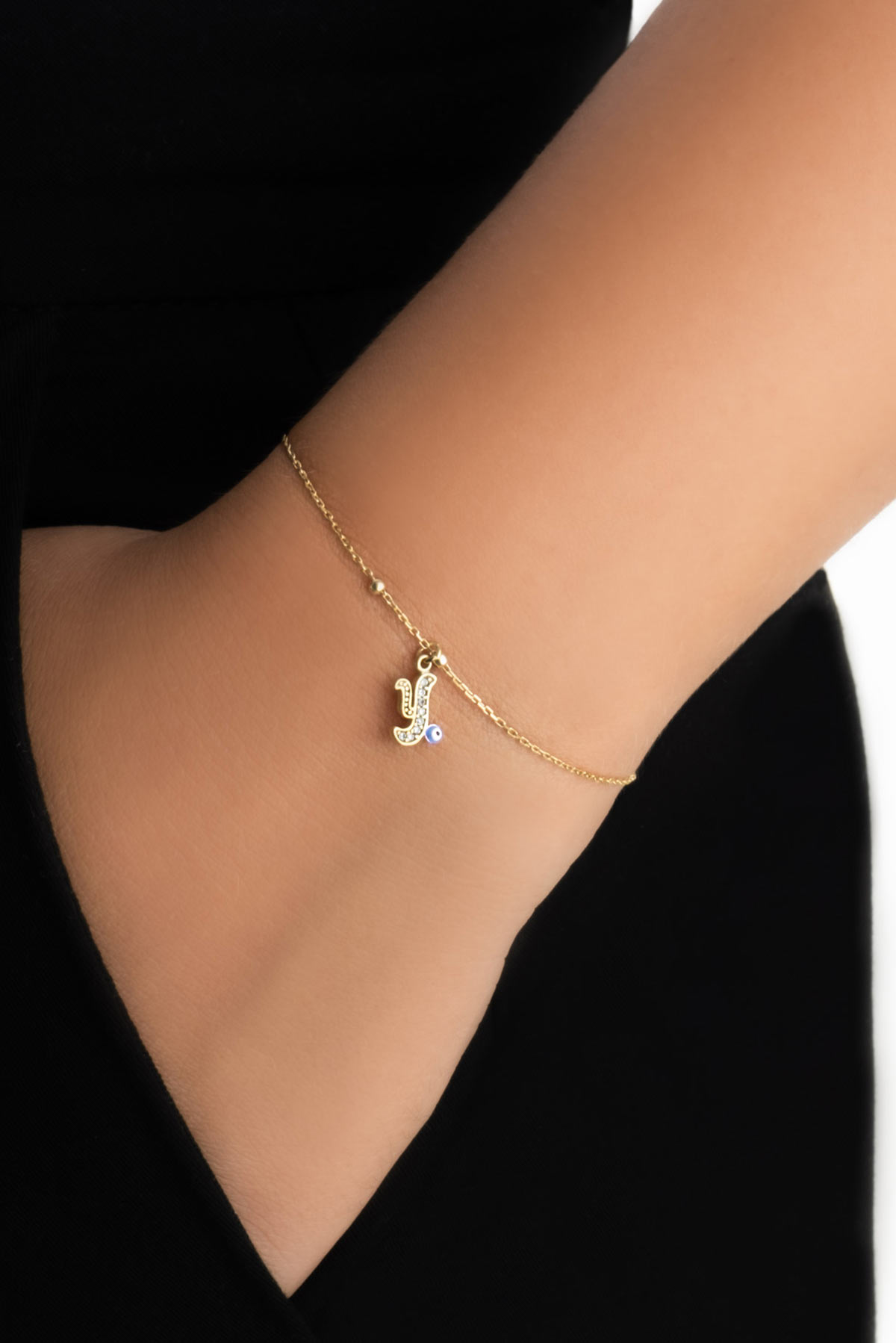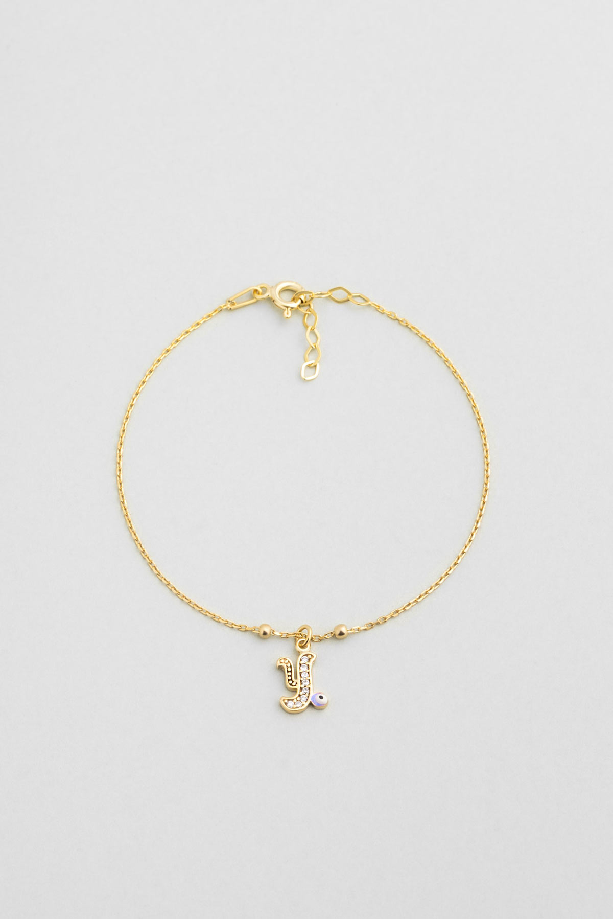 Y Harfi 18 Ayar Sarı Altın Kaplama 19 Cm Gümüş Nazar Bileklik