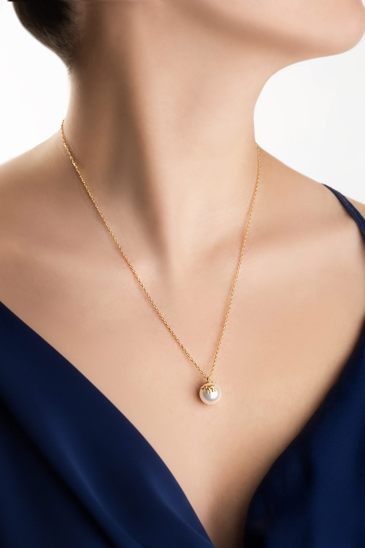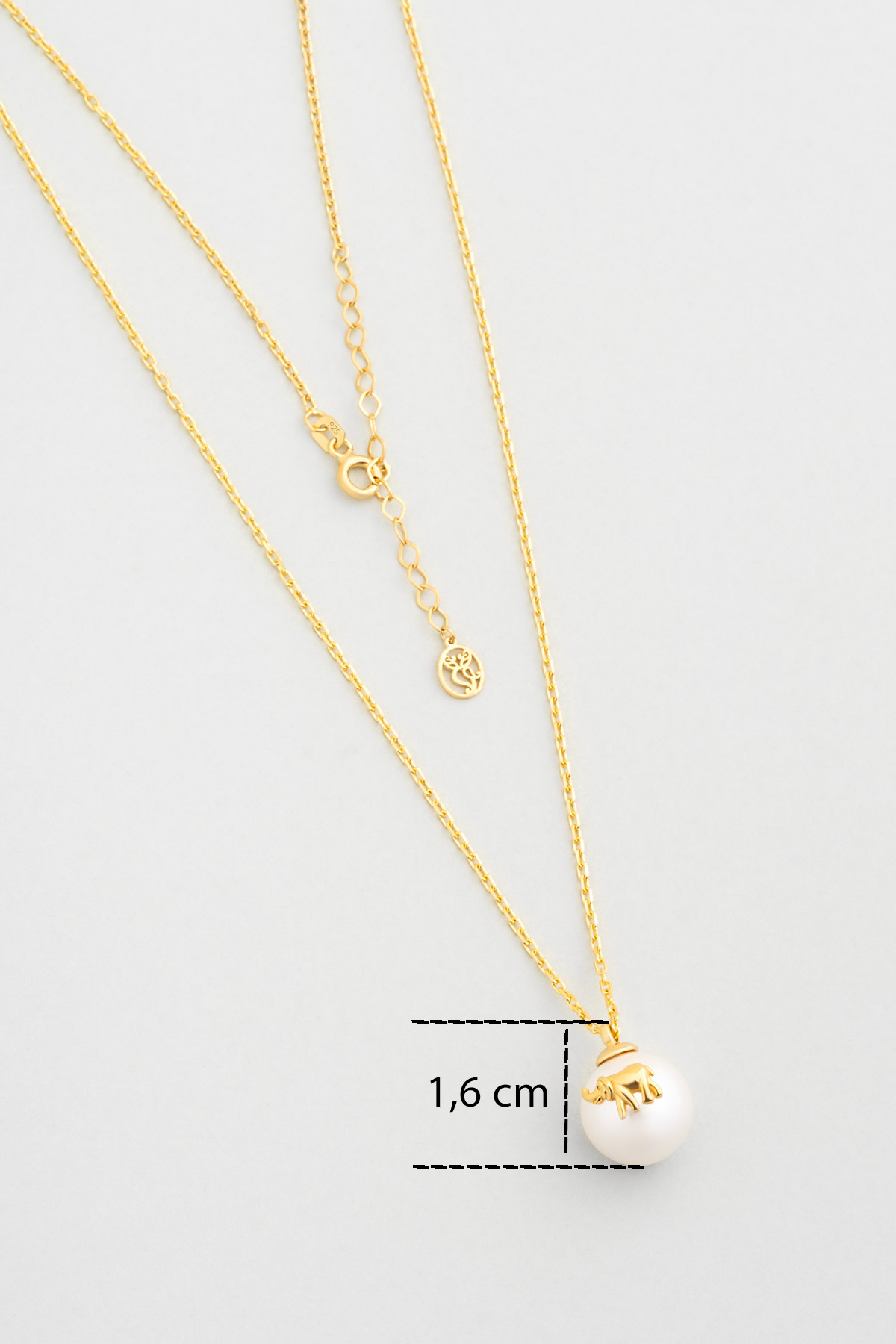 Yeni Yıl Bereket 18 Ayar Sarı Altın Kaplama 55 Cm Gümüş İnci Kolye