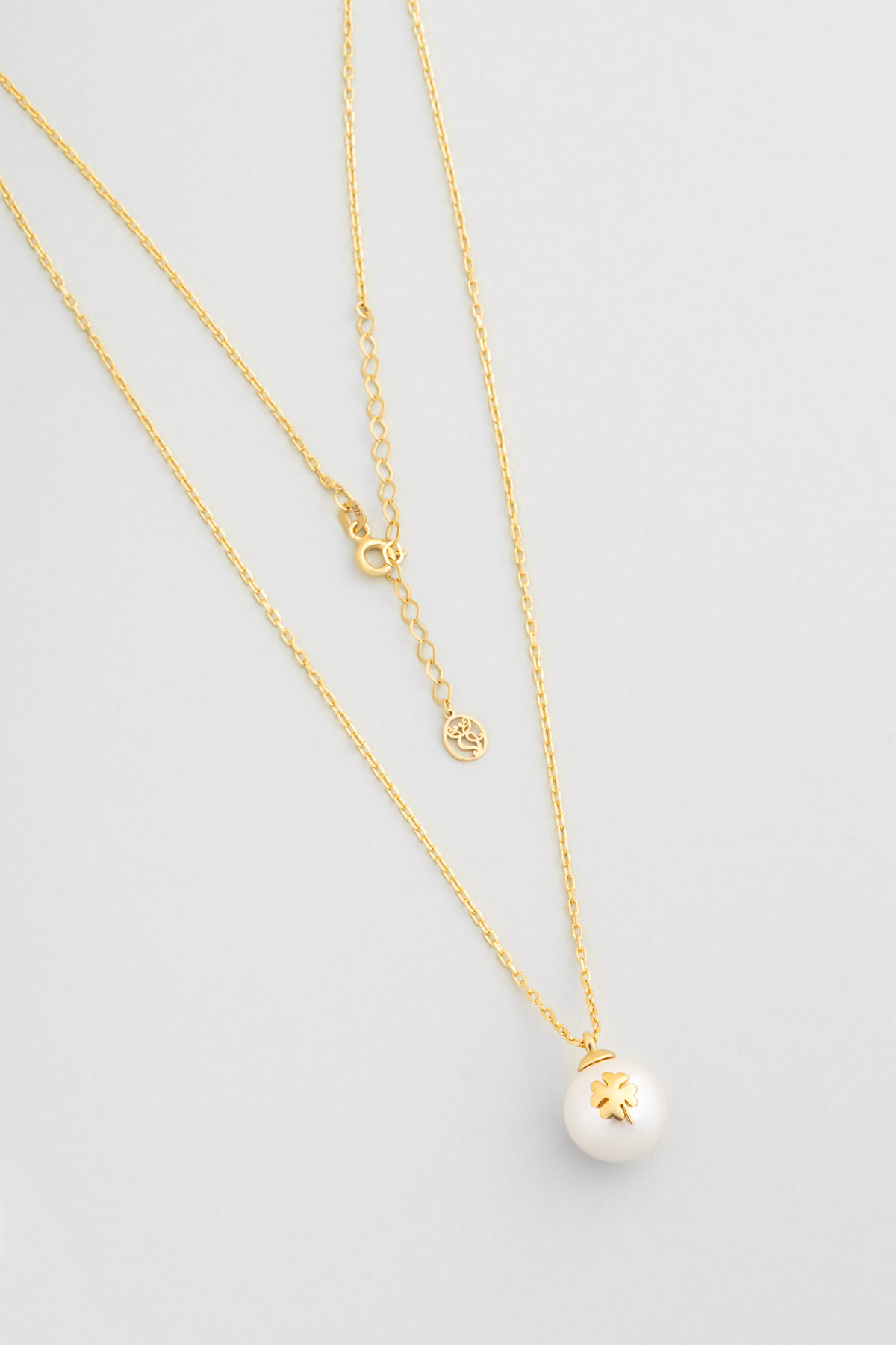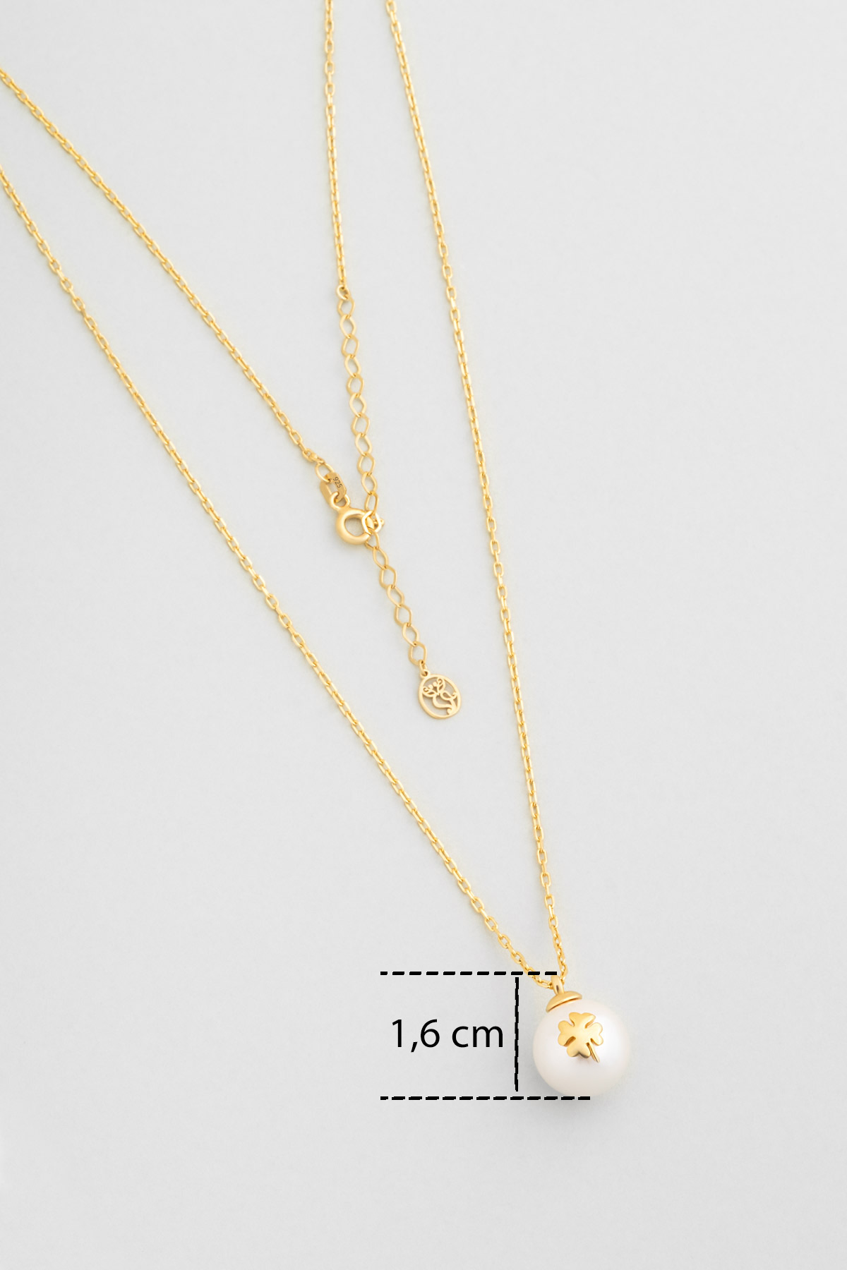 Yeni Yıl Dört Yapraklı Yonca 18 Ayar Sarı Altın Kaplama 55 Cm Gümüş Şans Kolye