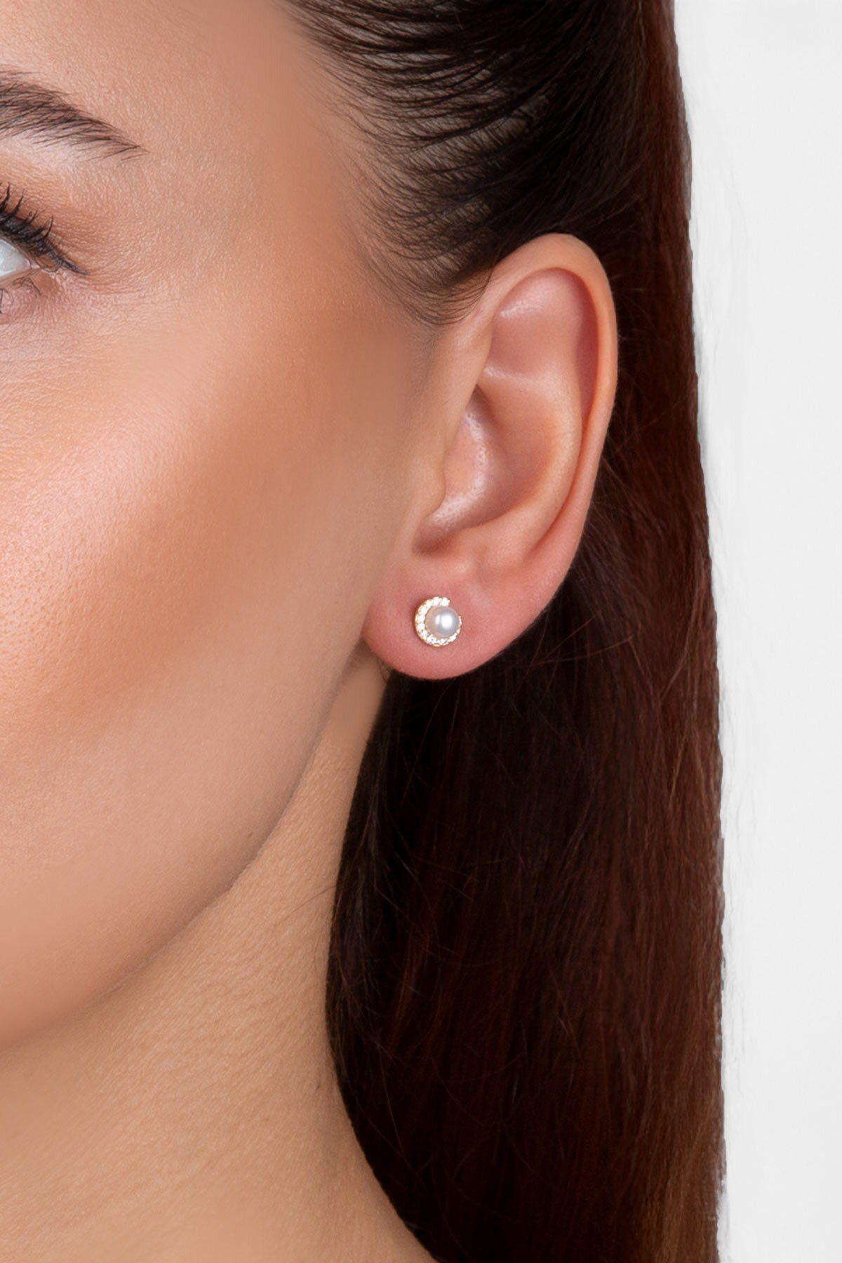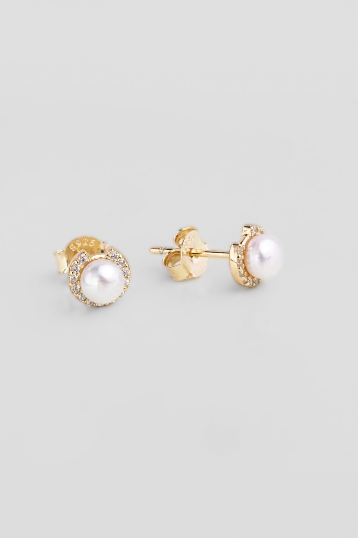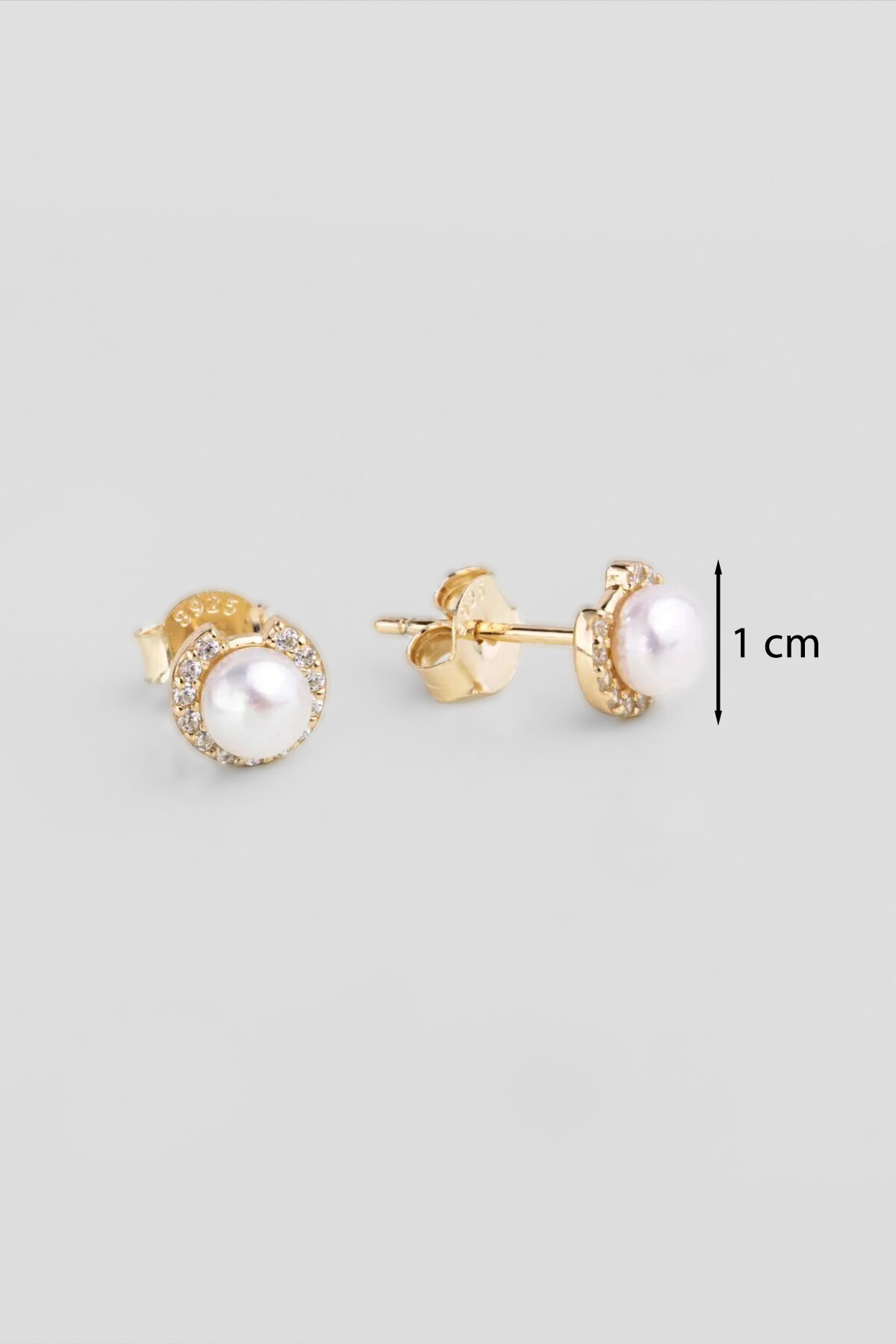 Zirkon Taş Detaylı 18 Ayar Sarı Altın Kaplama Gümüş İnci Küpe