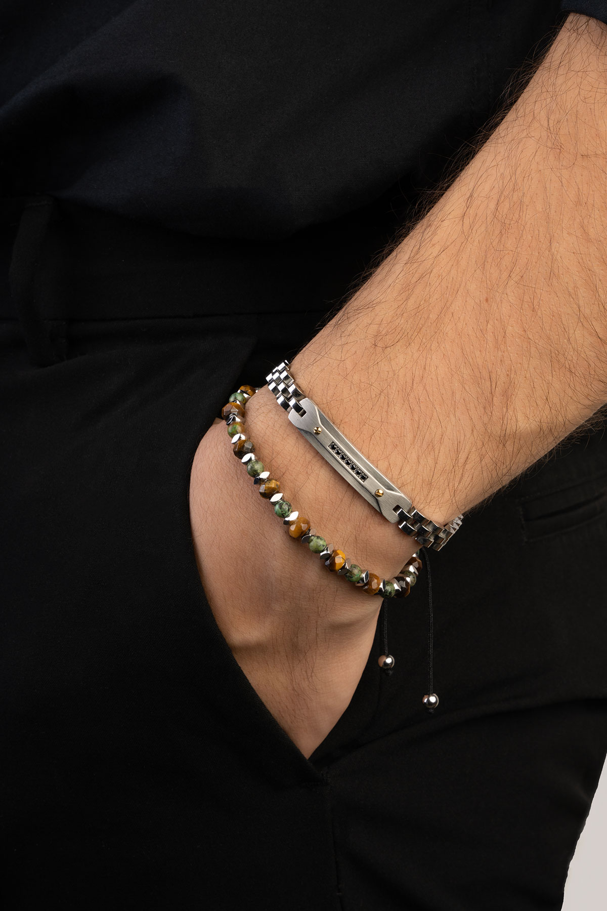 Zirkon Taş Detaylı Çelik Erkek Bileklik