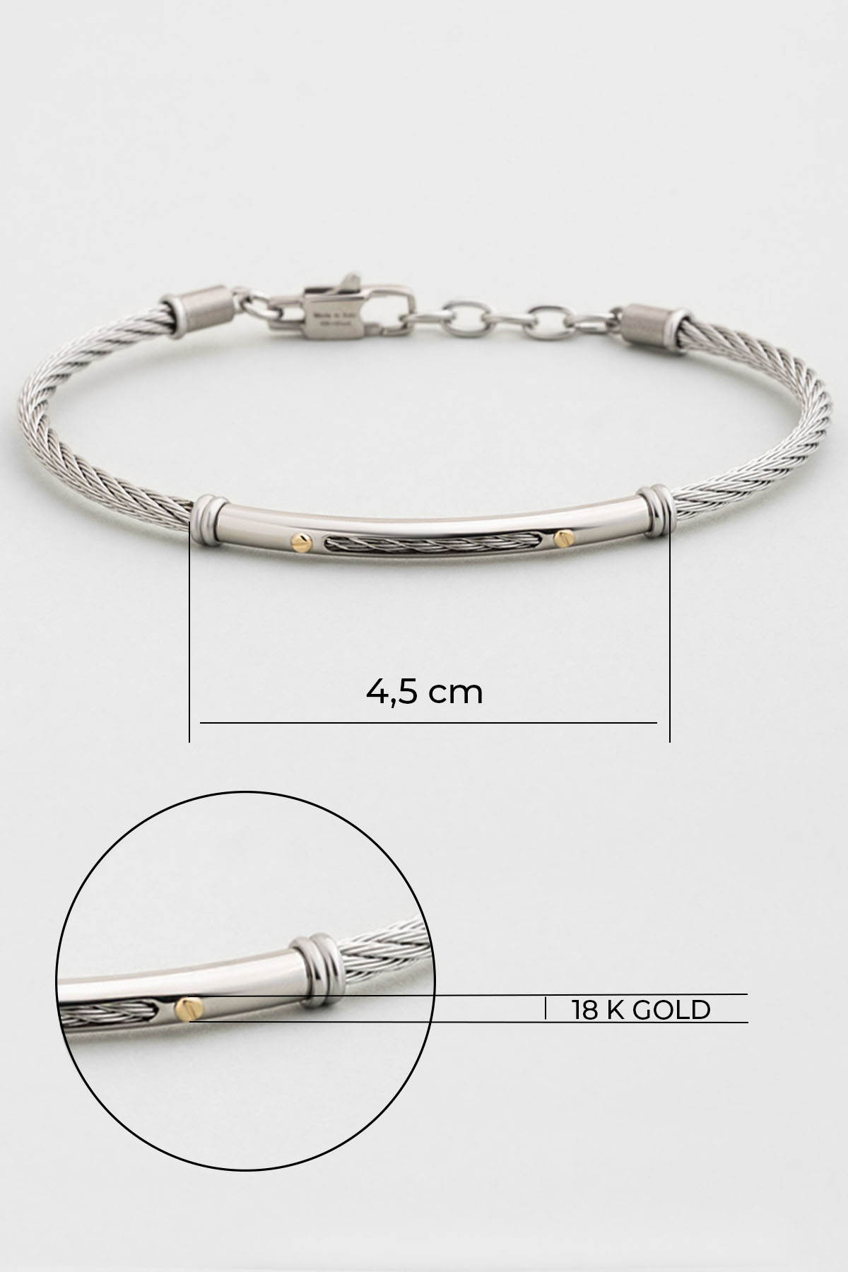 Apollo İtalyan 18 Ayar Sarı Altın Detaylı Çelik Erkek Bileklik