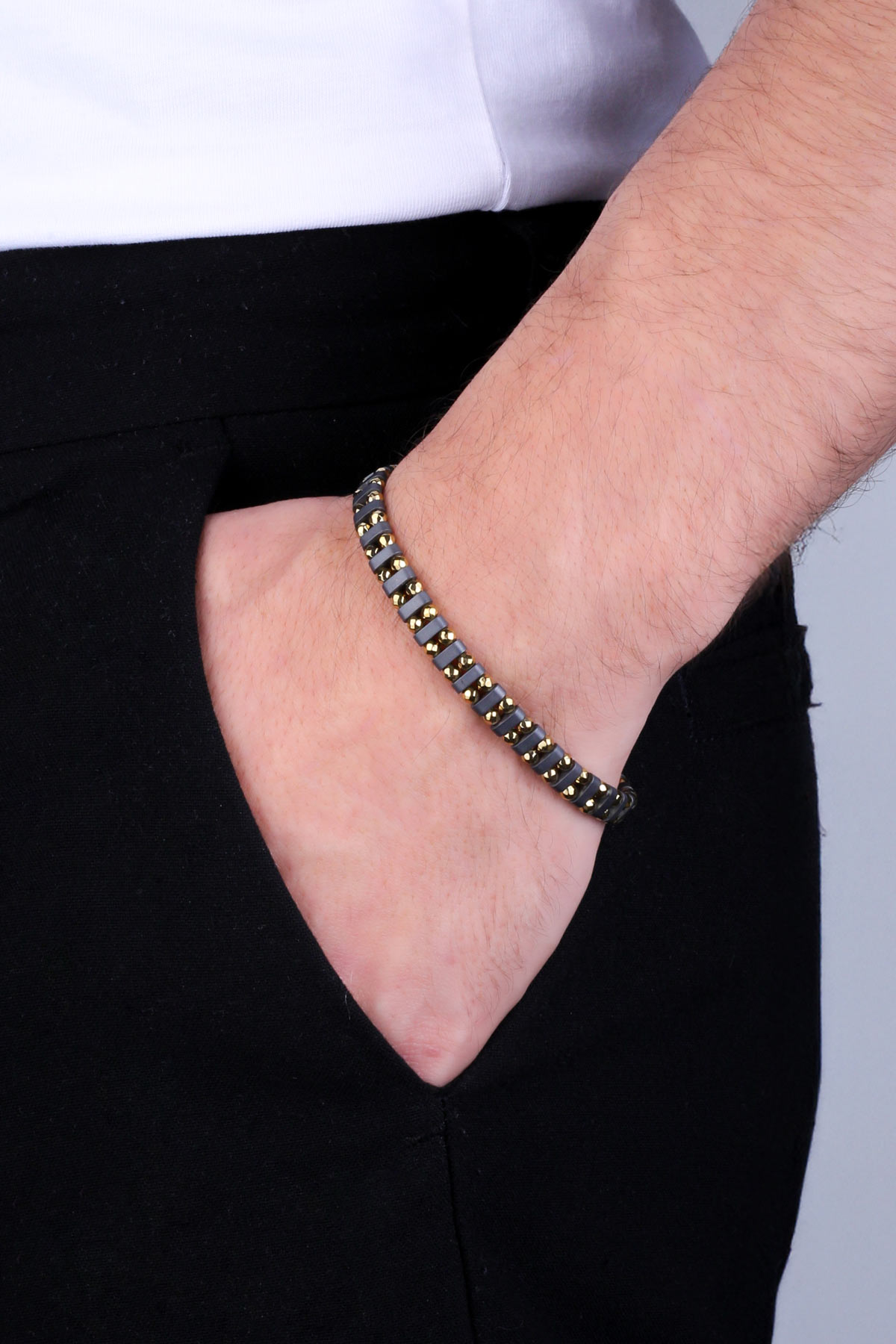 Ares Hematit Taşlı Oksit Kaplama 21 Cm Gümüş Erkek Bileklik