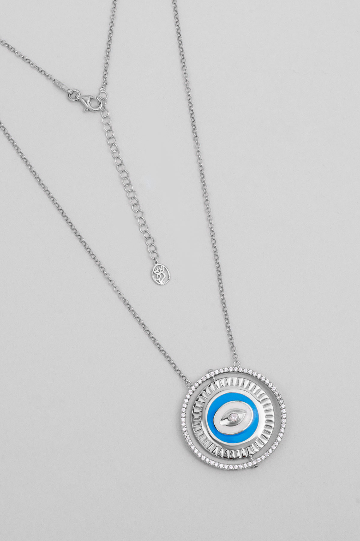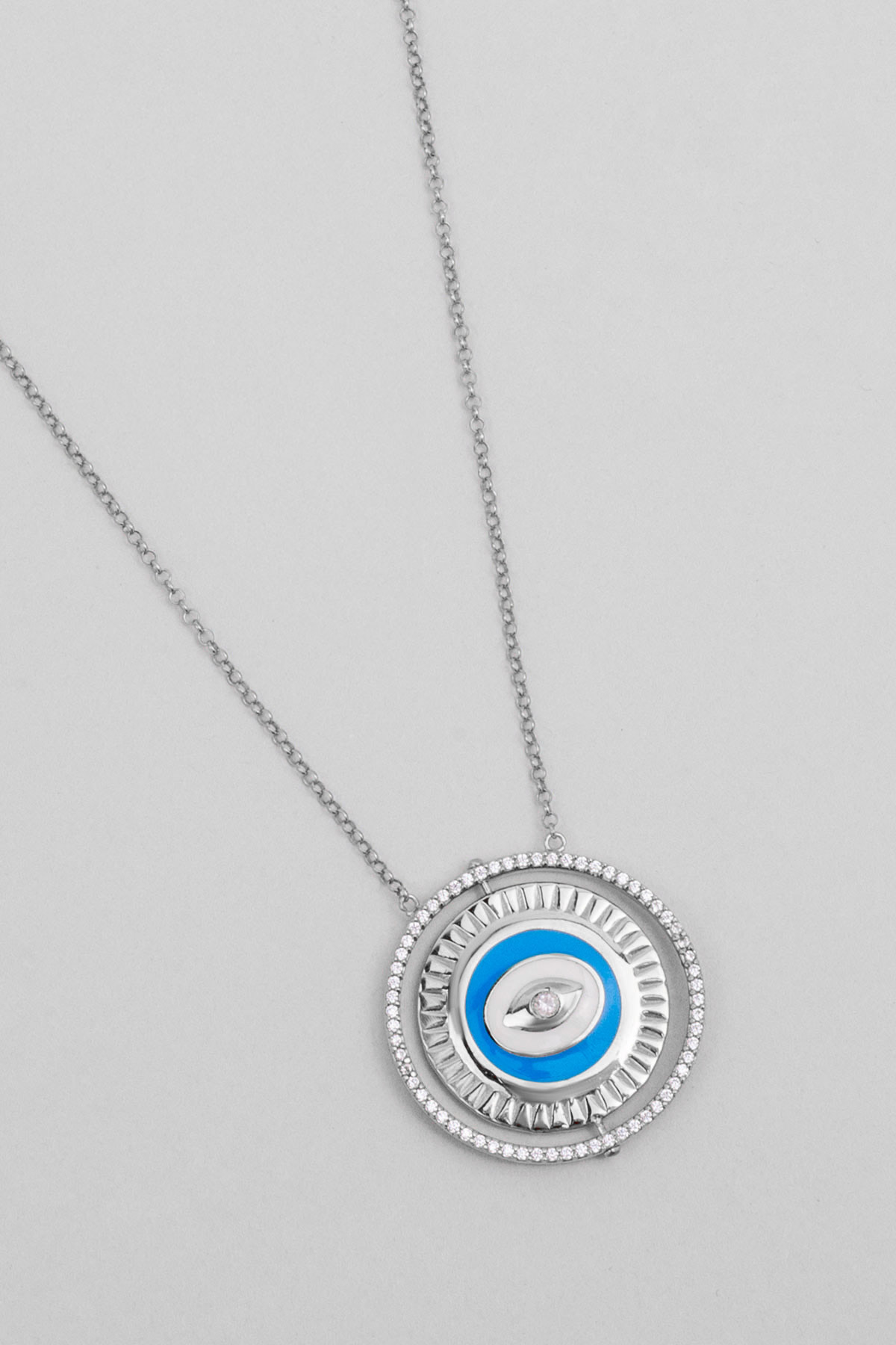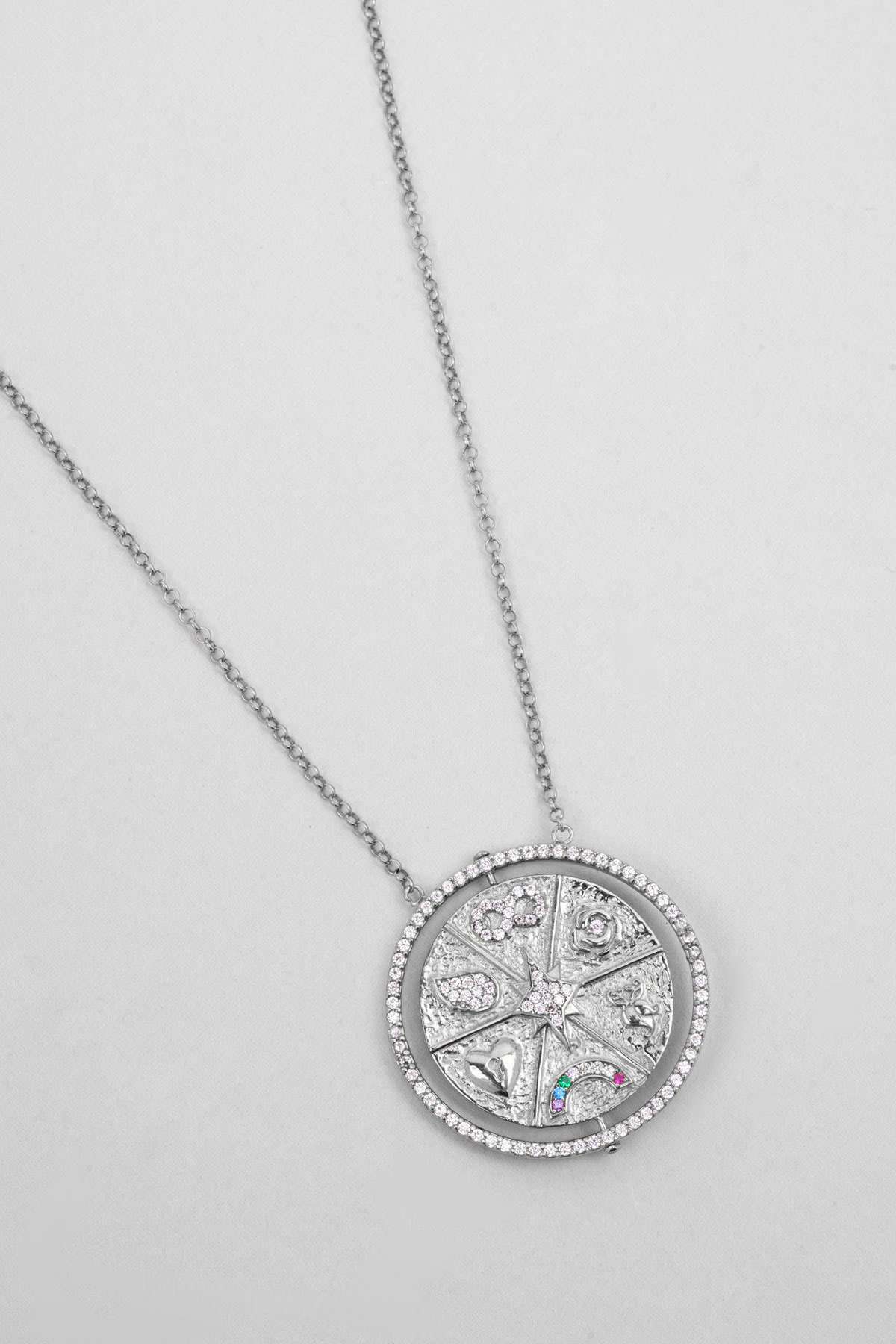 Bereket 18 Ayar Beyaz Altın Kaplama 45 Cm Çift Taraflı Gümüş Madalyon Kolye