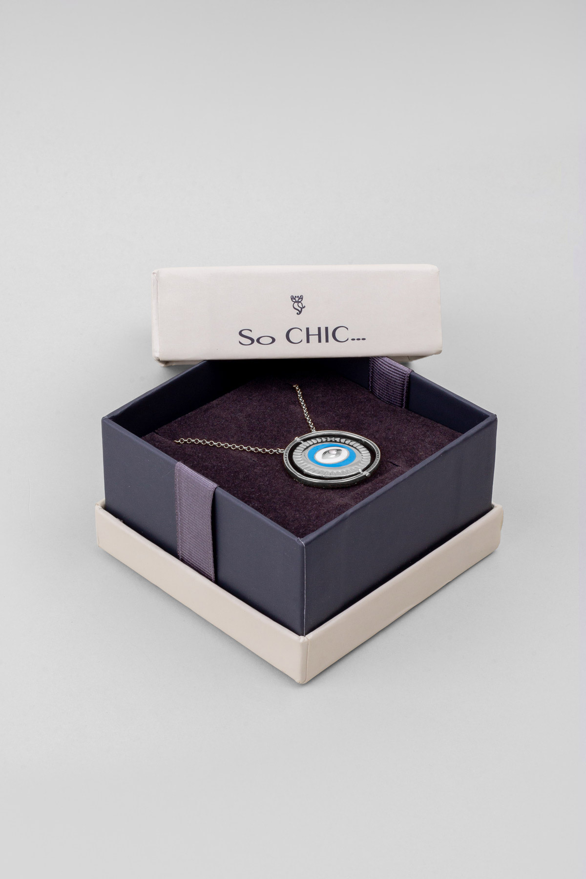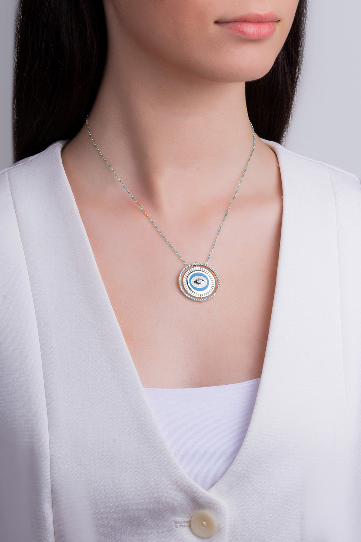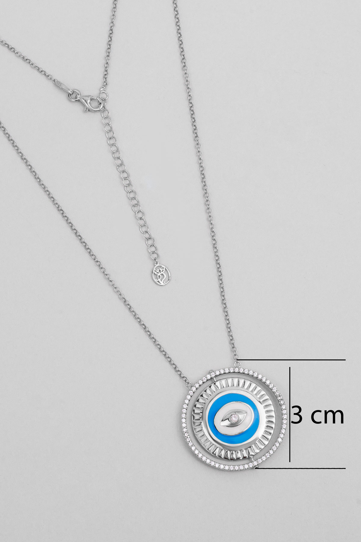 Bereket 18 Ayar Beyaz Altın Kaplama 45 Cm Çift Taraflı Gümüş Madalyon Kolye