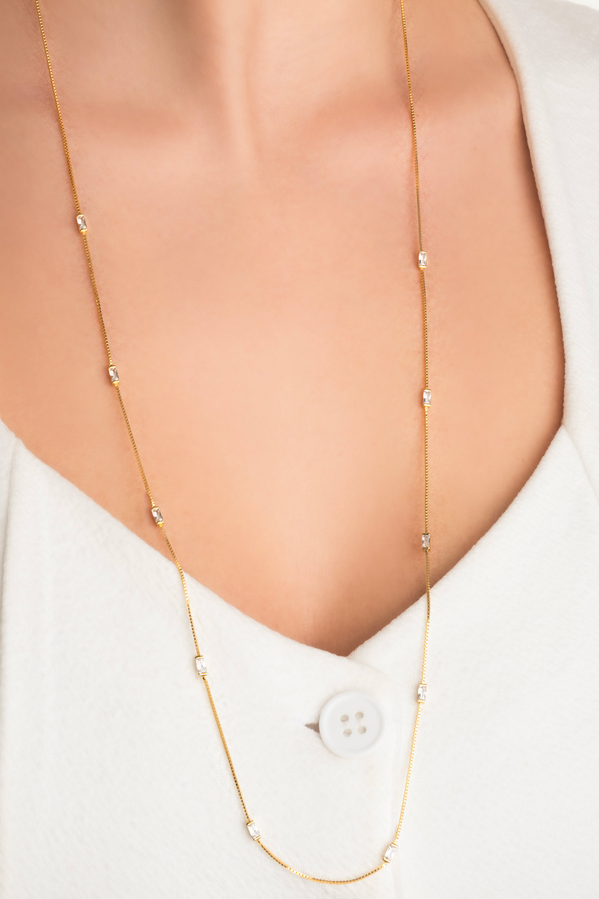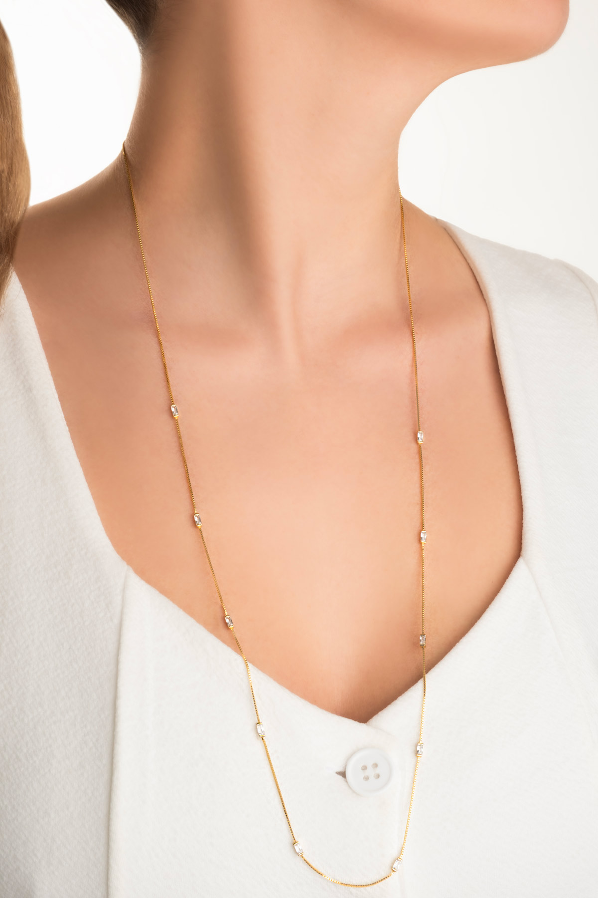 Beyaz Taşlı Sarı Altın Kaplama