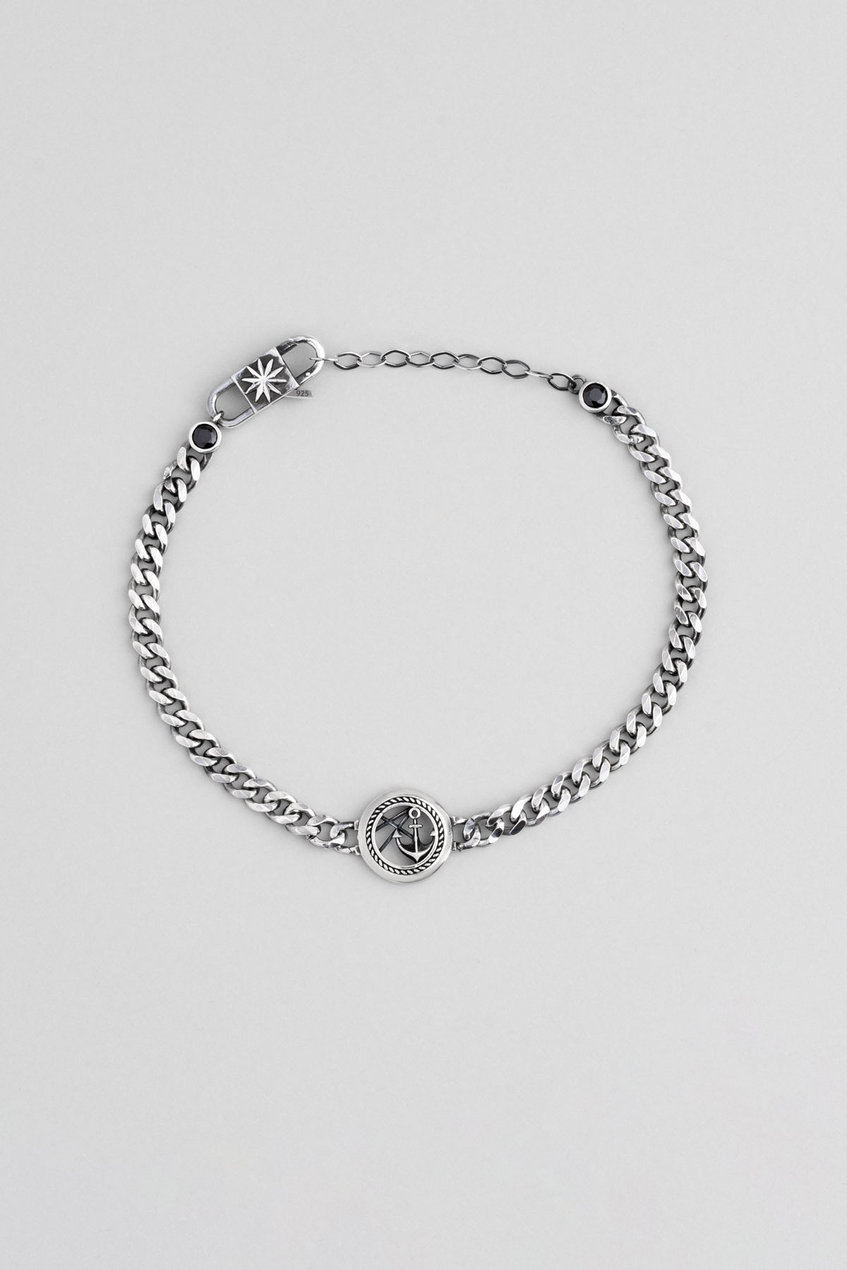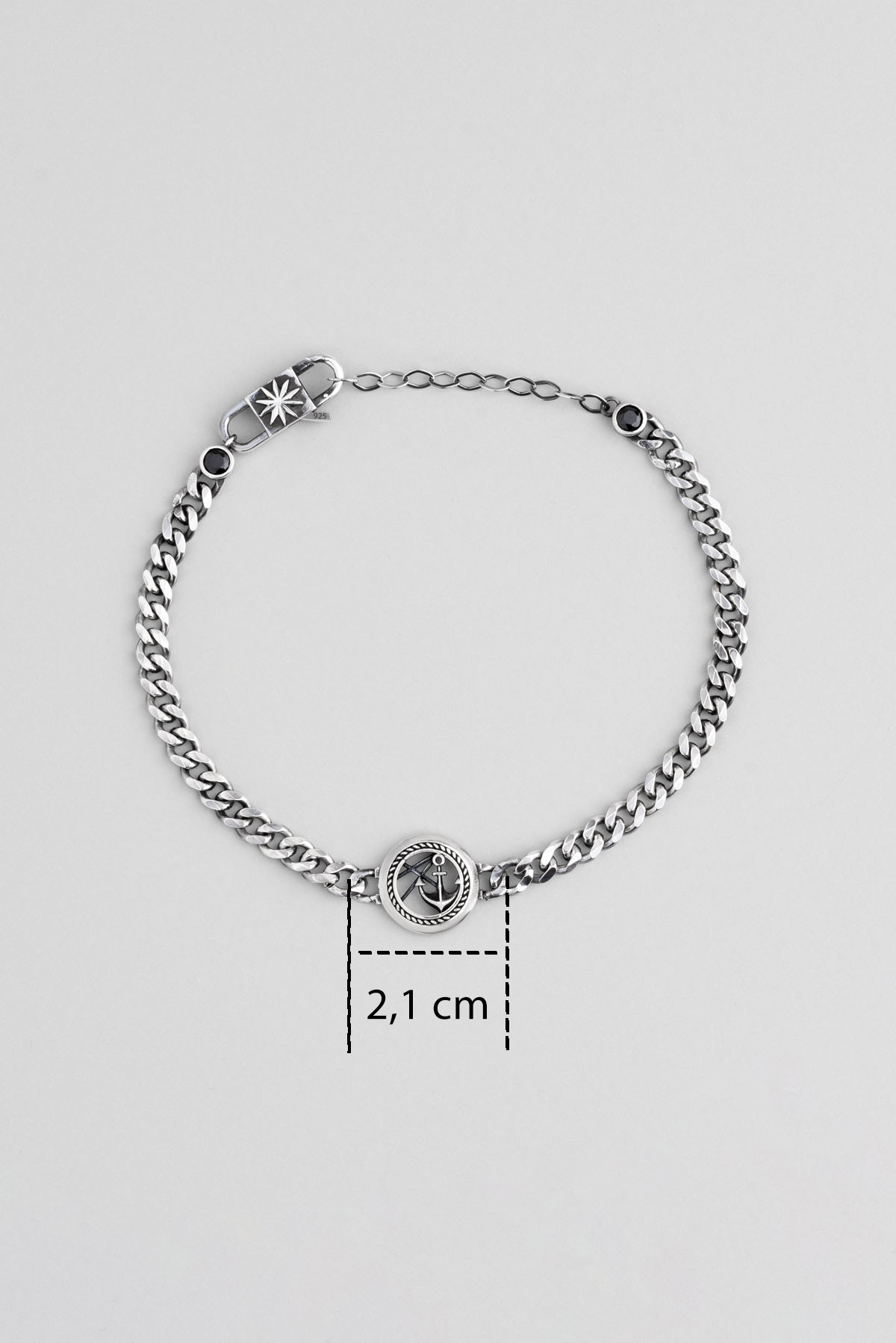 Çapa Figürlü Oksitli 21 Cm Gümüş Erkek Zincir Bileklik