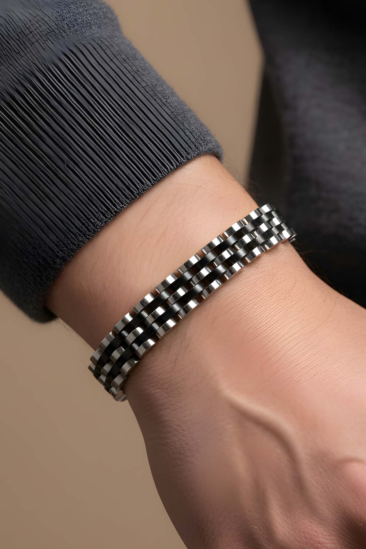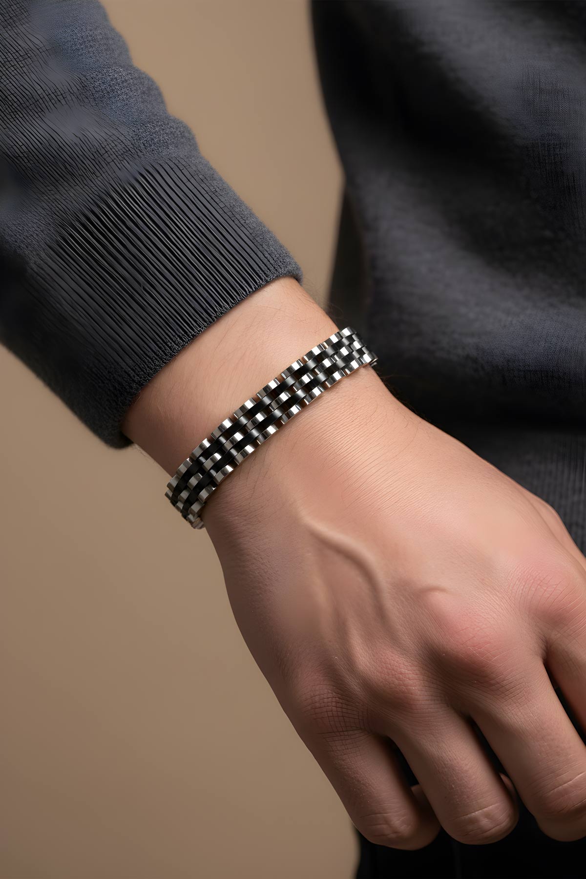 İki Renkli Erkek Çelik Zincir Bileklik