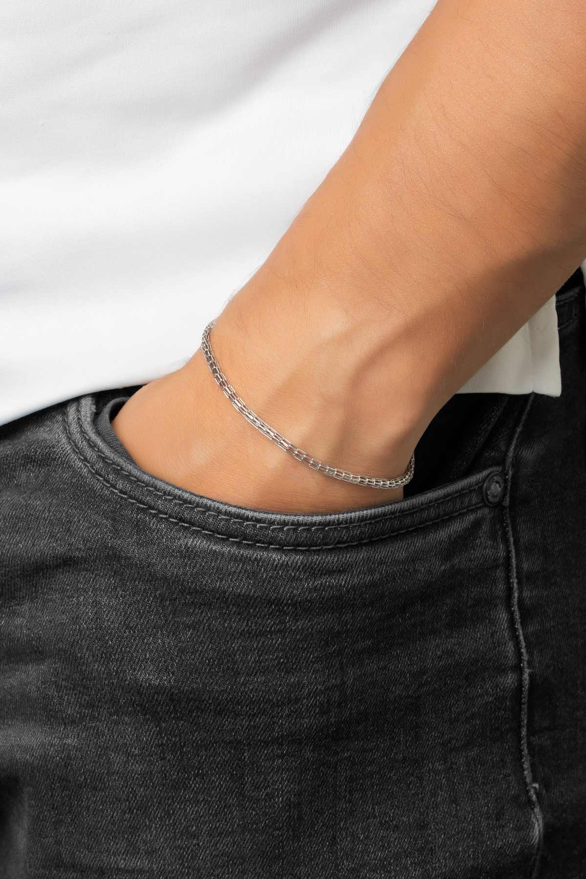 İtalyan 18 Ayar Beyaz Altın Kaplama Gümüş Unisex Bileklik