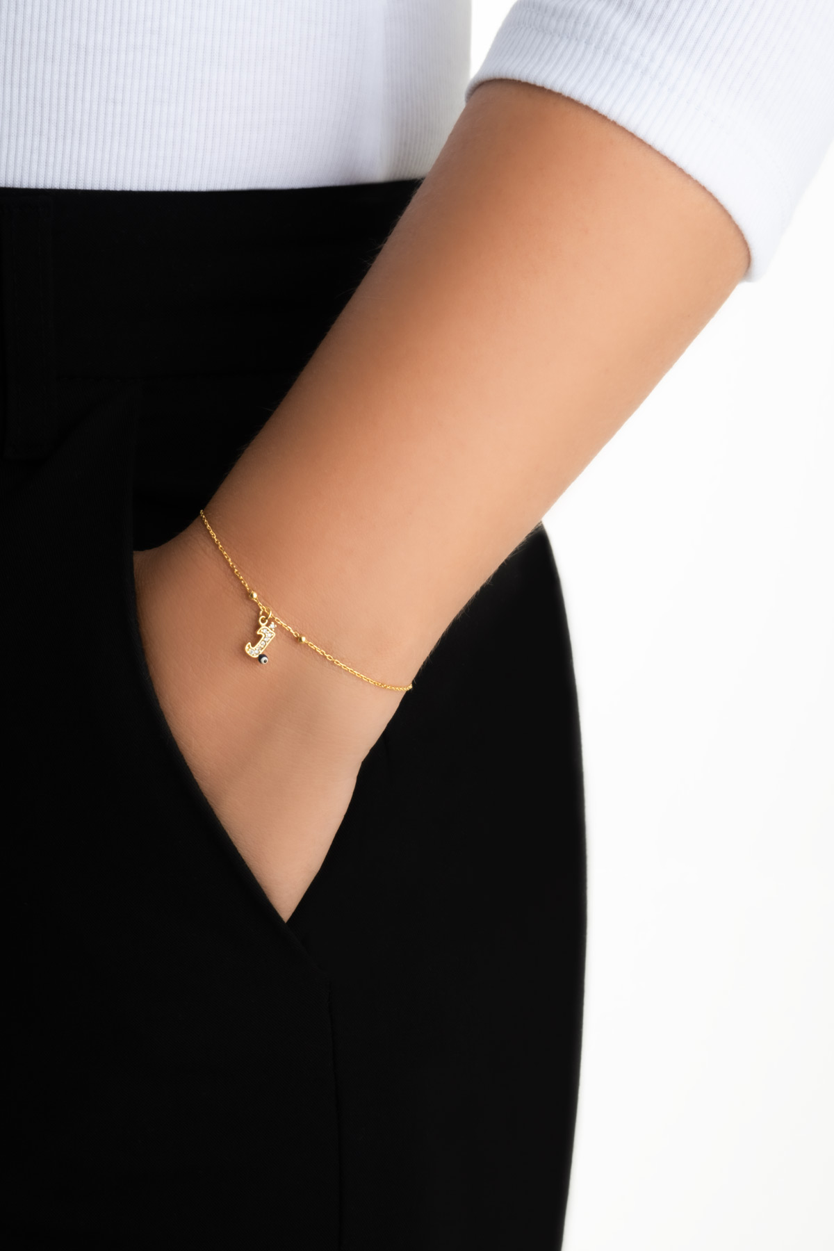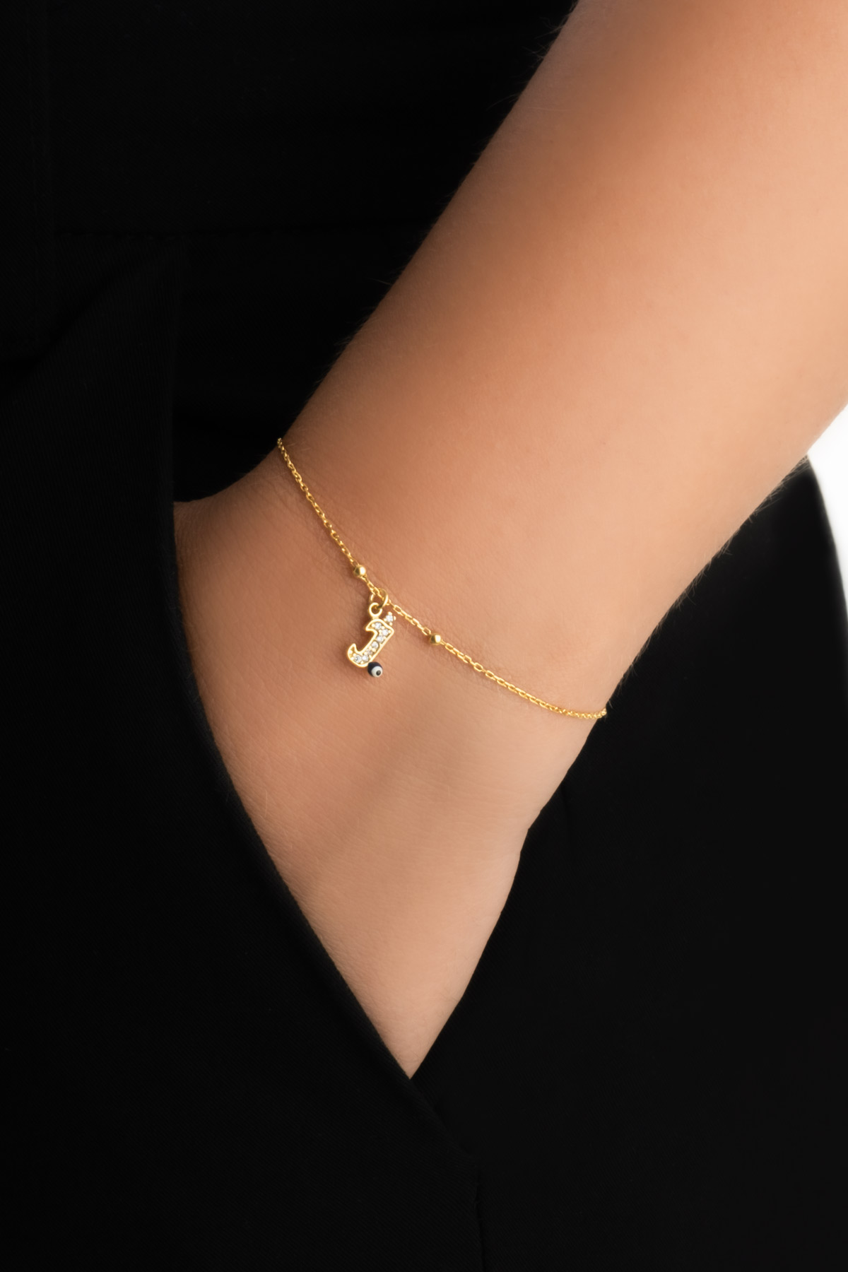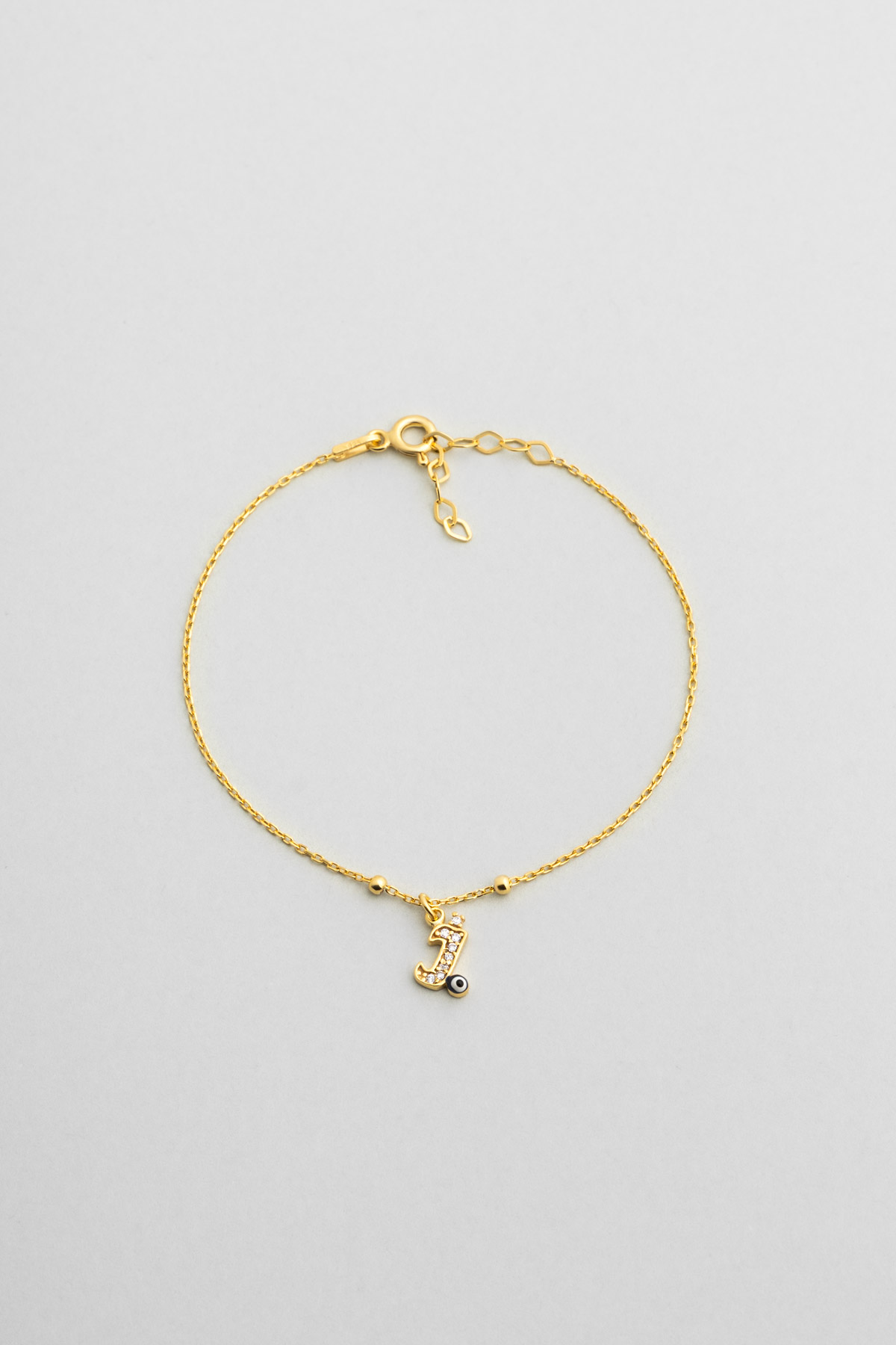 J Harfi 18 Ayar Sarı Altın Kaplama 19 Cm Gümüş Nazar Bileklik