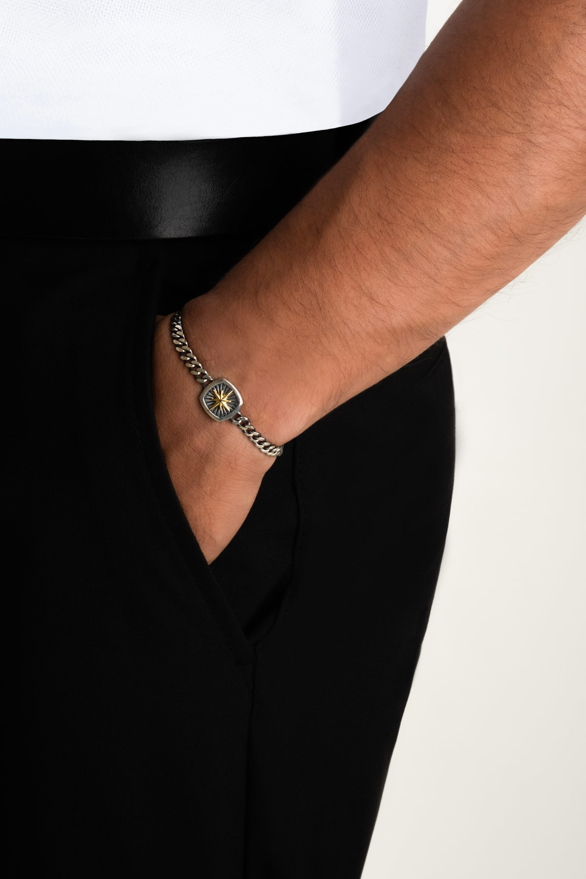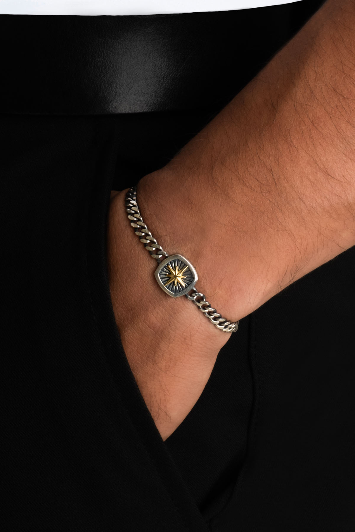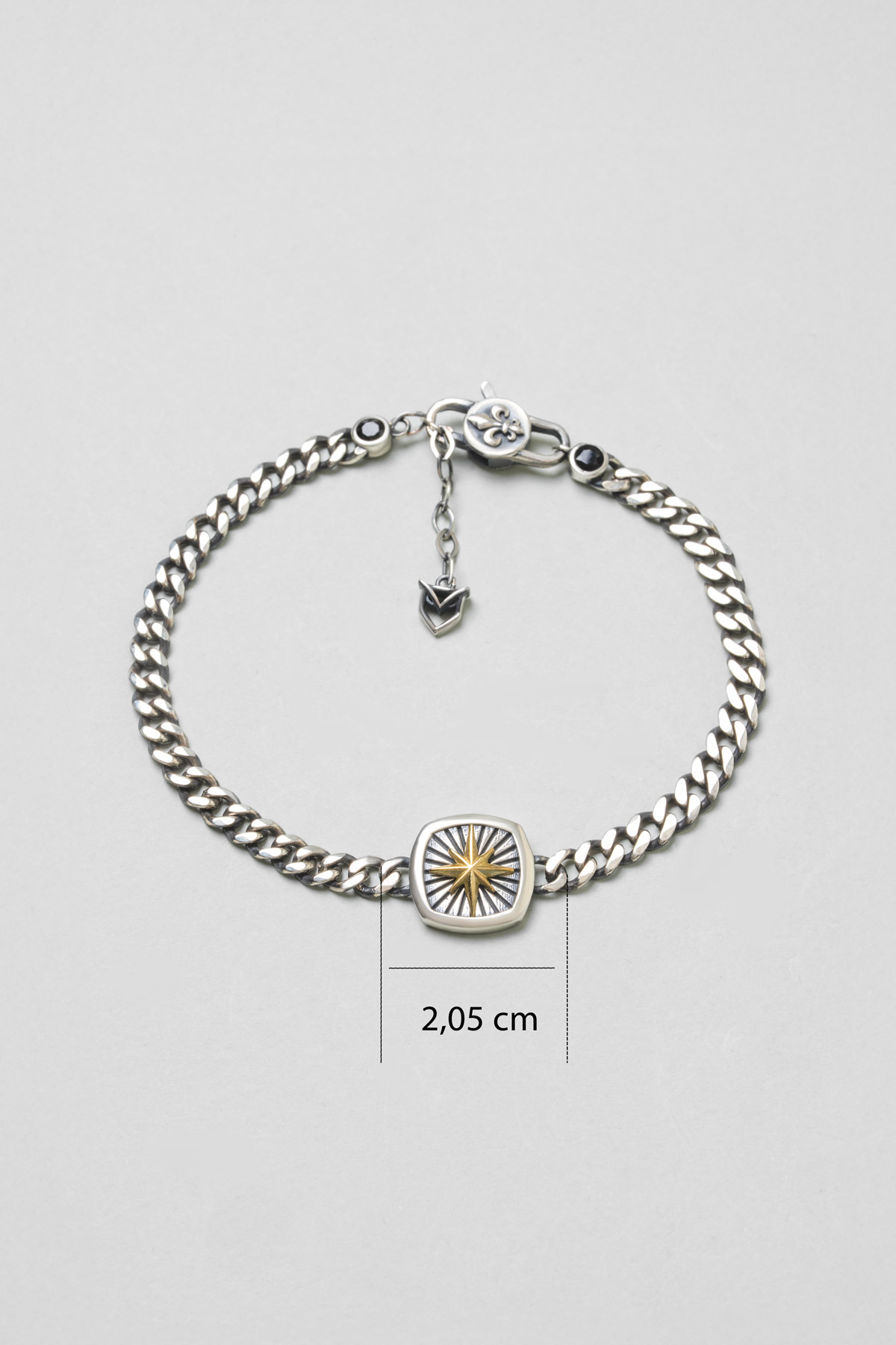 Kutup Yıldızı 18 Ayar Beyaz Altın Kaplama Gümüş Erkek Bileklik