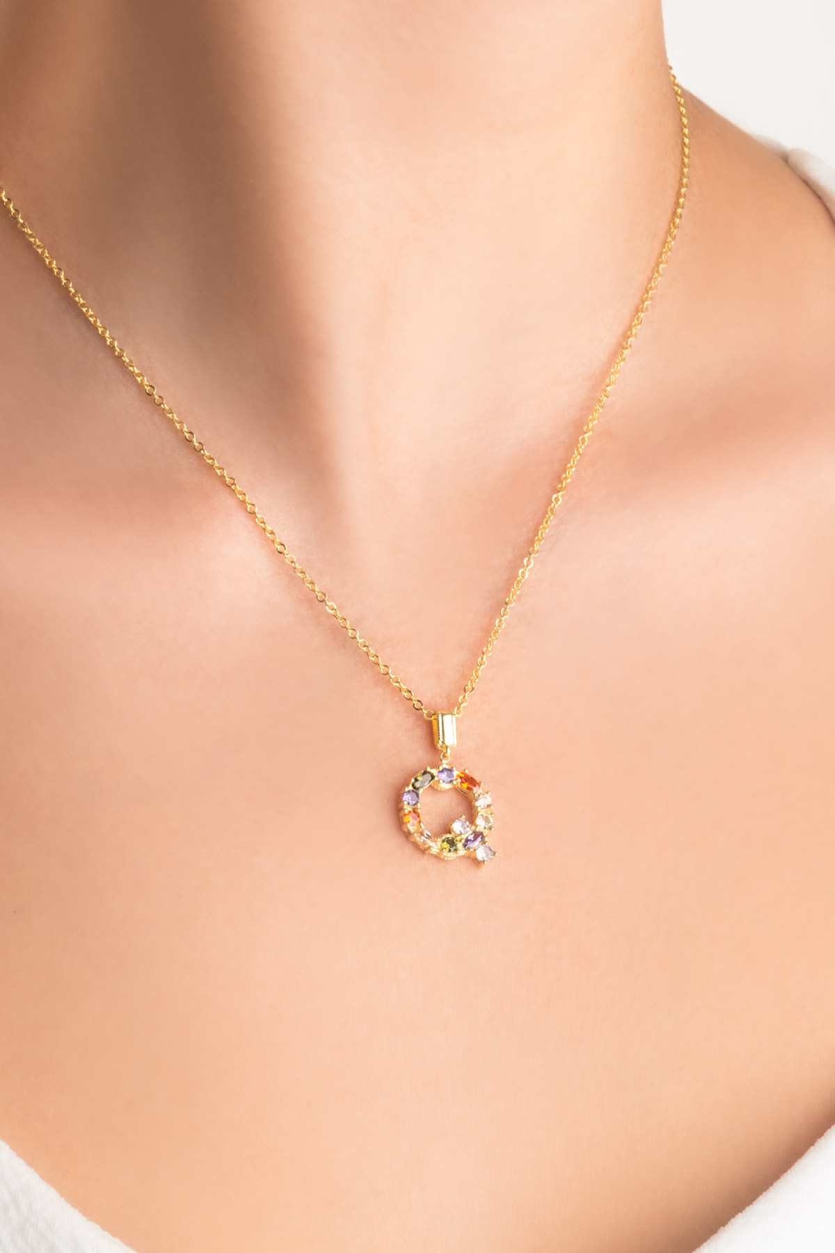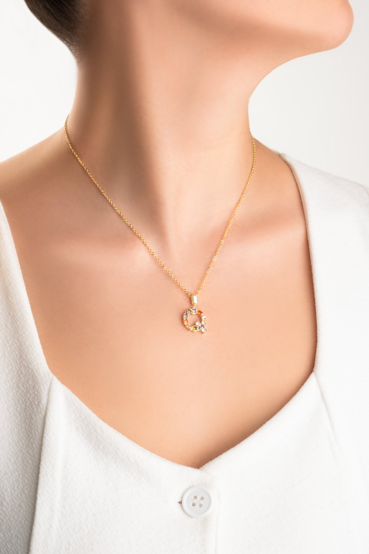 Mini Q Harfi Günışığı Renkli 18 Ayar Sarı Altın Kaplama Gümüş Kolye