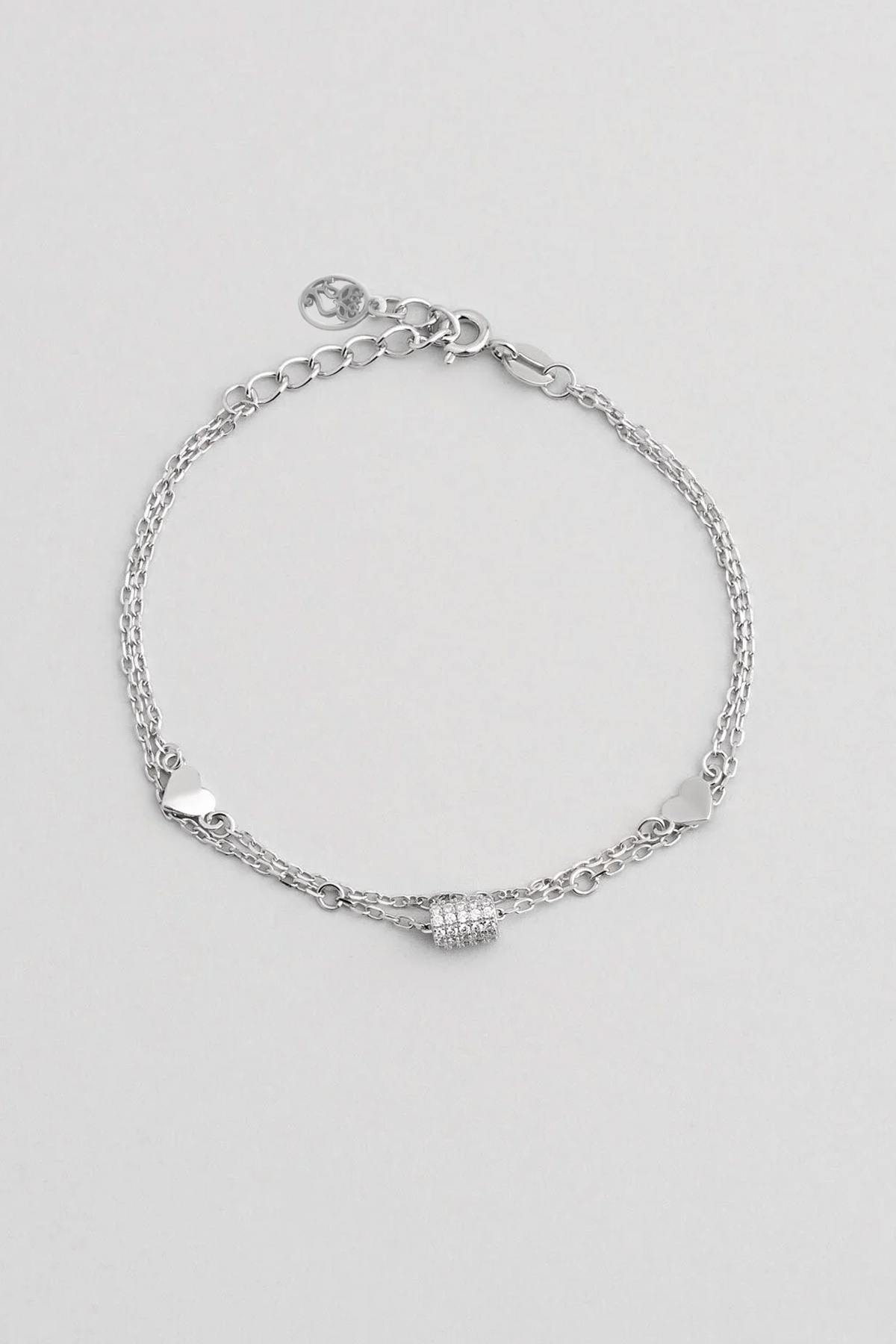 Minimal Stil 18 Ayar Beyaz Altın Kaplama 19 Cm Gümüş İkili Bileklik