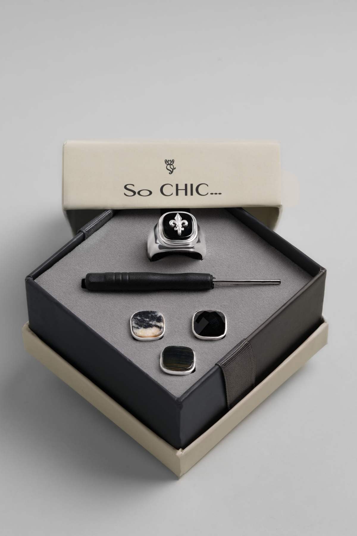 Modify Koleksiyonu Klasik Stil Erkek Gümüş Tasarım Yüzük Seti