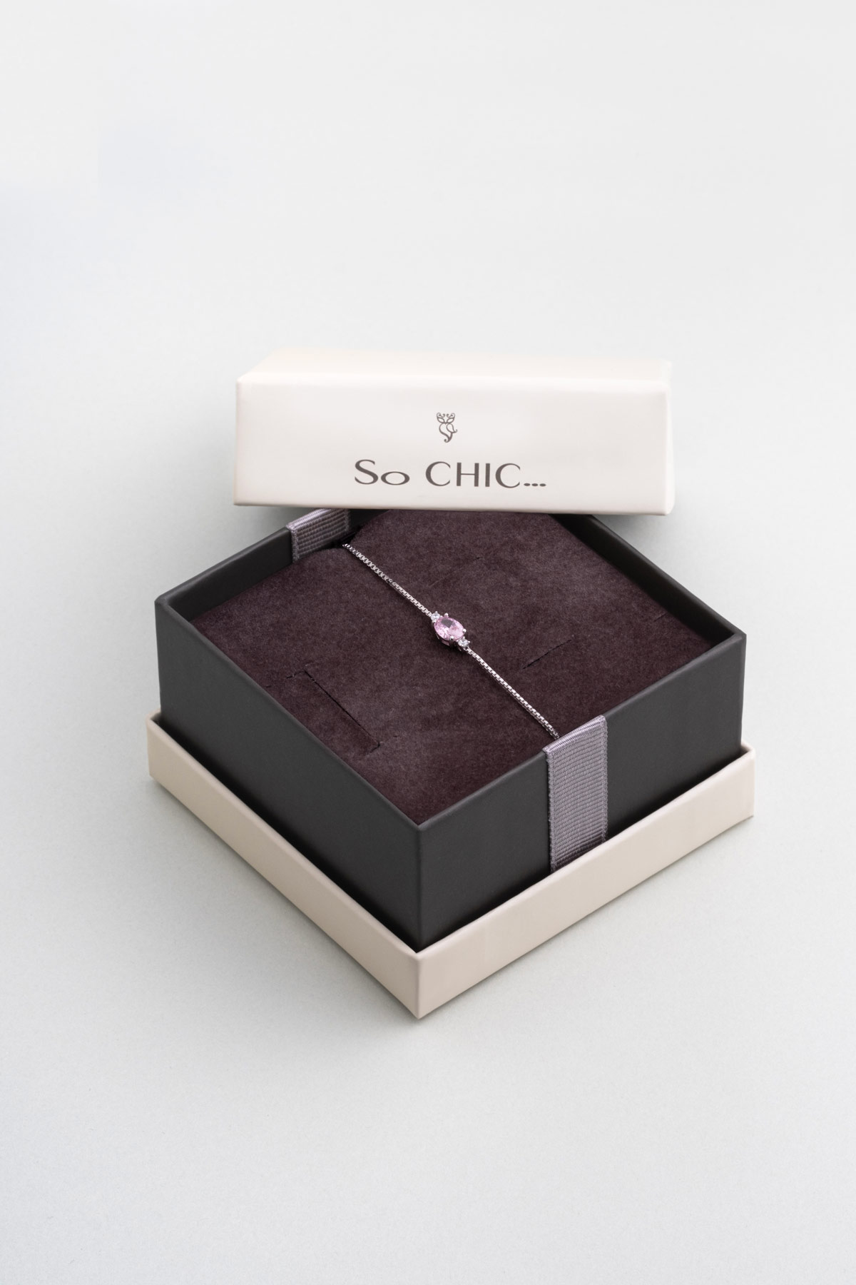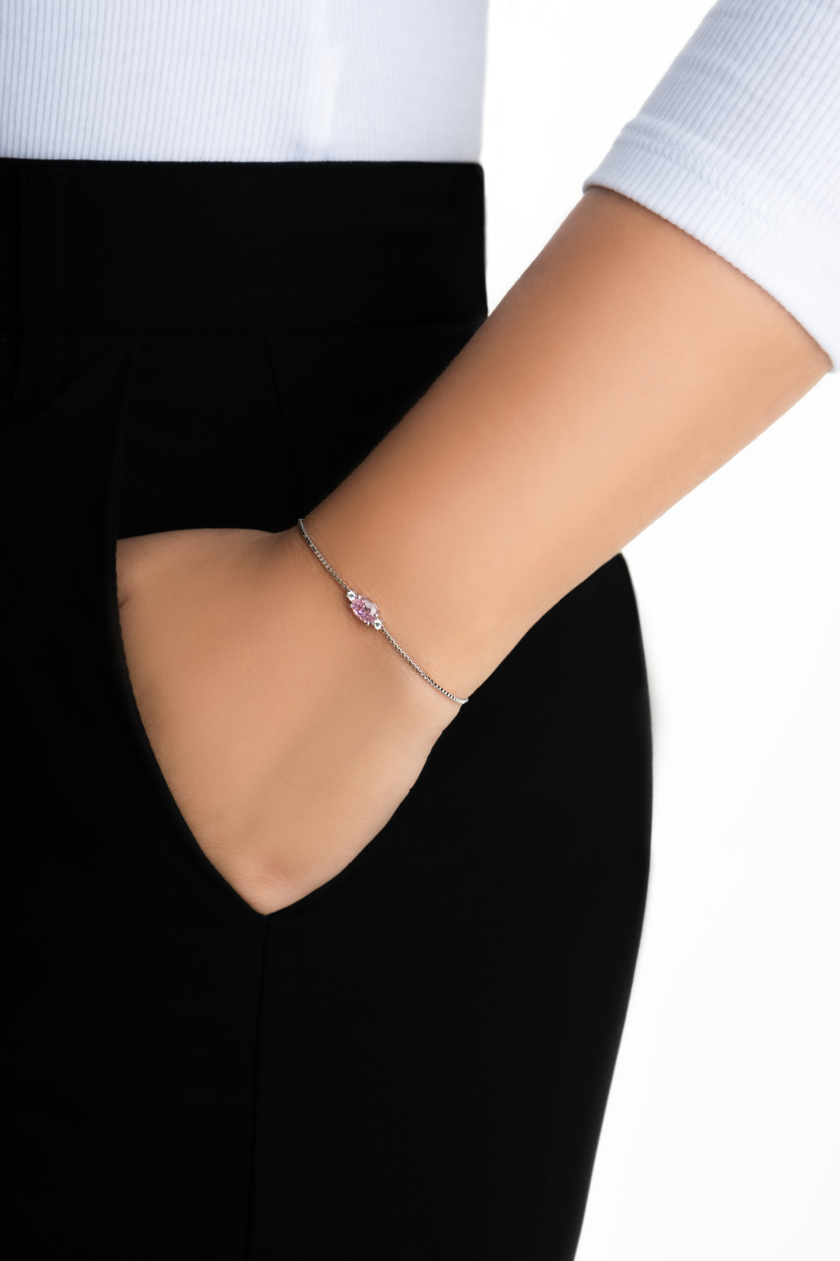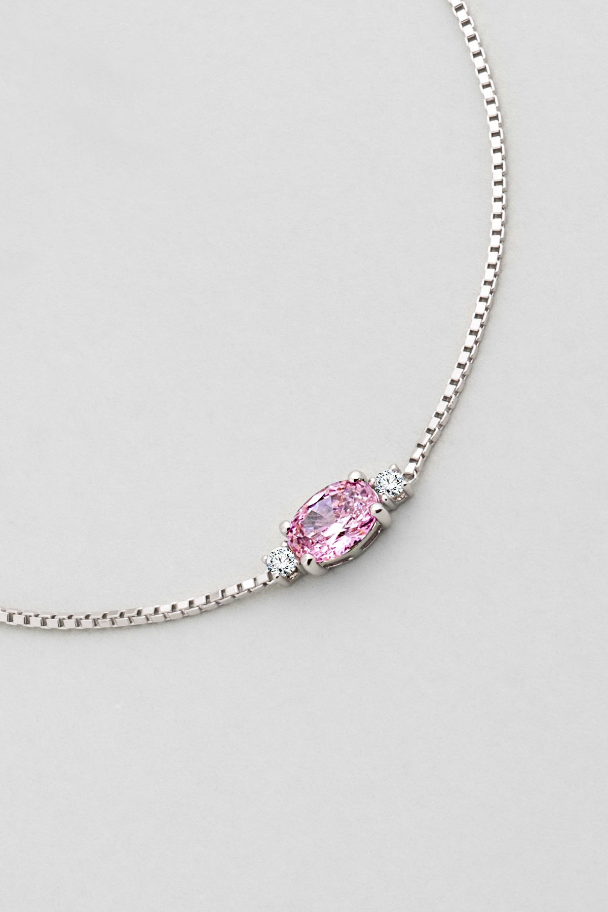 Pembe Taşlı Beyaz Altın Kaplama