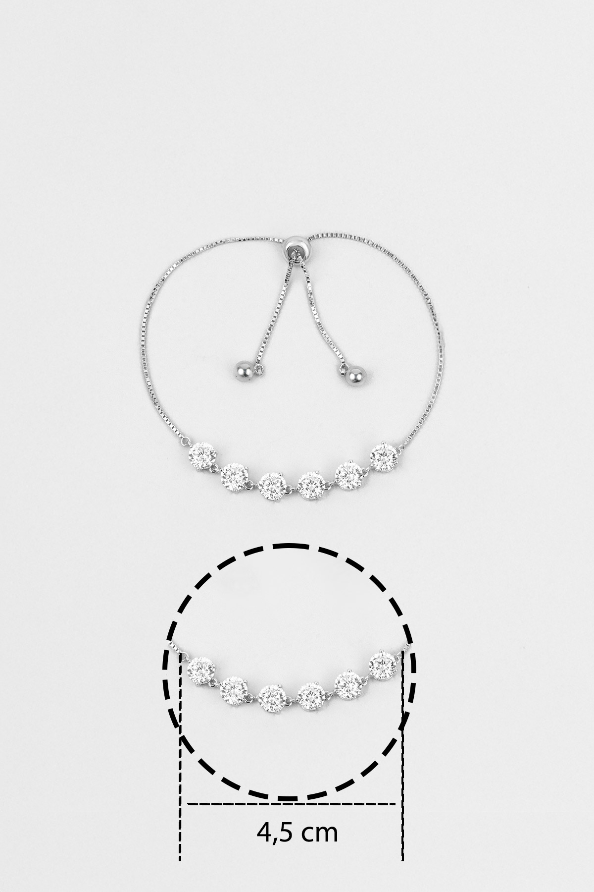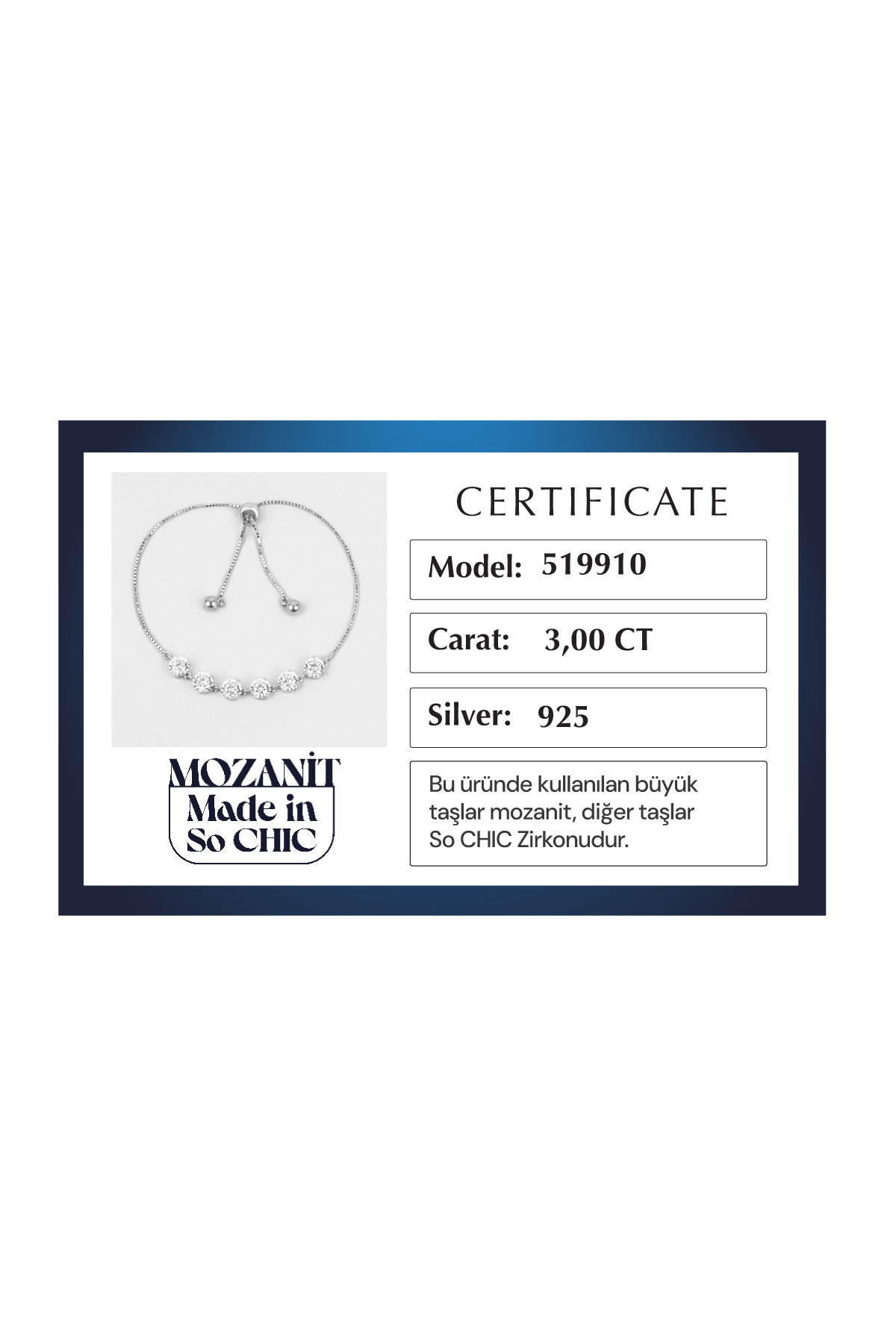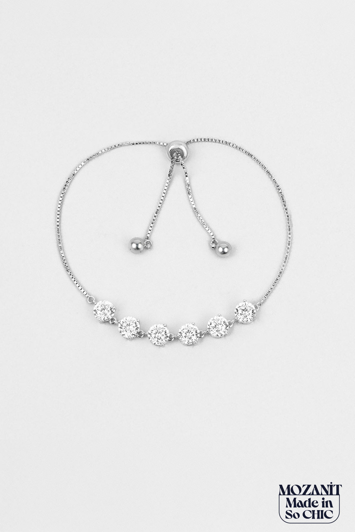 Mozanit Yolu 18 Ayar Beyaz Altın Kaplama Ayarlanabilir Gümüş Bileklik