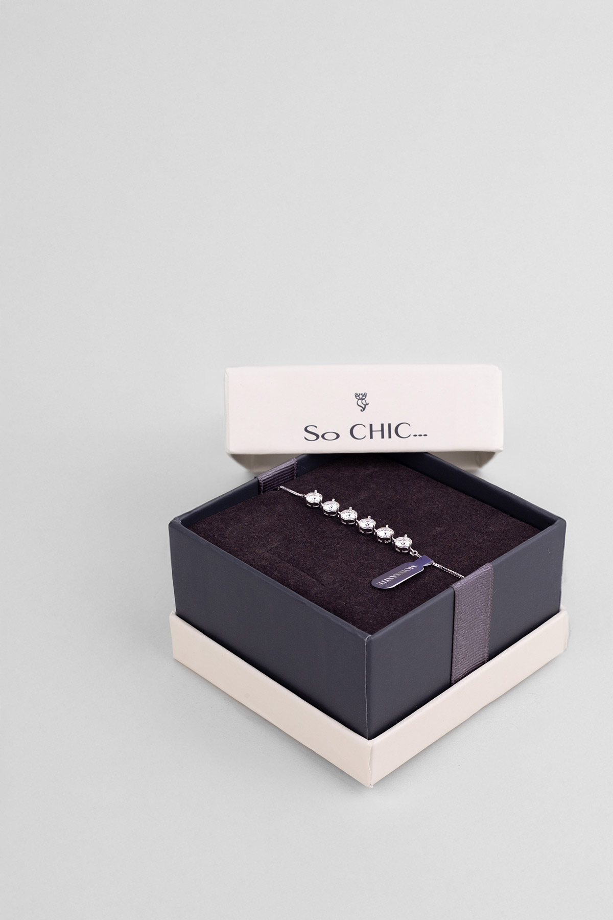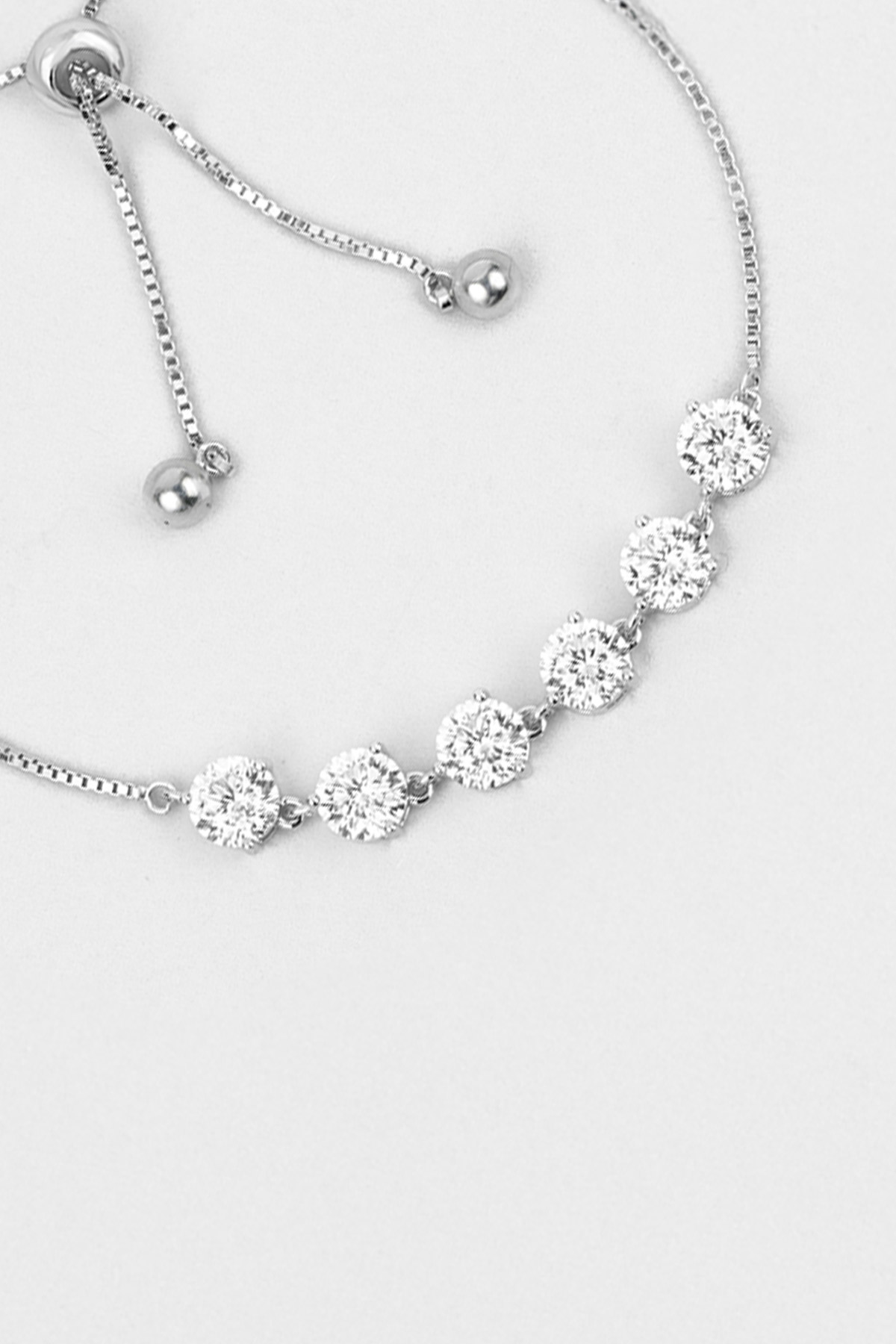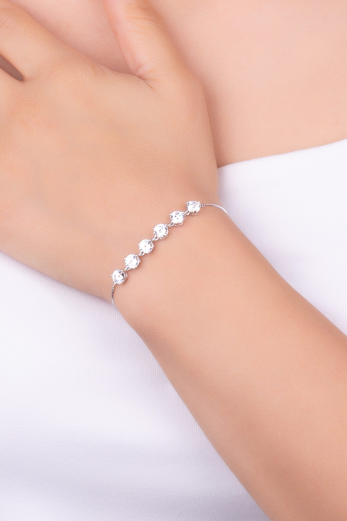 Mozanit Yolu 18 Ayar Beyaz Altın Kaplama Ayarlanabilir Gümüş Bileklik