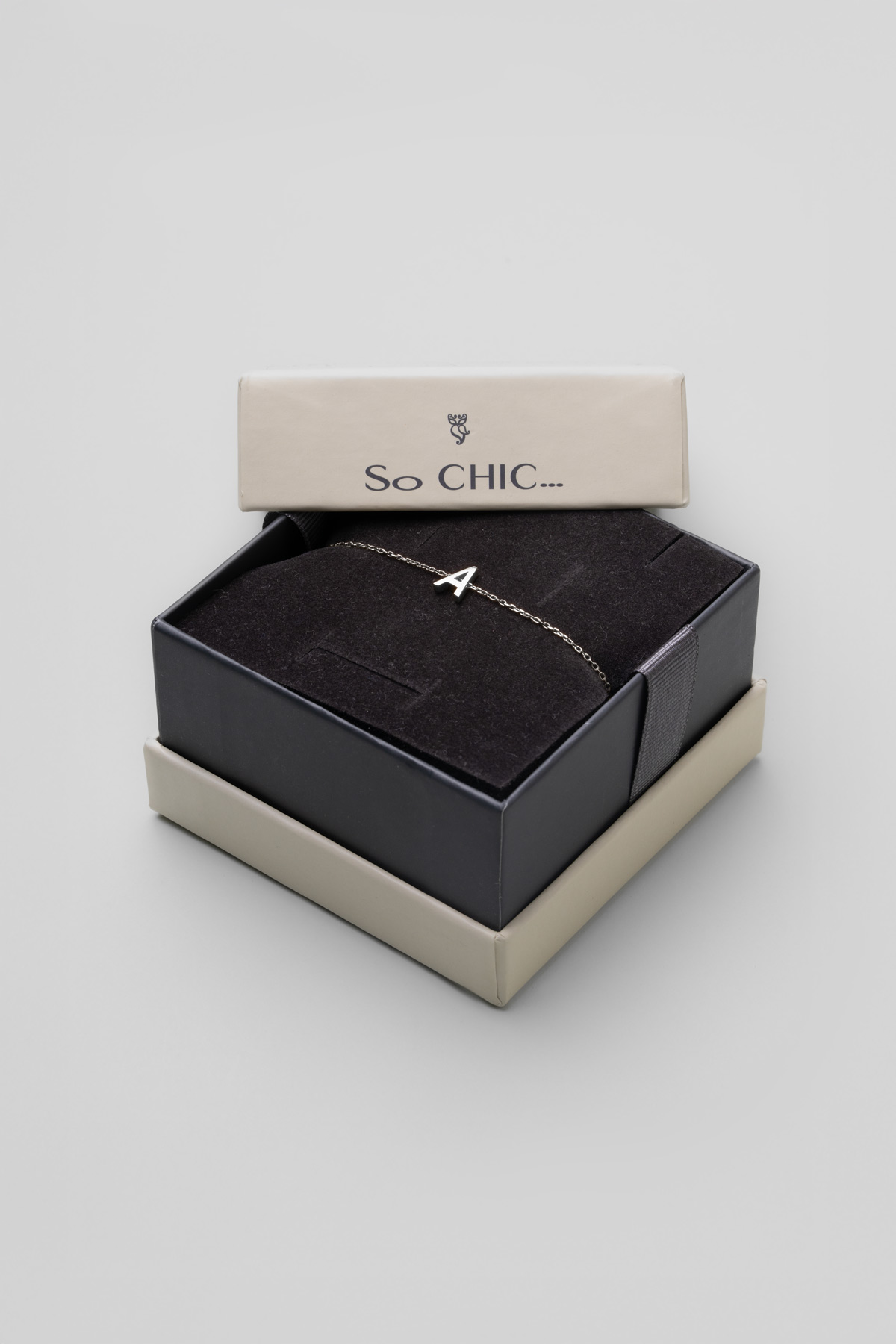 My Story A Harfi 18 Ayar Beyaz Altın Kaplama 18 Cm Gümüş Bileklik