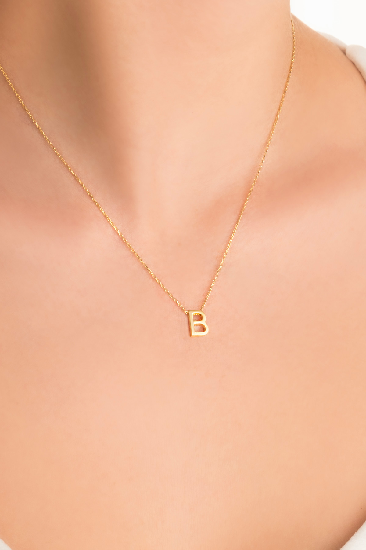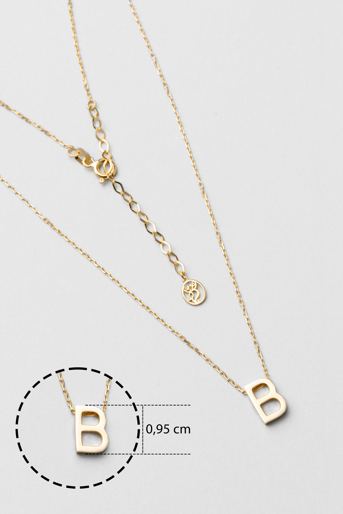 My Story B Harfi 18 Ayar Sarı Altın Kaplama 45 Cm Gümüş Kolye